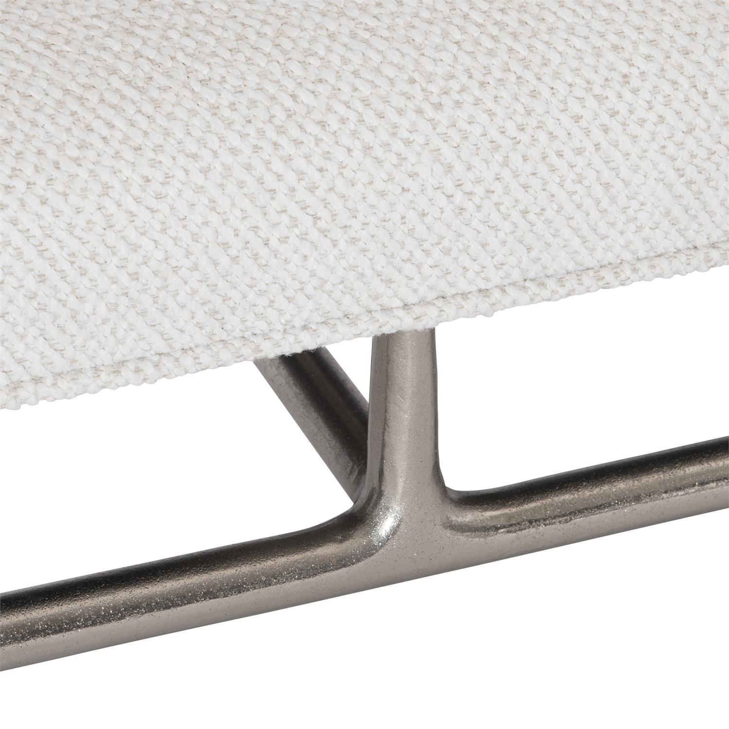 Le banc Solaria a un cadre en acier d’inspiration architecturale qui supporte un siège rembourré, mettant en évidence l’équilibre des formes qui caractérise la collection Solaria. Les bords sont adoucis alors que les pieds se courbent vers un support horizontal, tandis que les montants centraux soulèvent le siège au-dessus du cadre de sorte qu’il semble flotter au-dessus de la base métallique.