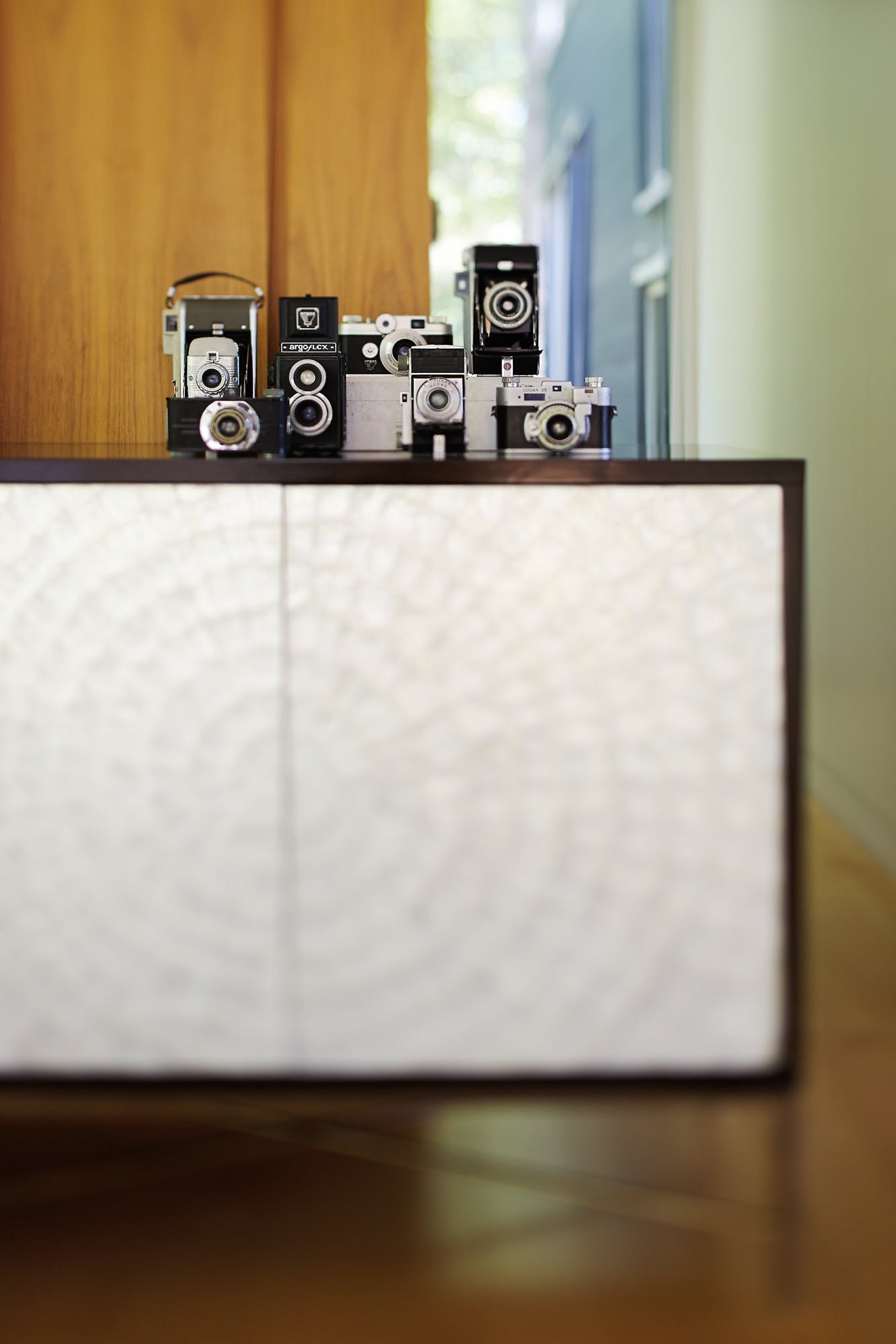 Deux paires de portes à ouverture par pression avec façades en nacre de Capiz incrusté