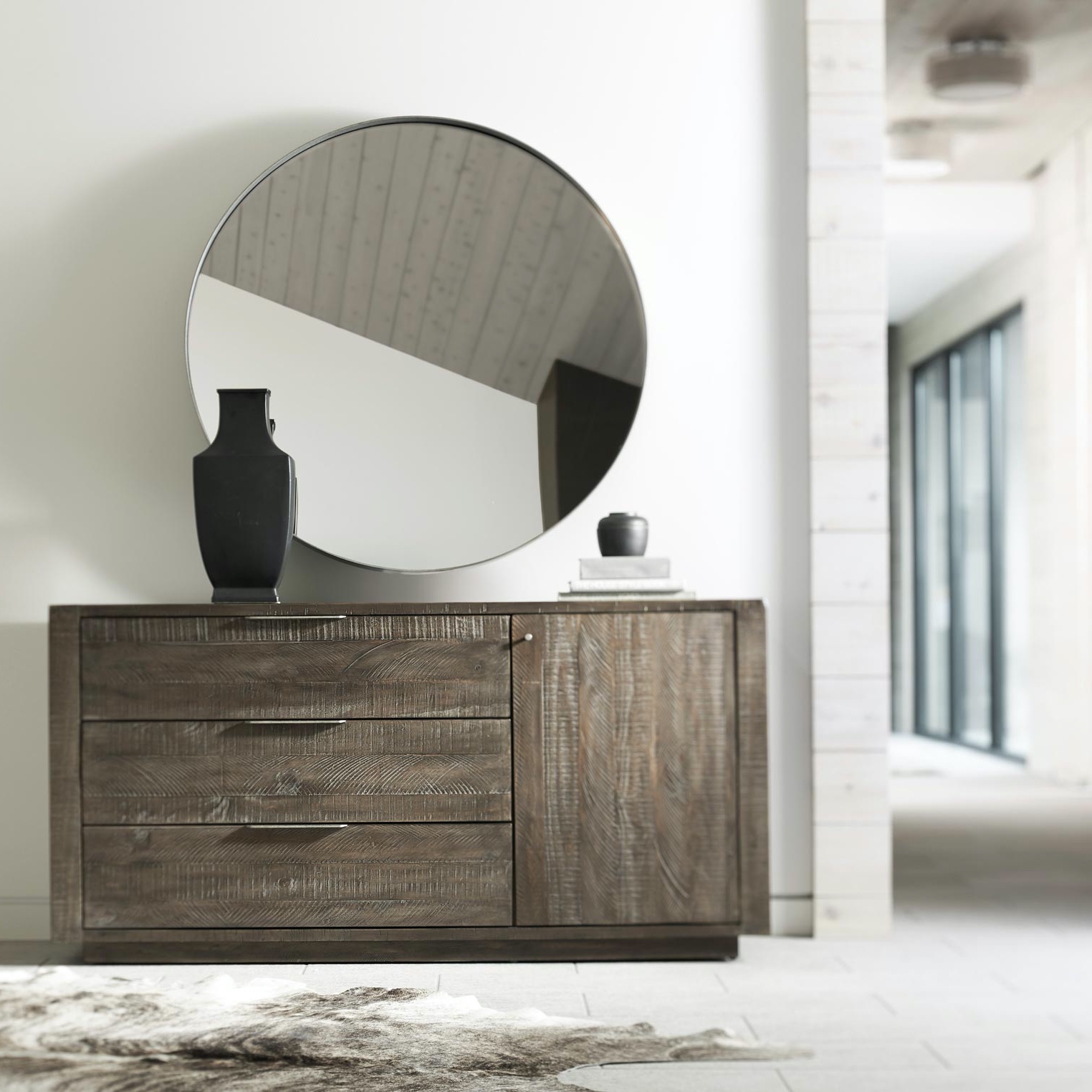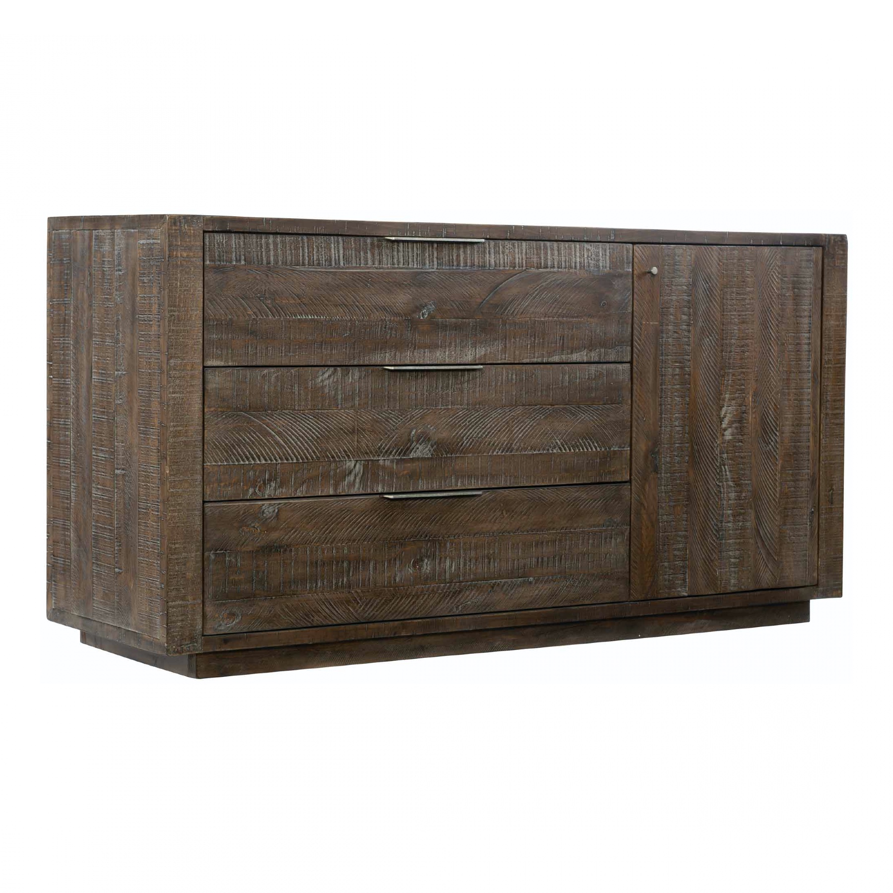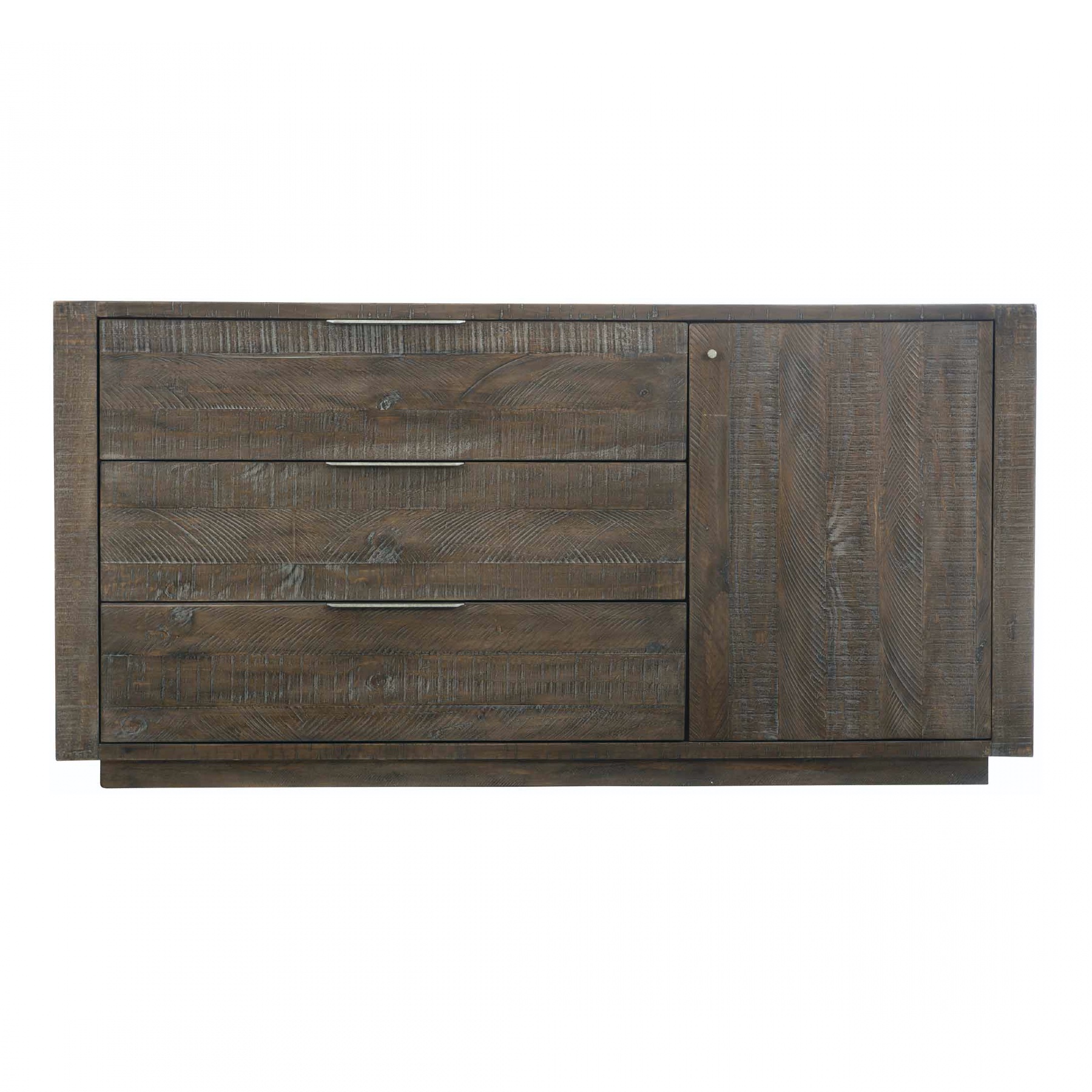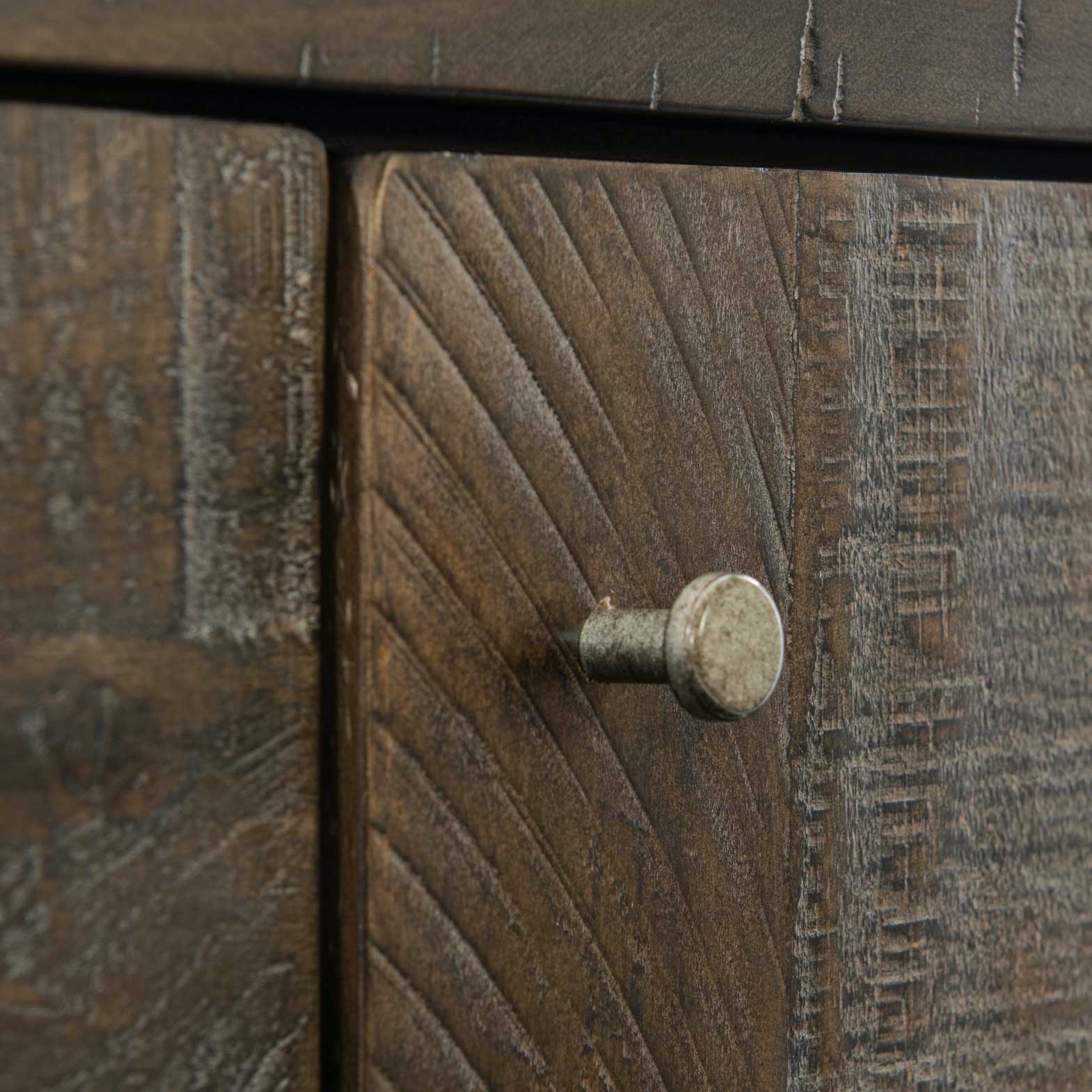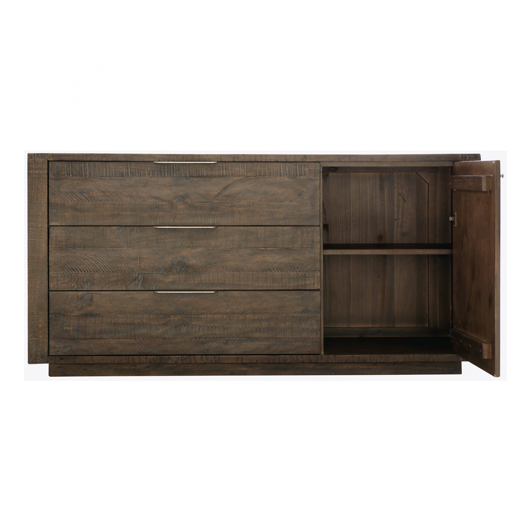 Sur le côté gauche, trois tiroirs avec des poignée en métal