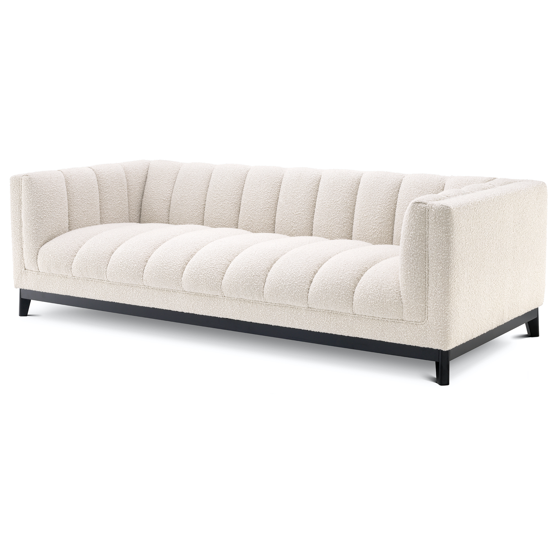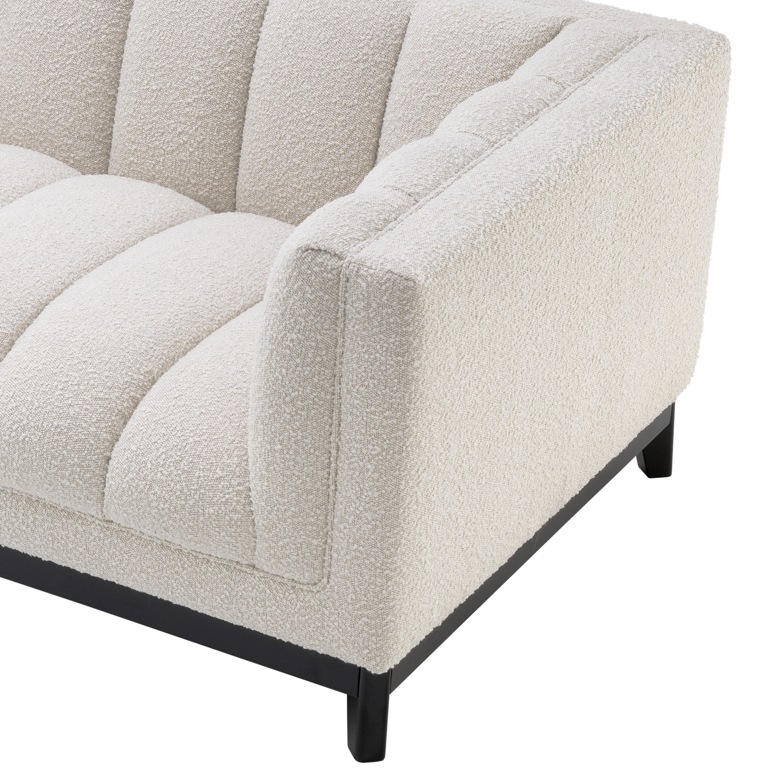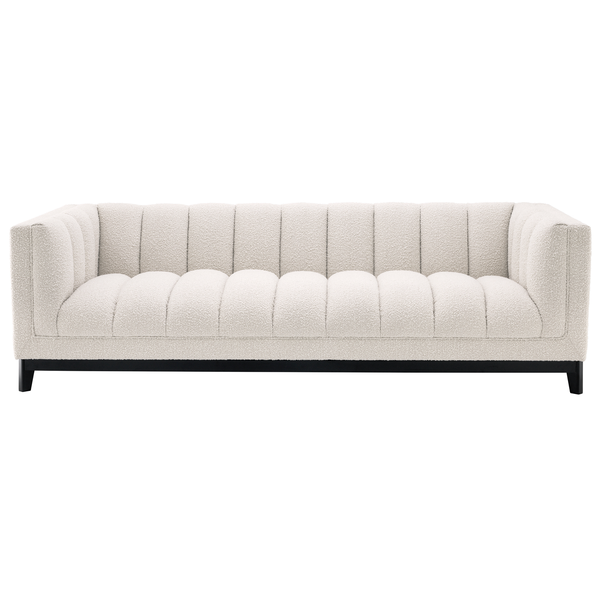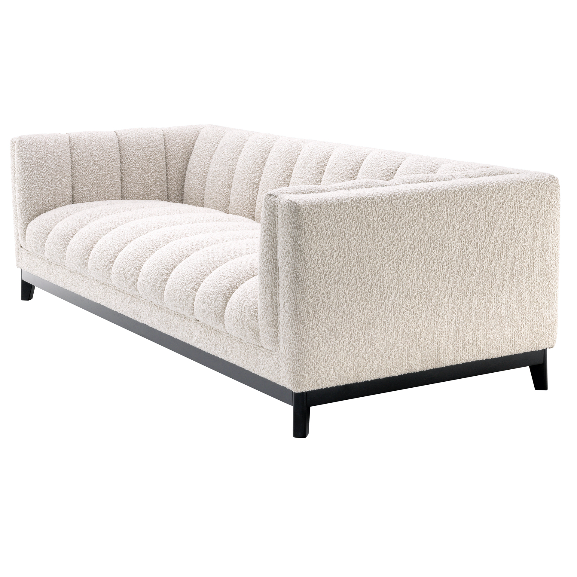 Reposant sur une base en finition noire et garni de tissu bouclé de couleur crème, le canapé Ditmar apportera beaucoup de charme et de chaleur à votre salon. Les surpiqûres profondes de l’assise et du dossier donnent à ce canapé contemporain une touche de nostalgie.