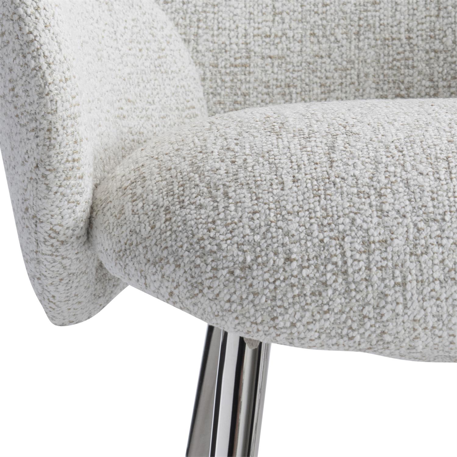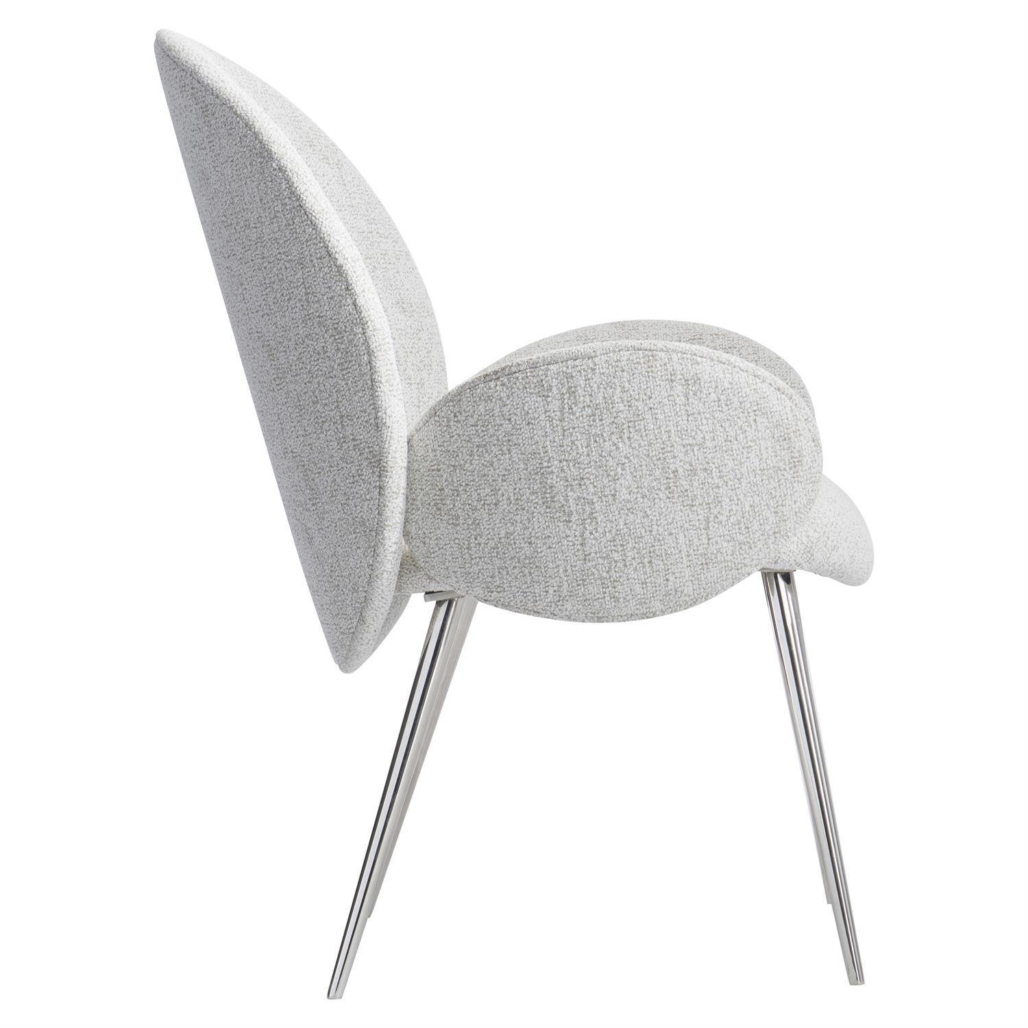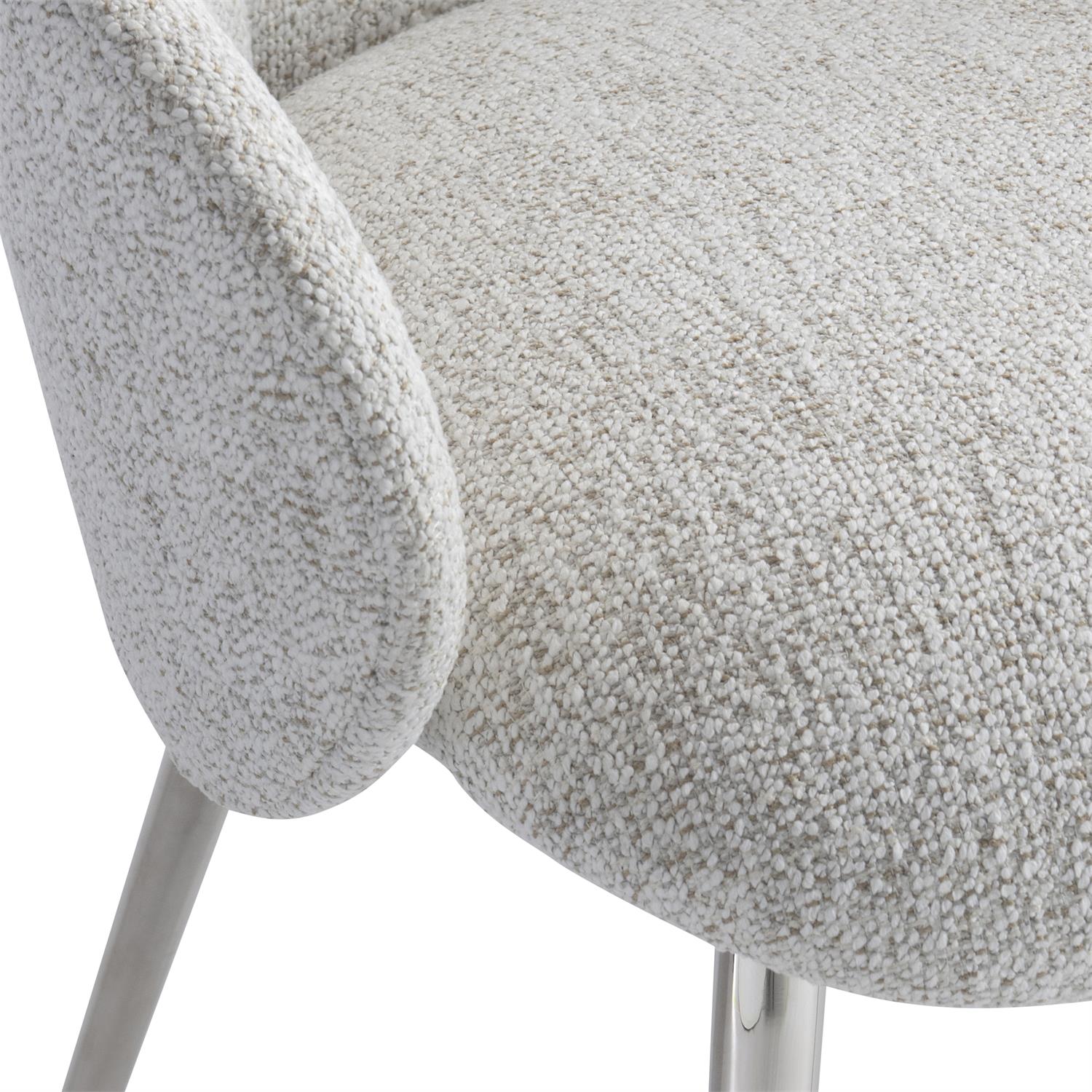 Les formes ovales sont parfaitement ajustées pour créer un design unique sur le fauteuil Ona. Un dossier rembourré ovale incurvé, des accoudoirs rembourrés ovales incurvés et une assise rembourrée incurvée prennent place sur le cadre en acier inoxydable poli.