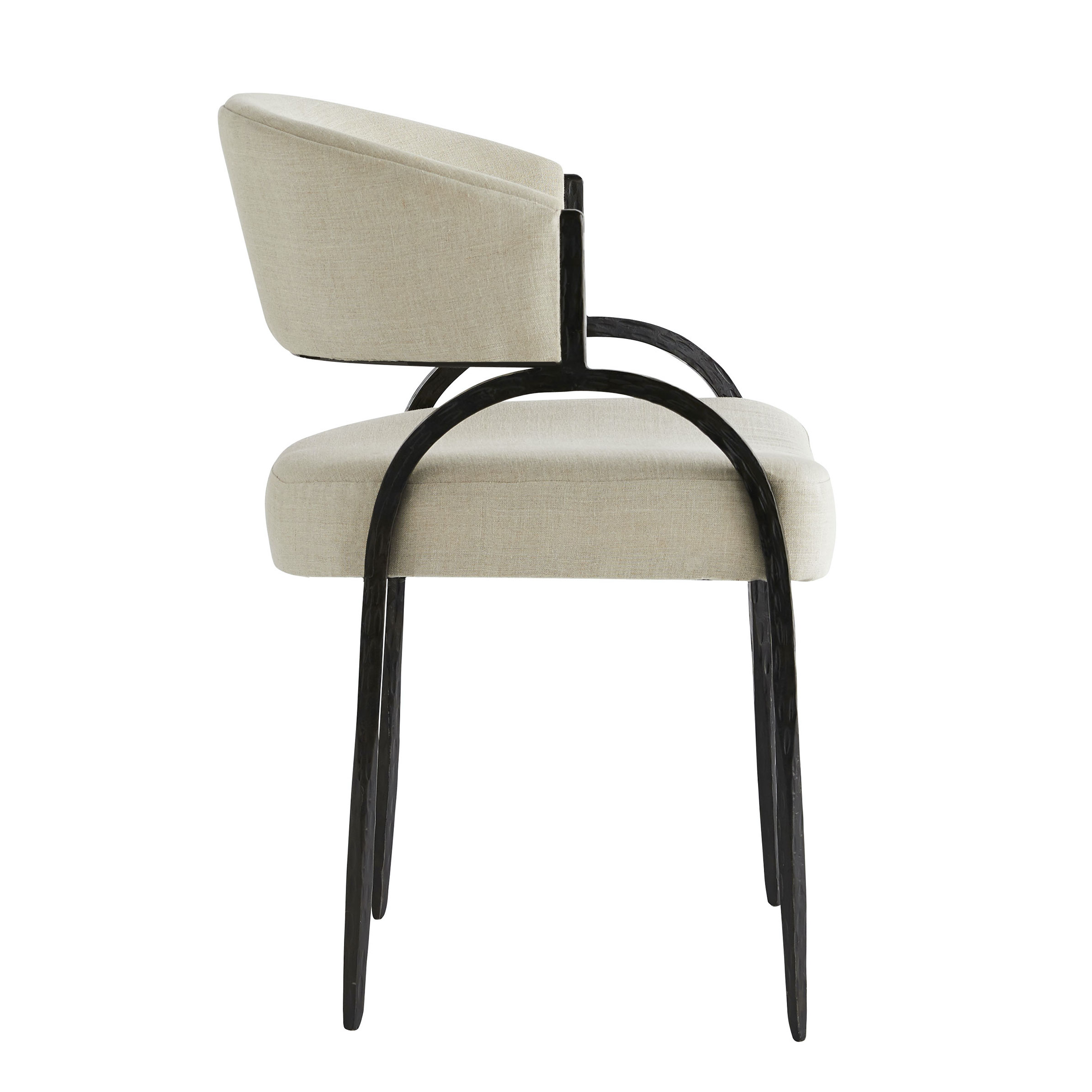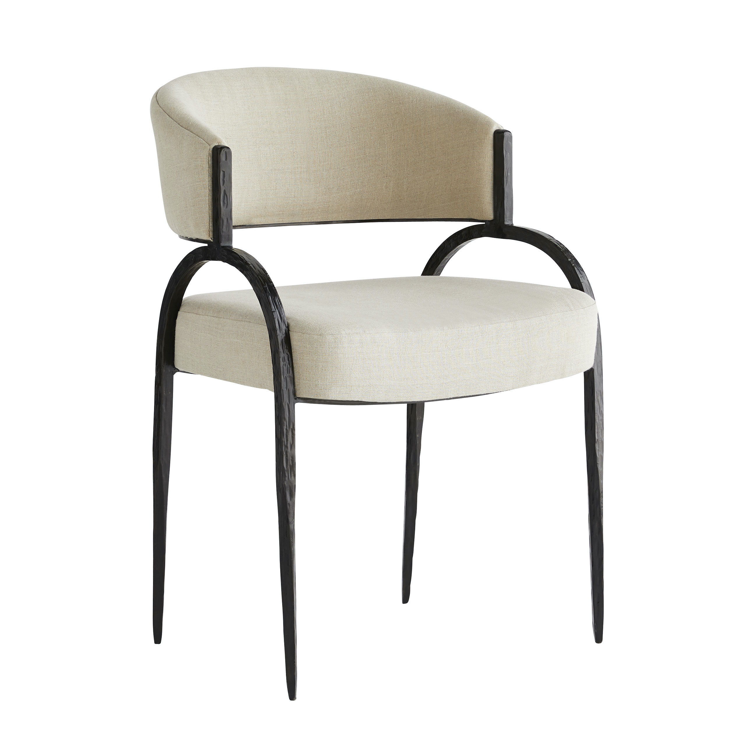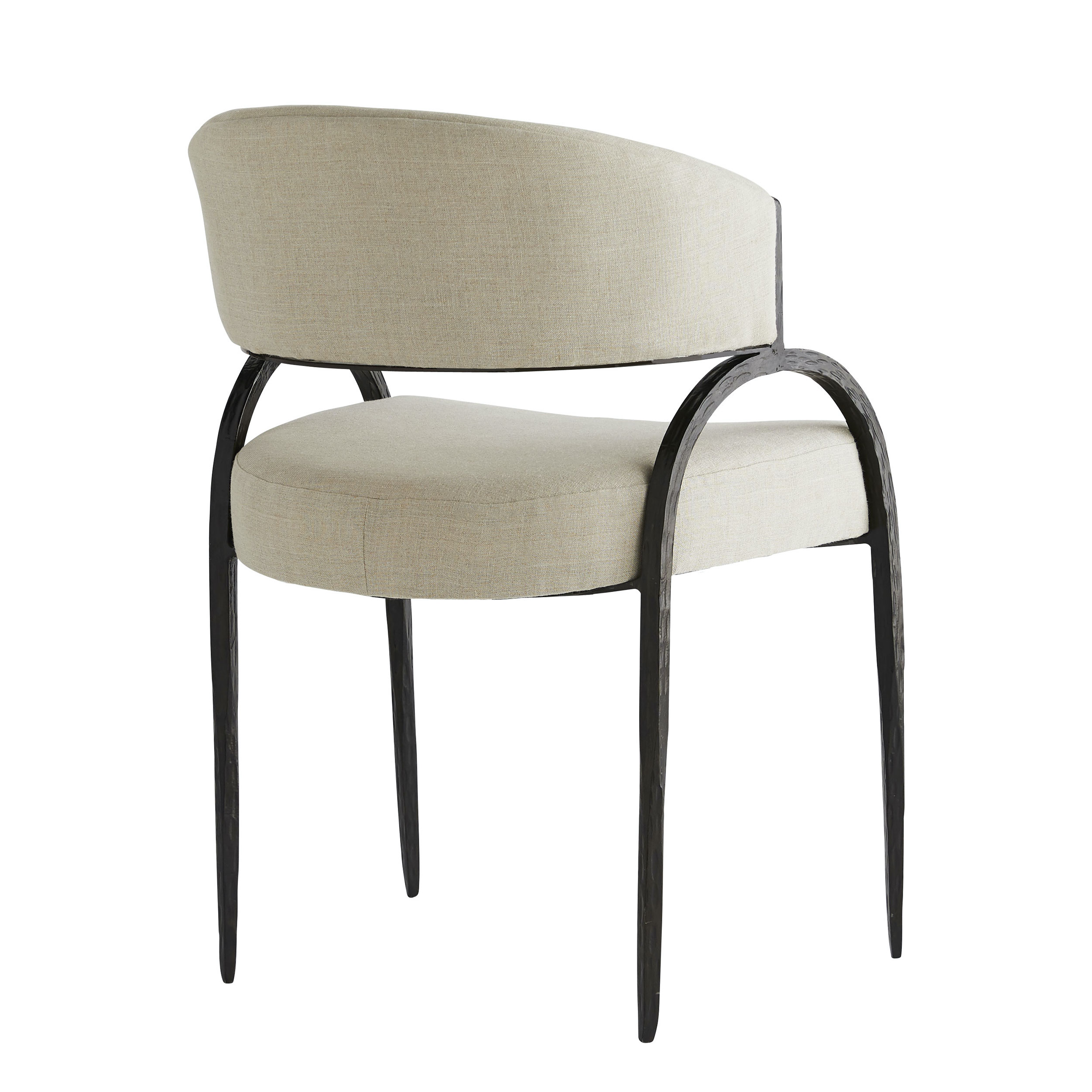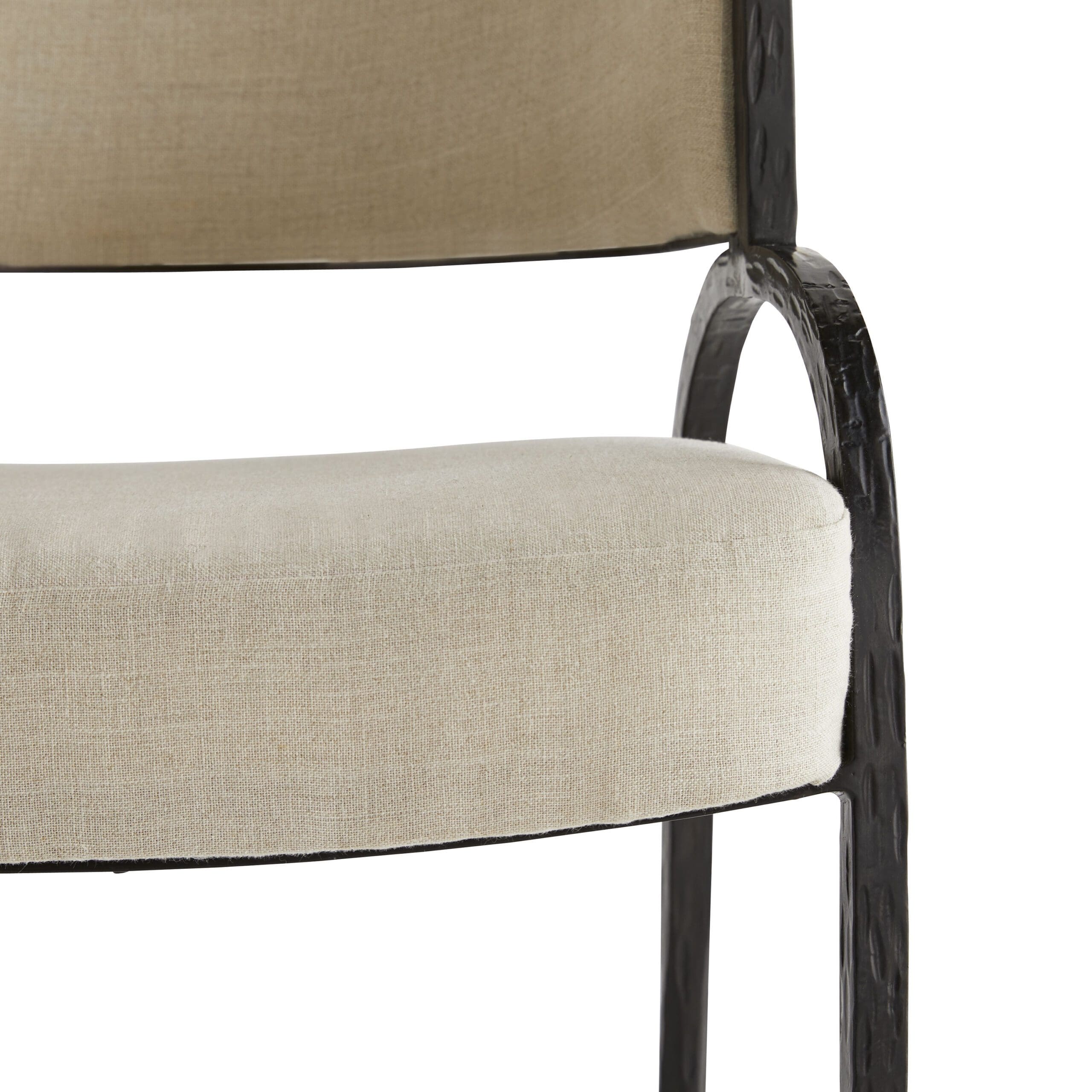 Un dossier incurvé et un large siège reposent sur un cadre en fer parfaitement équilibré pour composer la base du Bahati. Le fer naturel a été forgé à la main, ce qui donne des détails délicats le long de son cadre fin. Les coussins de l’assise et du dossier sont recouverts d’un lin naturel, ce qui permet à cette pièce de s’intégrer facilement au décor existant.