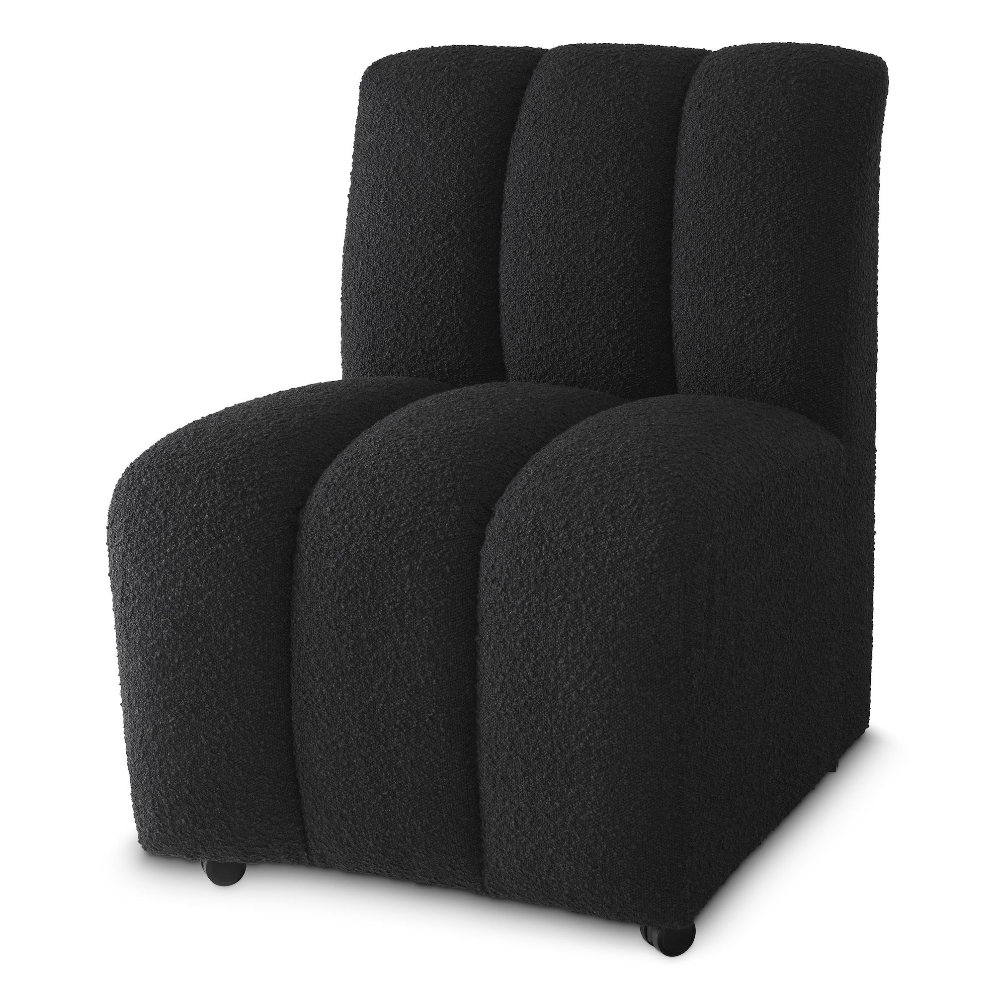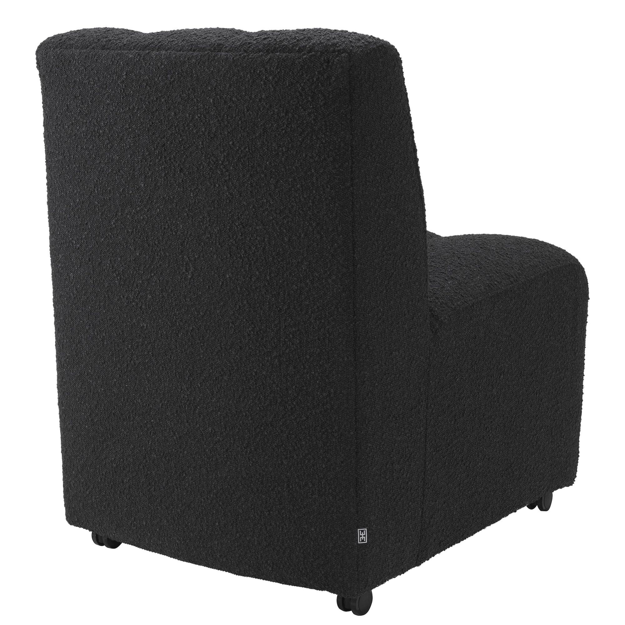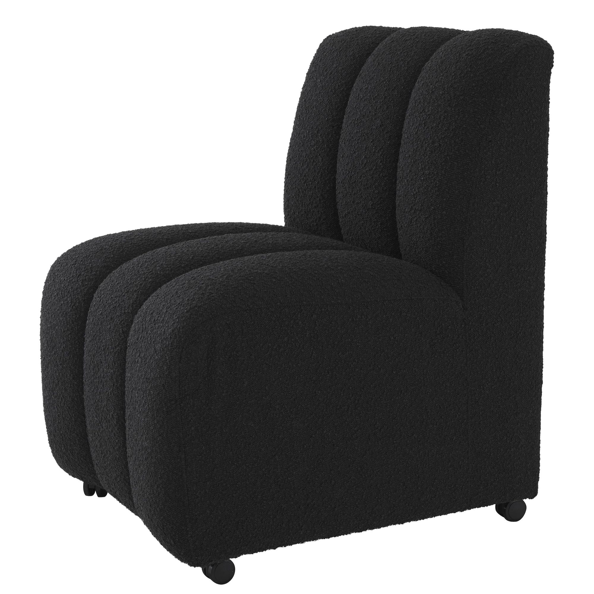 Rembourrée en noir Bouclé, la chaise de salle à manger Kelly apportera beaucoup de charme et de chaleur à votre salle à manger. Des surpiqûres profondes confèrent à cette chaise de salle à manger distinctive et confortable un attrait somptueux.
