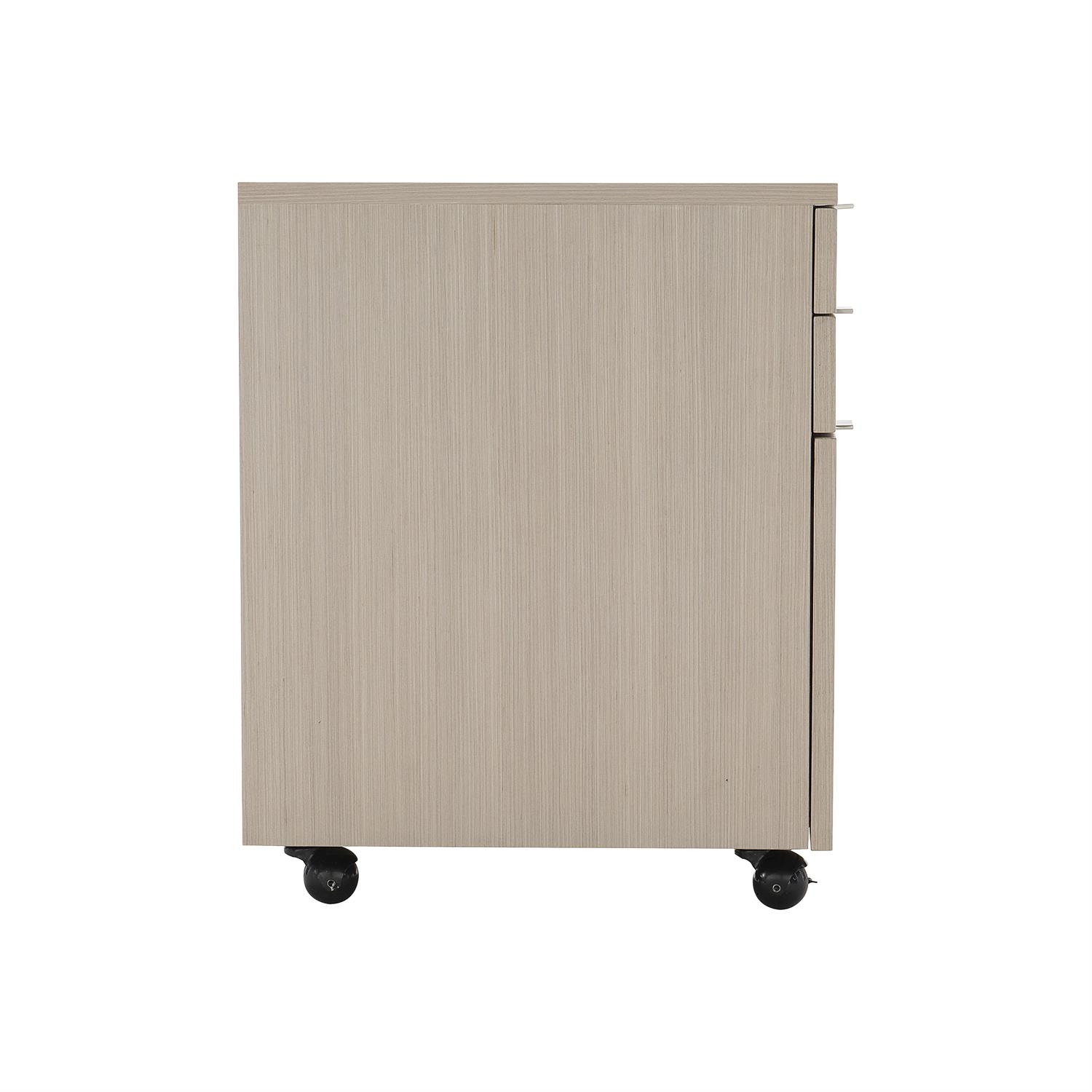 L’armoire à dossiers Axiom offre un grand espace de rangement derrière une façade sobre, ce qui la rend à la fois très fonctionnelle et élégante. Avec ses trois tiroirs spacieux, il permet de garder un espace de travail organisé et dégagé. La quincaillerie métallique élégante et le grain de bois linéaire de la finition Linear Grey créent un aspect de sophistication subtile.