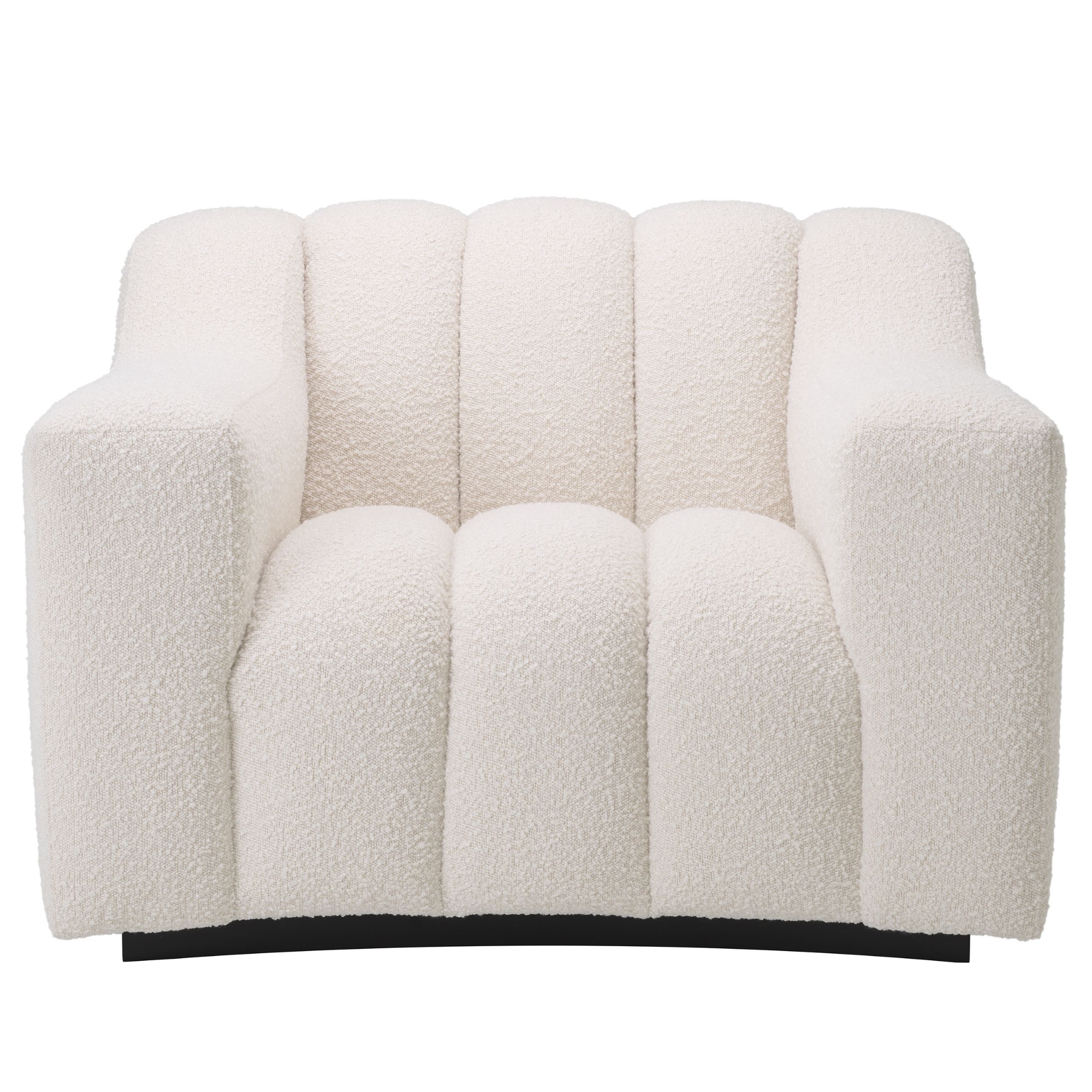 La chaise Kelly apportera beaucoup de charme et de chaleur à votre salon avec son revêtement bouclé de couleur crème. Doté d’un design légèrement incurvé et de surpiqûres profondes, ce joli fauteuil vous offrira une assise très confortable.