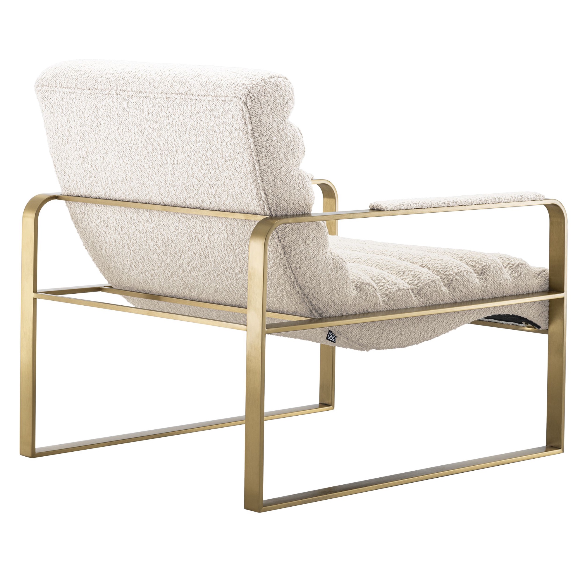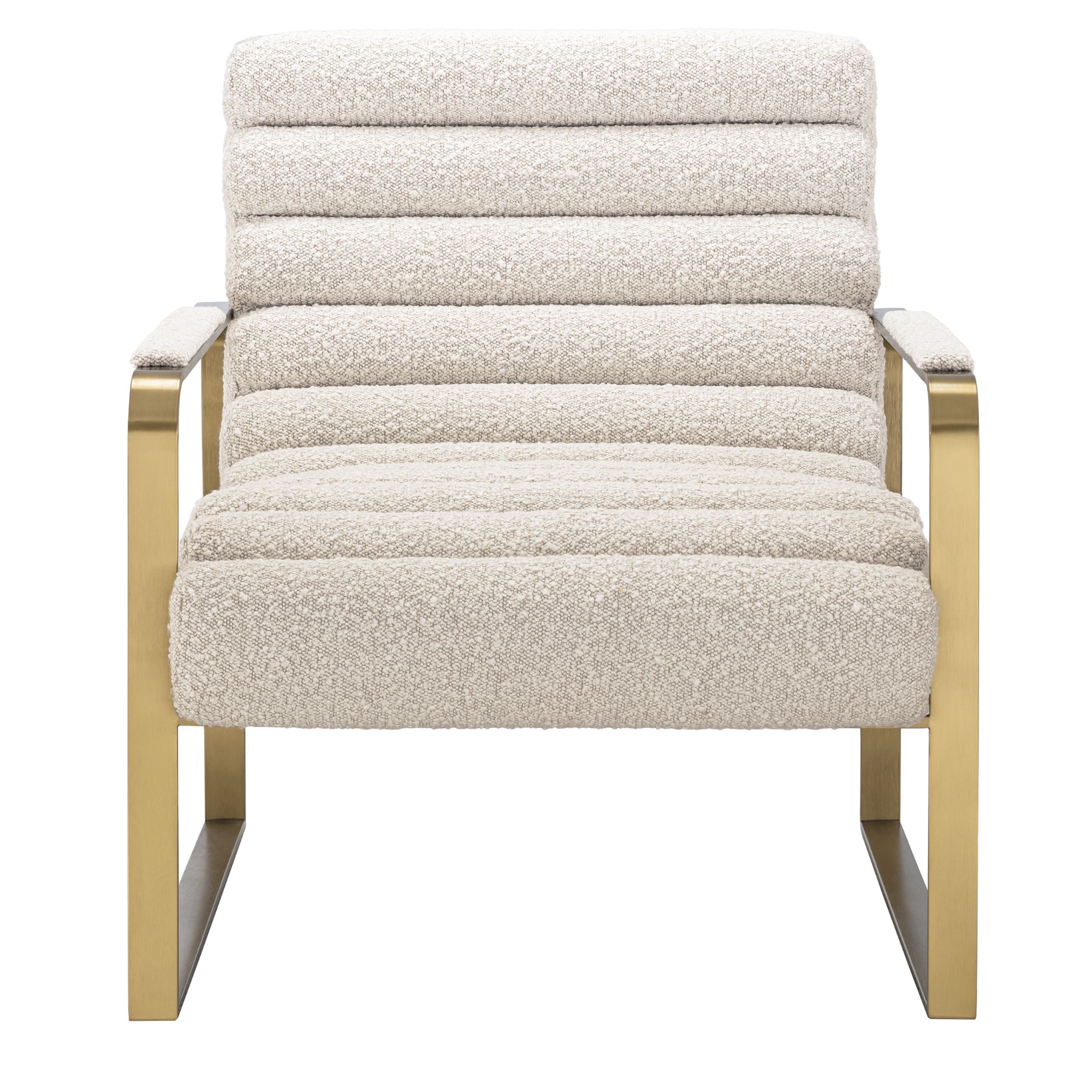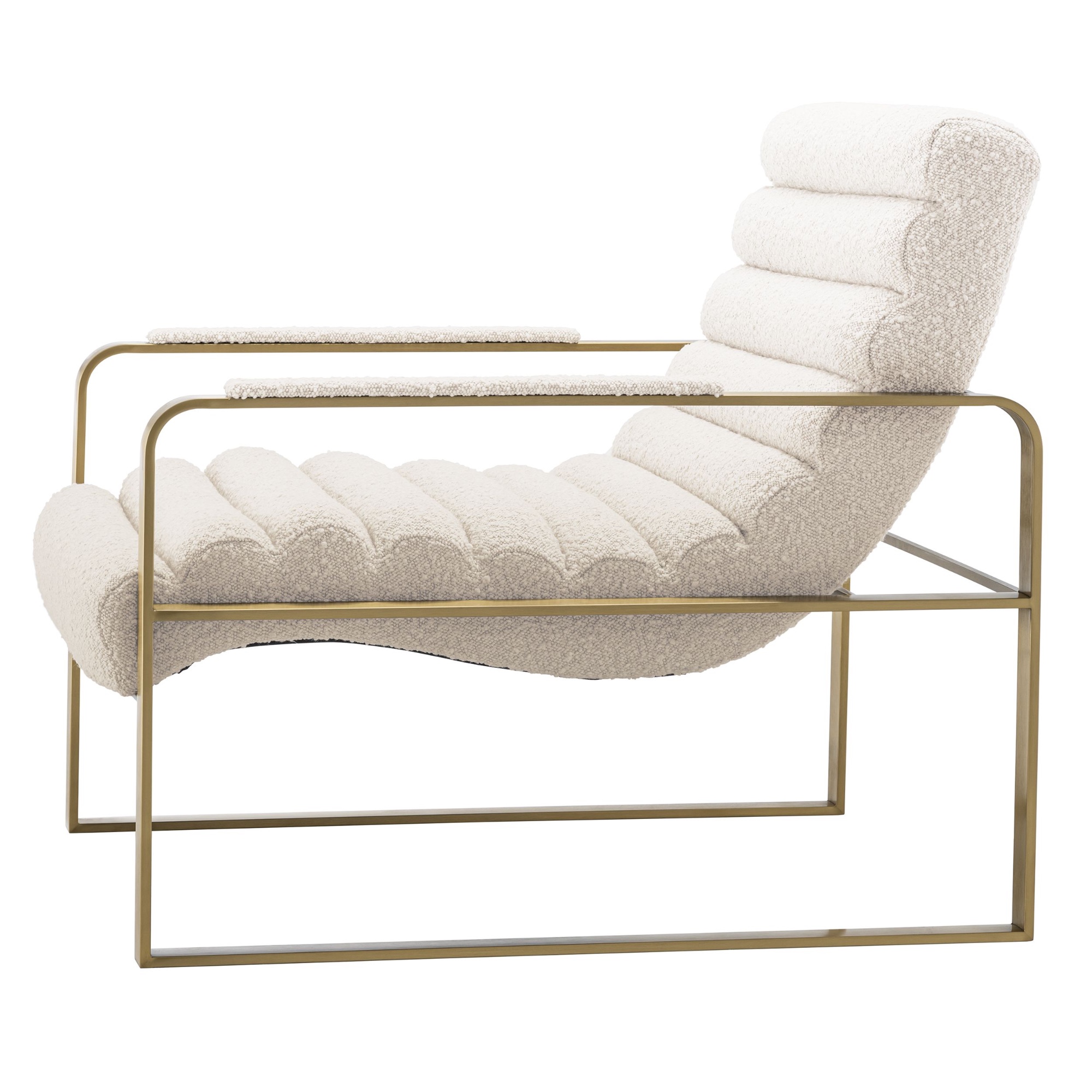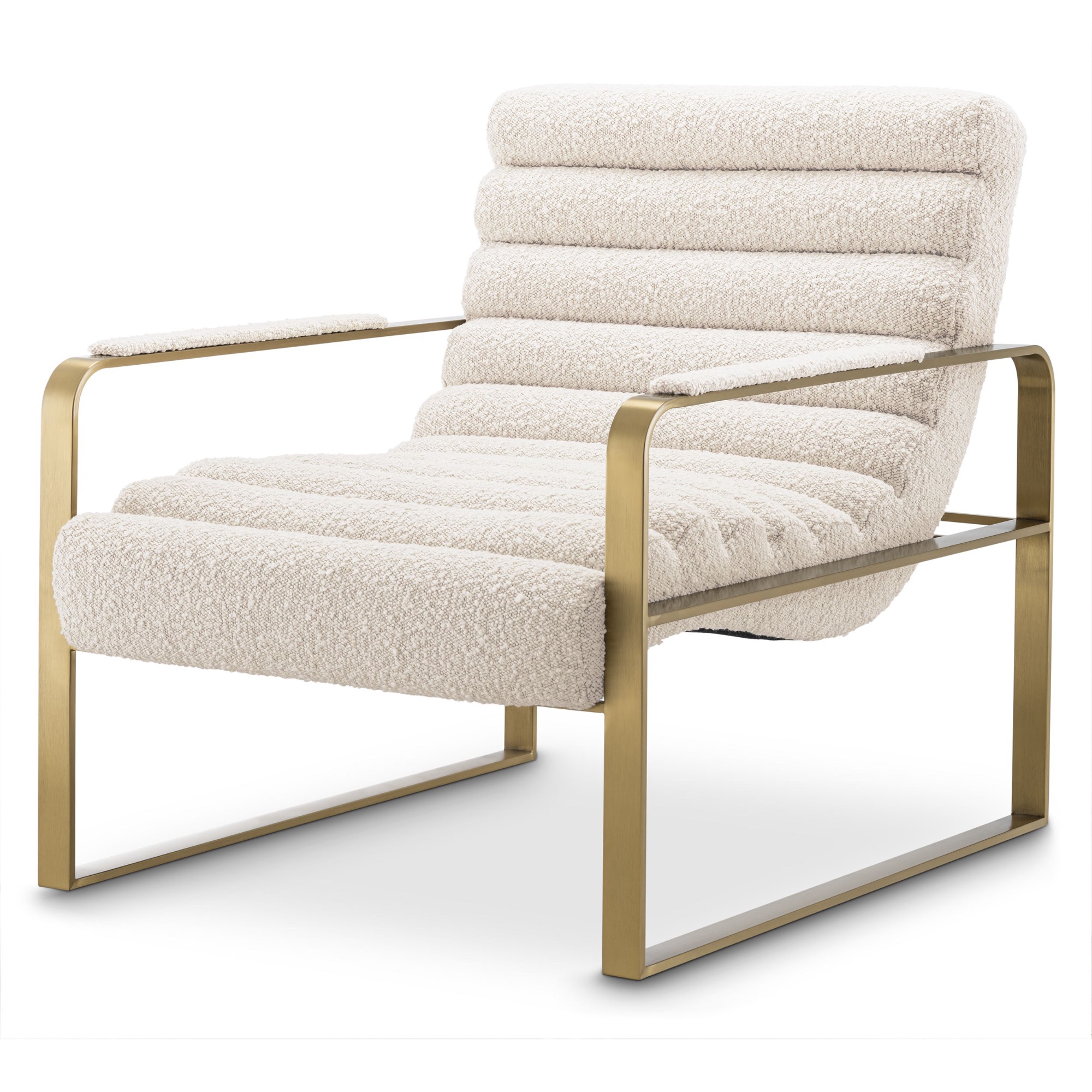Inclinée pour un confort ultime, la chaise Olsen fera de la détente votre moment préféré. À la fois mince et solide, le cadre en finition laiton brossé ajoute une touche industrielle à l’assise aux formes courbes. Son rembourrage généreux crée un coussin accueillant et moelleux tandis que le revêtement bouclé durable de couleur crème lui confère un confort douillet.