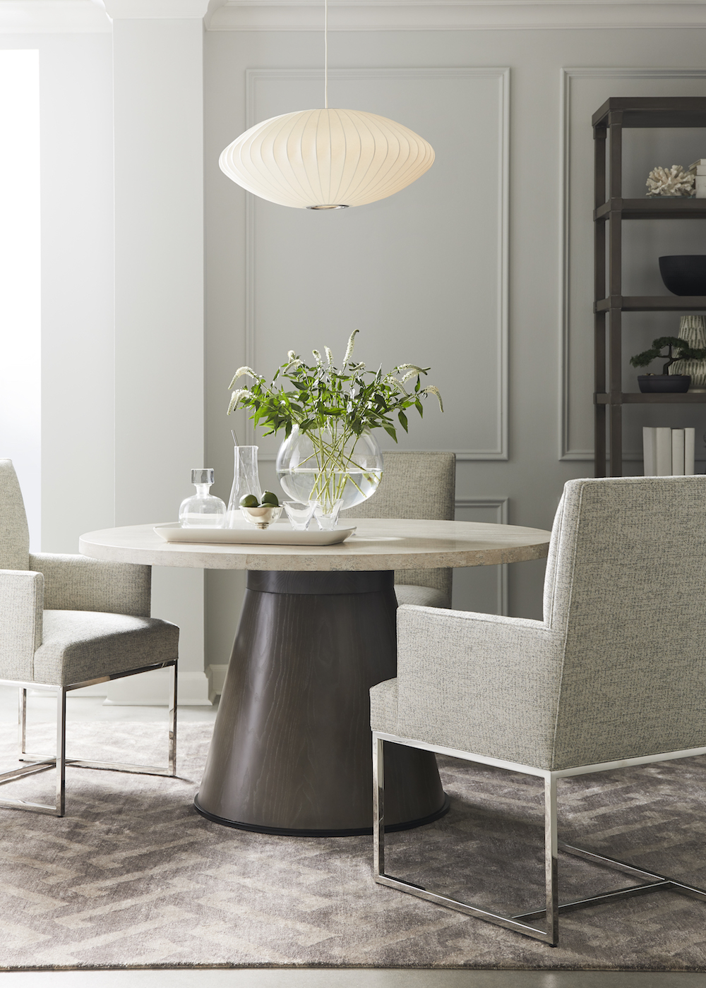 Fini Woodcliff, avec dessus 54″ Round White Travertine TRA-54