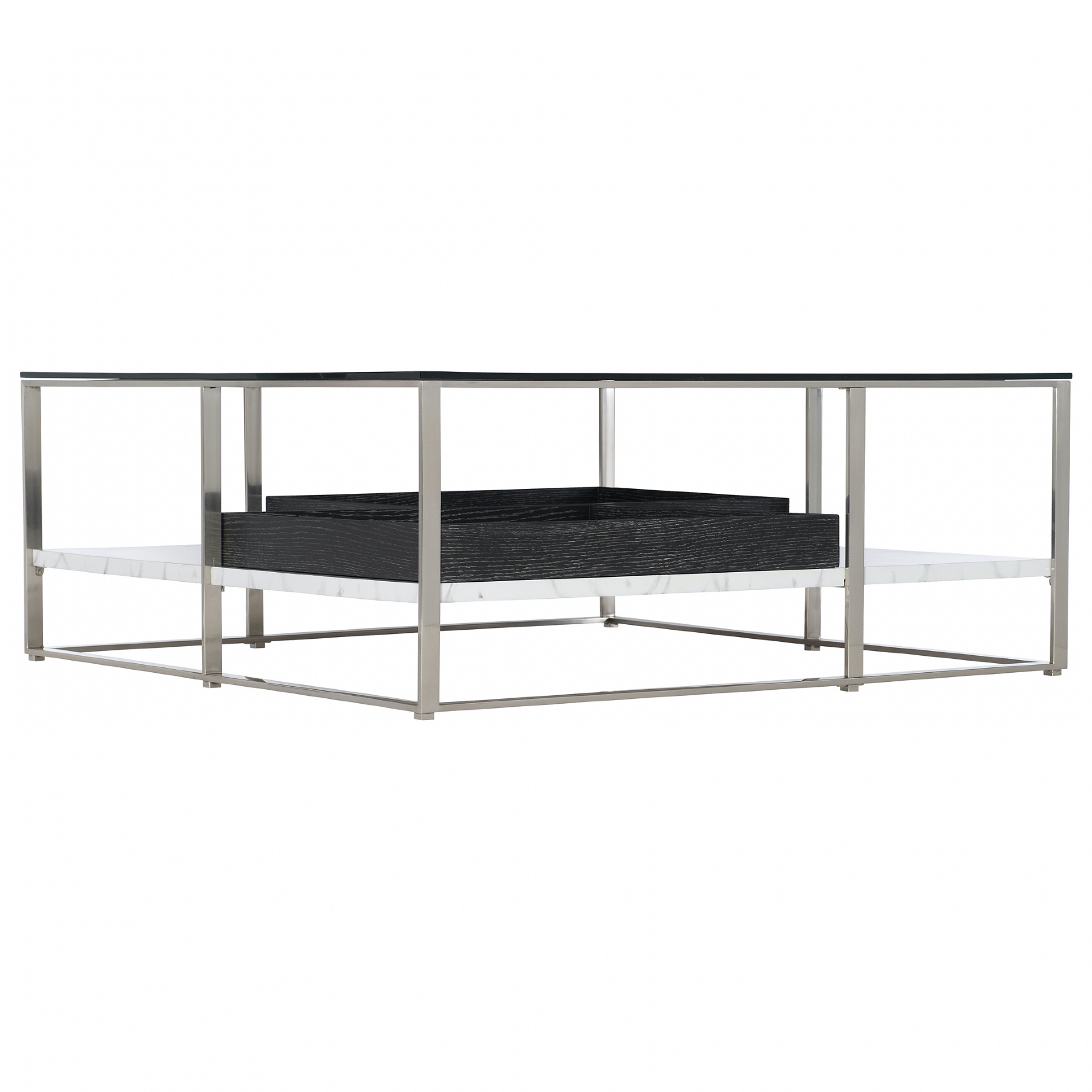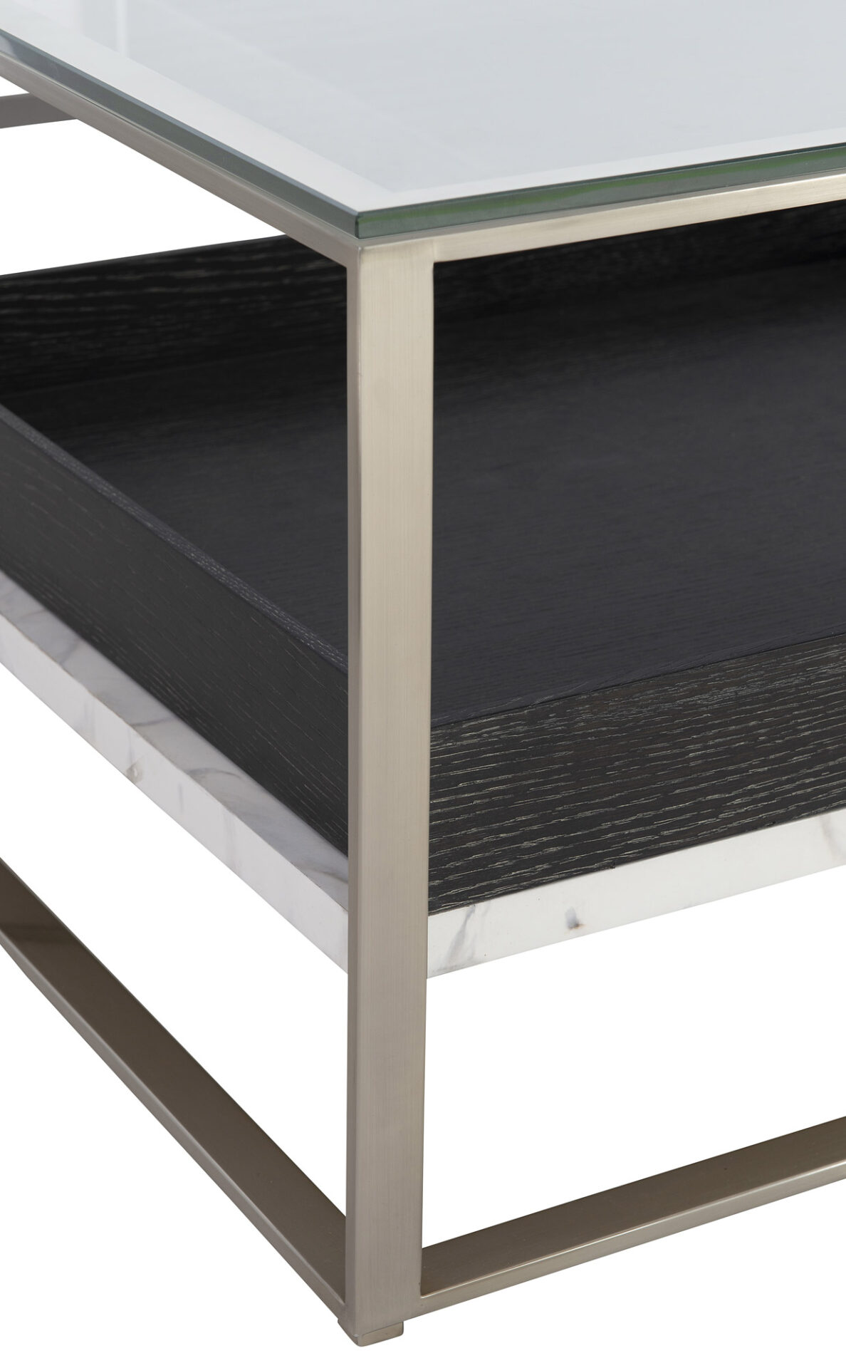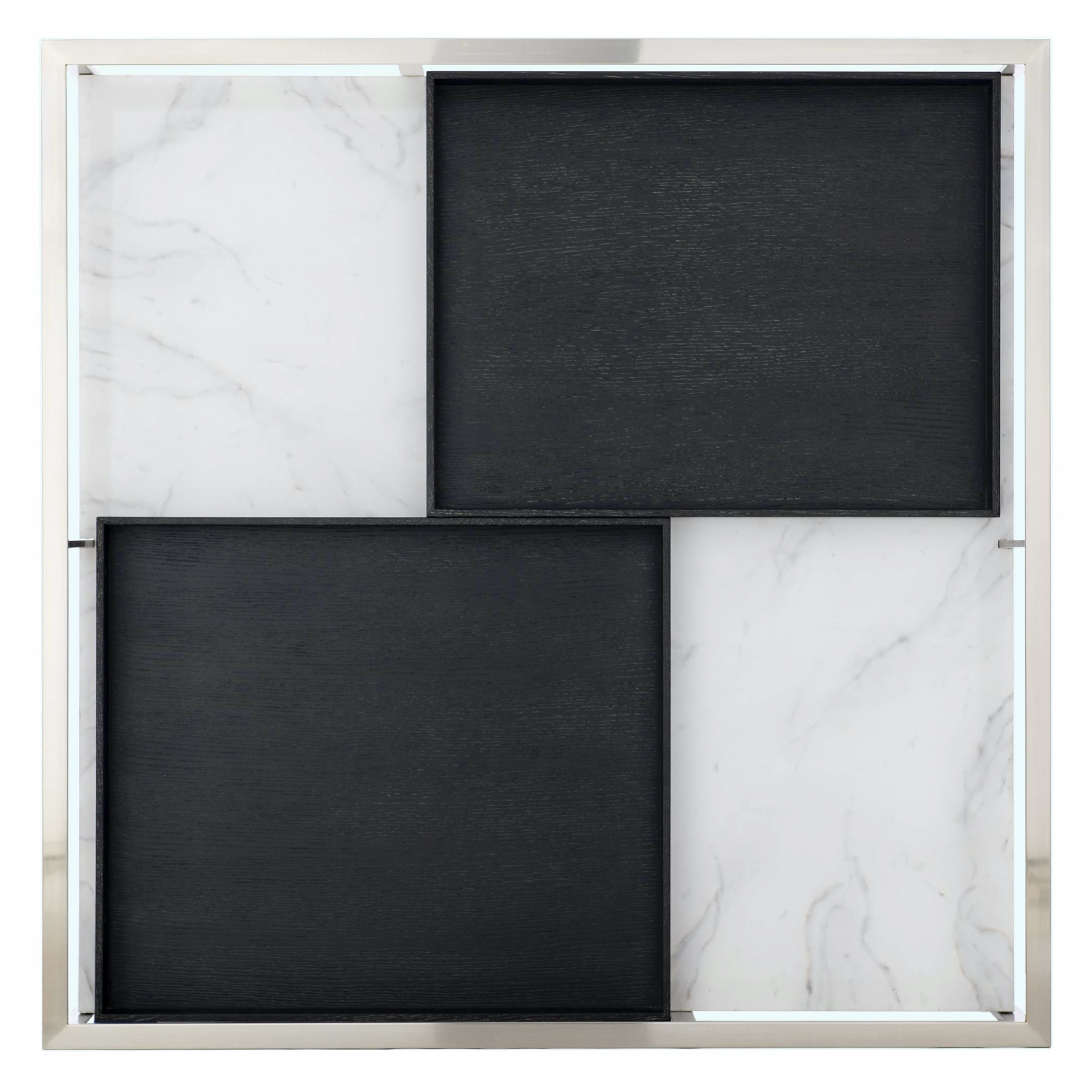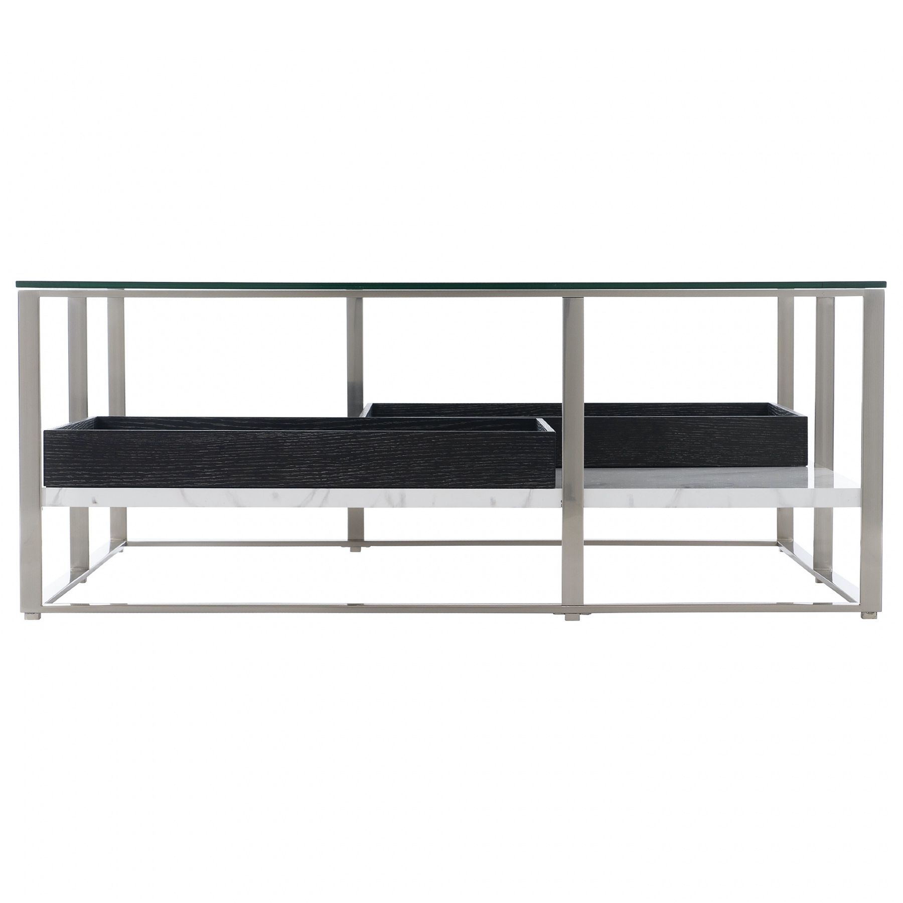 Cadre en acier inoxydable poli, fini Silver Mist, avec tablette en faux marbre peinte à la main.