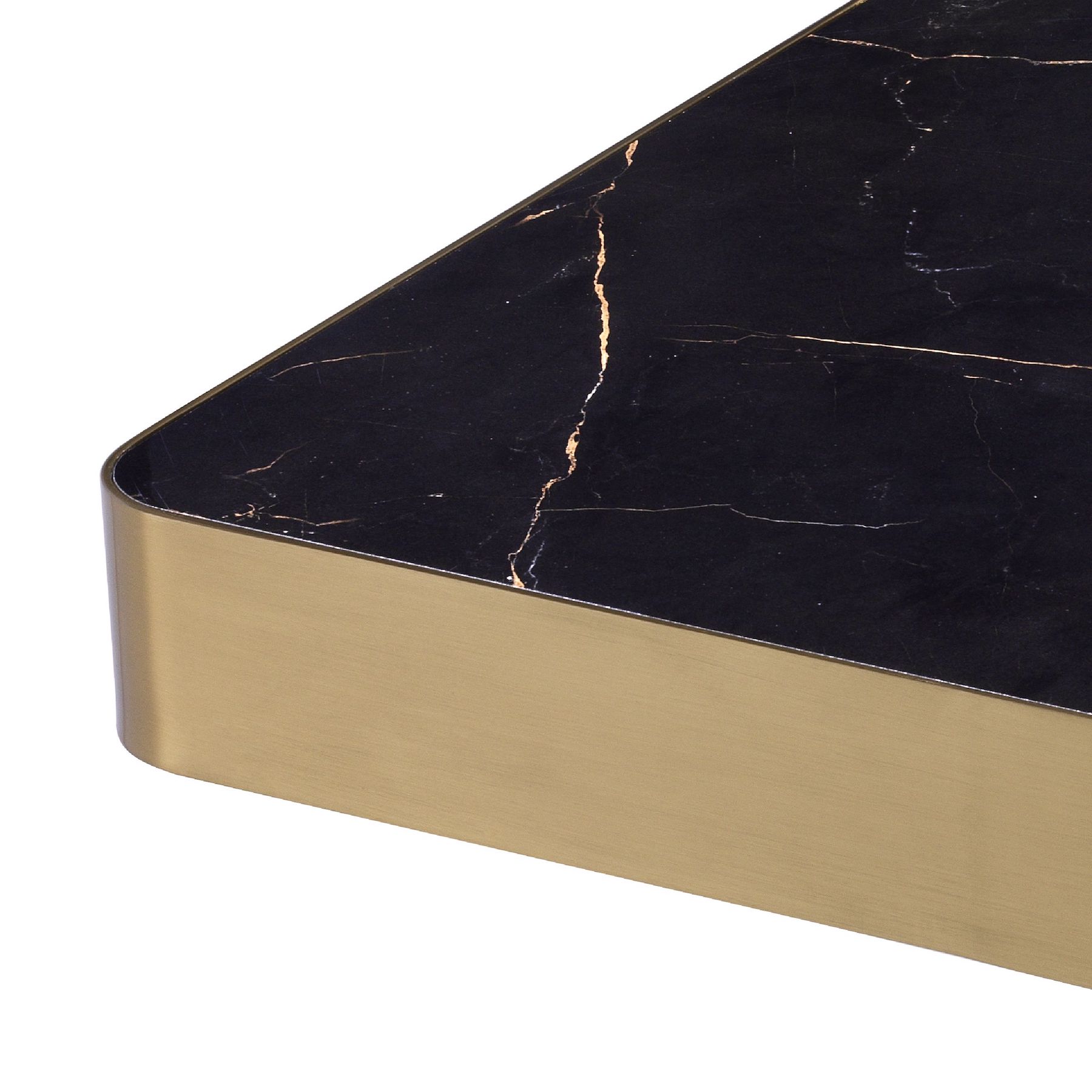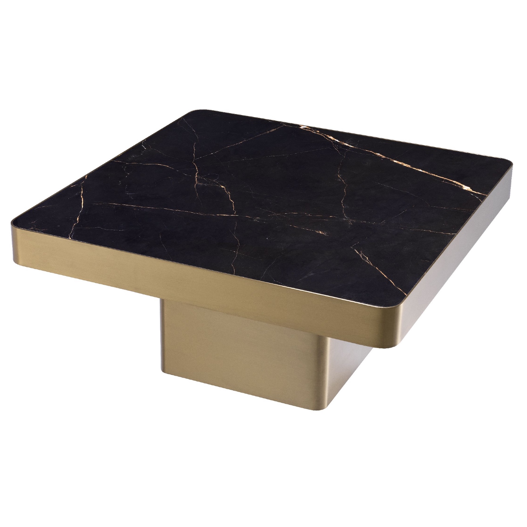 Complétez votre décor avec la table basse sophistiquée Luxus. Cette table basse saisissante aux coins arrondis est une belle addition aux intérieurs Art Déco. Il est caractérisé par une base robuste avec une finition en laiton brossé et un plateau en céramique noire avec un design d’aspect marbré avec un bord en laiton brossé. Pour créer un ensemble magnifique qui offre un espace de table supplémentaire, vous pouvez utiliser la table d’appoint Luxus comme table gigogne pour cette table basse.