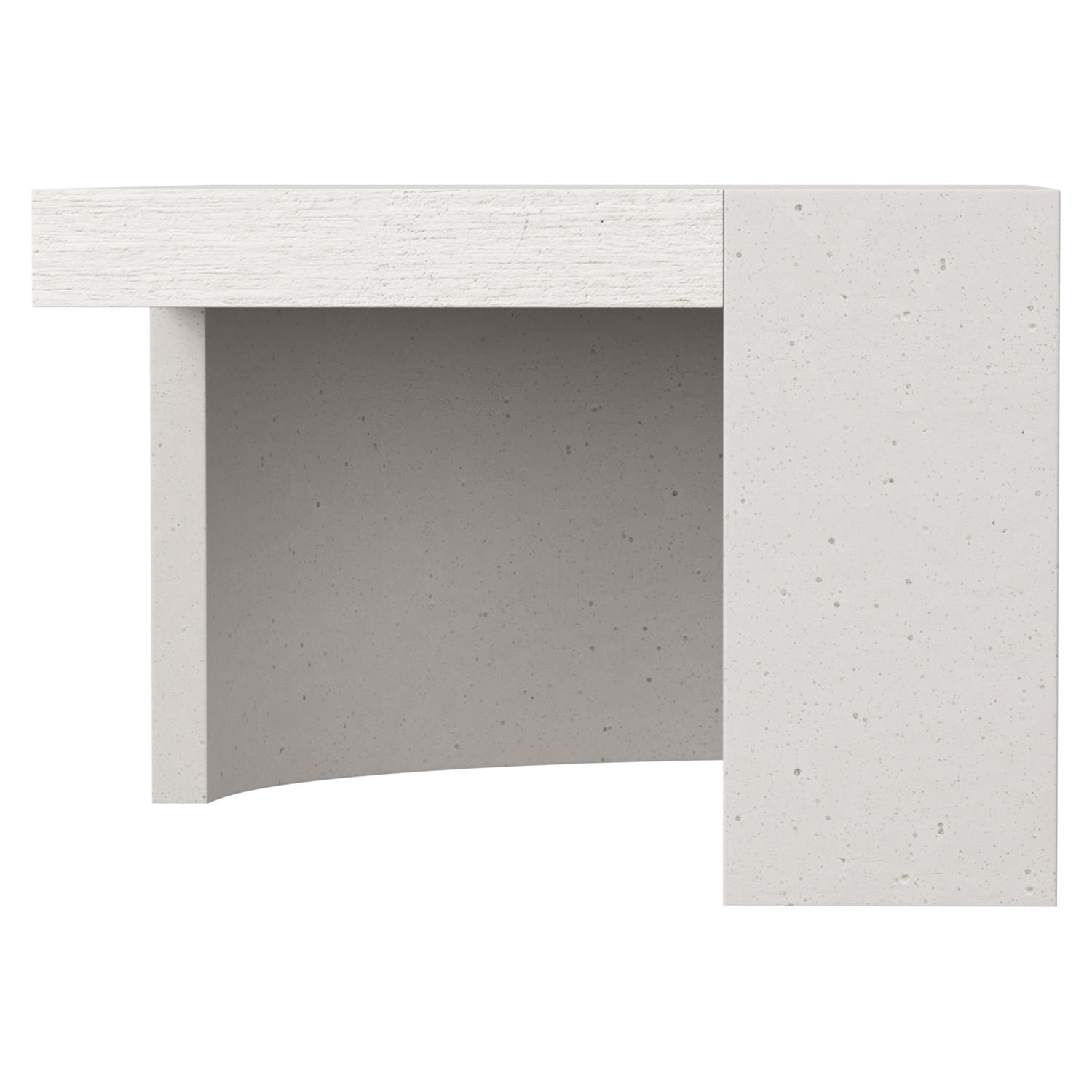 Plateau en bois inséré en finition Mist, soutenu par deux supports en fausse pierre sur les coins opposés en finition Fossil.