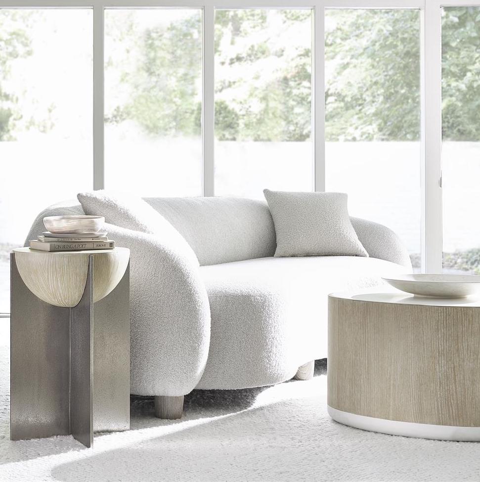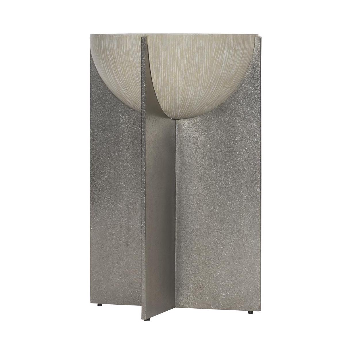 Un piédestal composé de plans en métal entrecroisés constitue la base singulière de la table d’appoint Solaria. Fabriqué en aluminium moulé dans une finition nickel brillant, la base supporte une demi-sphère en résine moulée dans une finition Dune. L’extraordinaire fusion des géométries et des surfaces lisses définit l’inspiration Bauhaus de cette table.