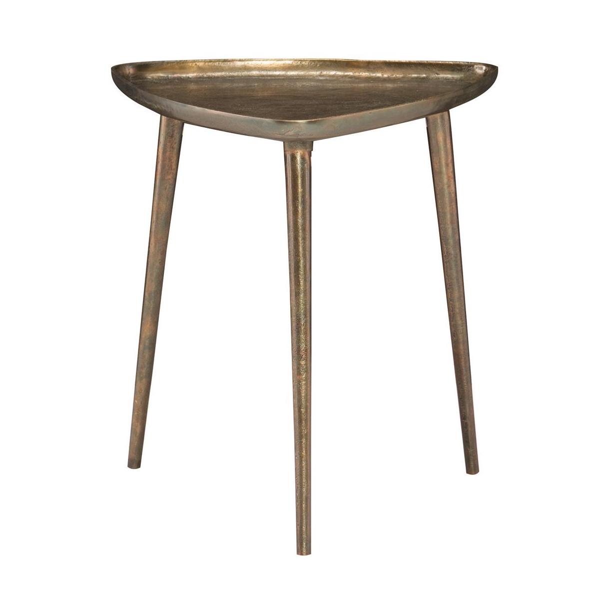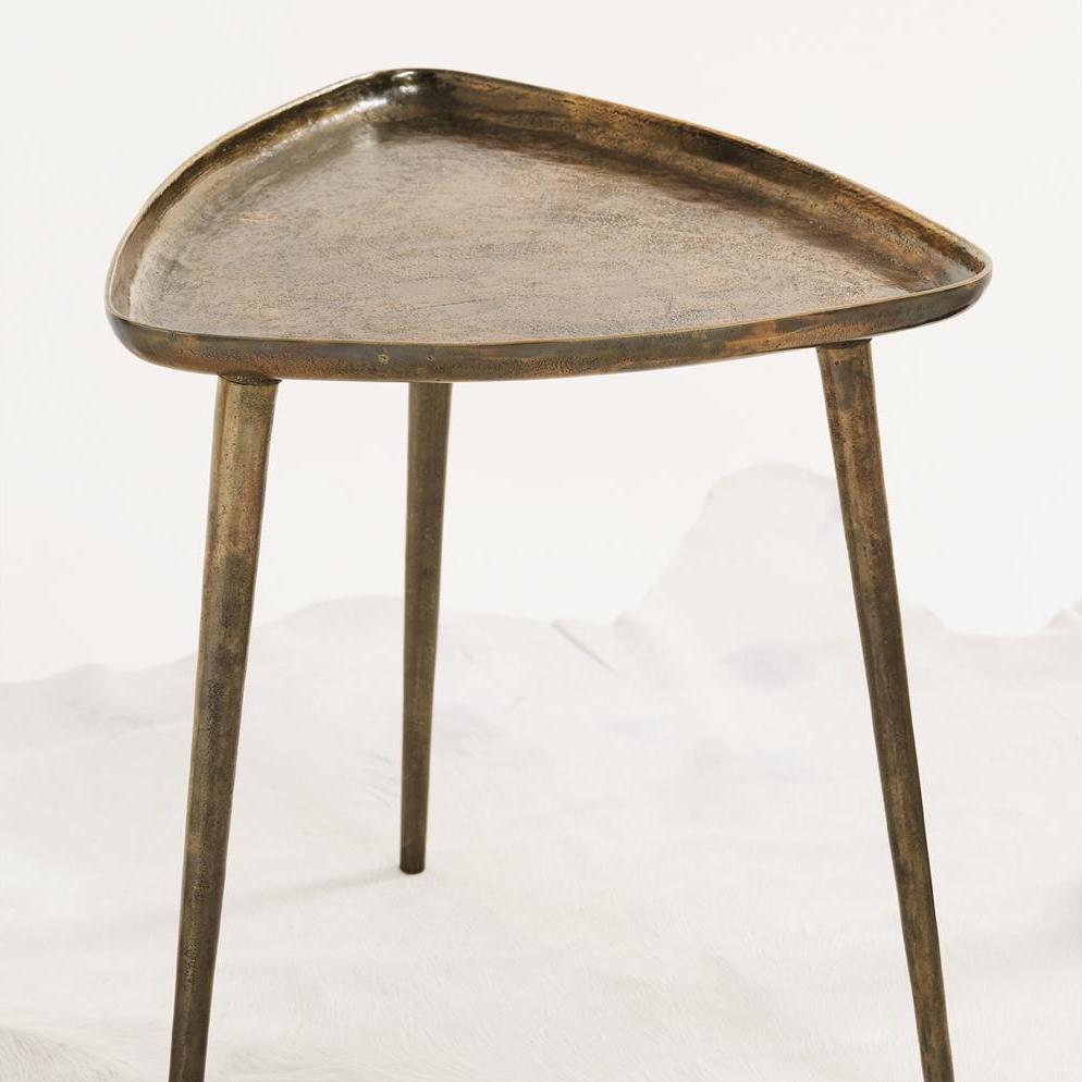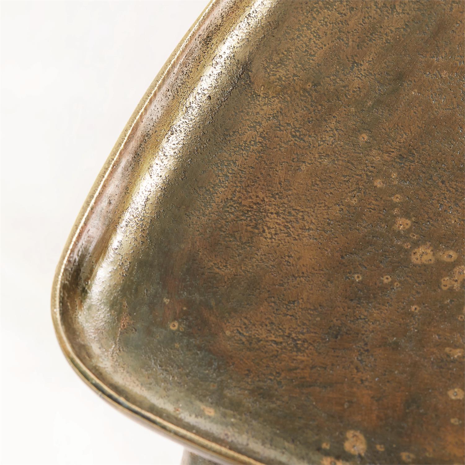 La table d’appoint Buckley réunit une base tripode et un plateau triangulaire à bords relevés. Inspirée du design industriel moderne, la table est fabriquée en aluminium moulé avec une finition en laiton foncé antique qui ajoute au caractère unique de la pièce.