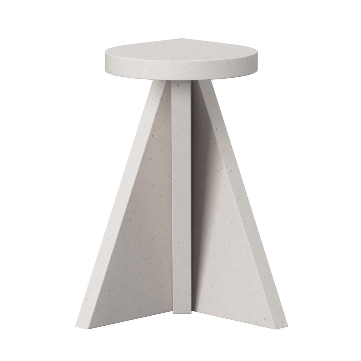 La table d’appoint Stratum se compose d’une base unique formée d’angles et de plans. Trois triangles entrecroisés soutiennent un sommet en forme de goutte d’eau. Le design moderne est complété par la finition en fausse pierre Fossil.