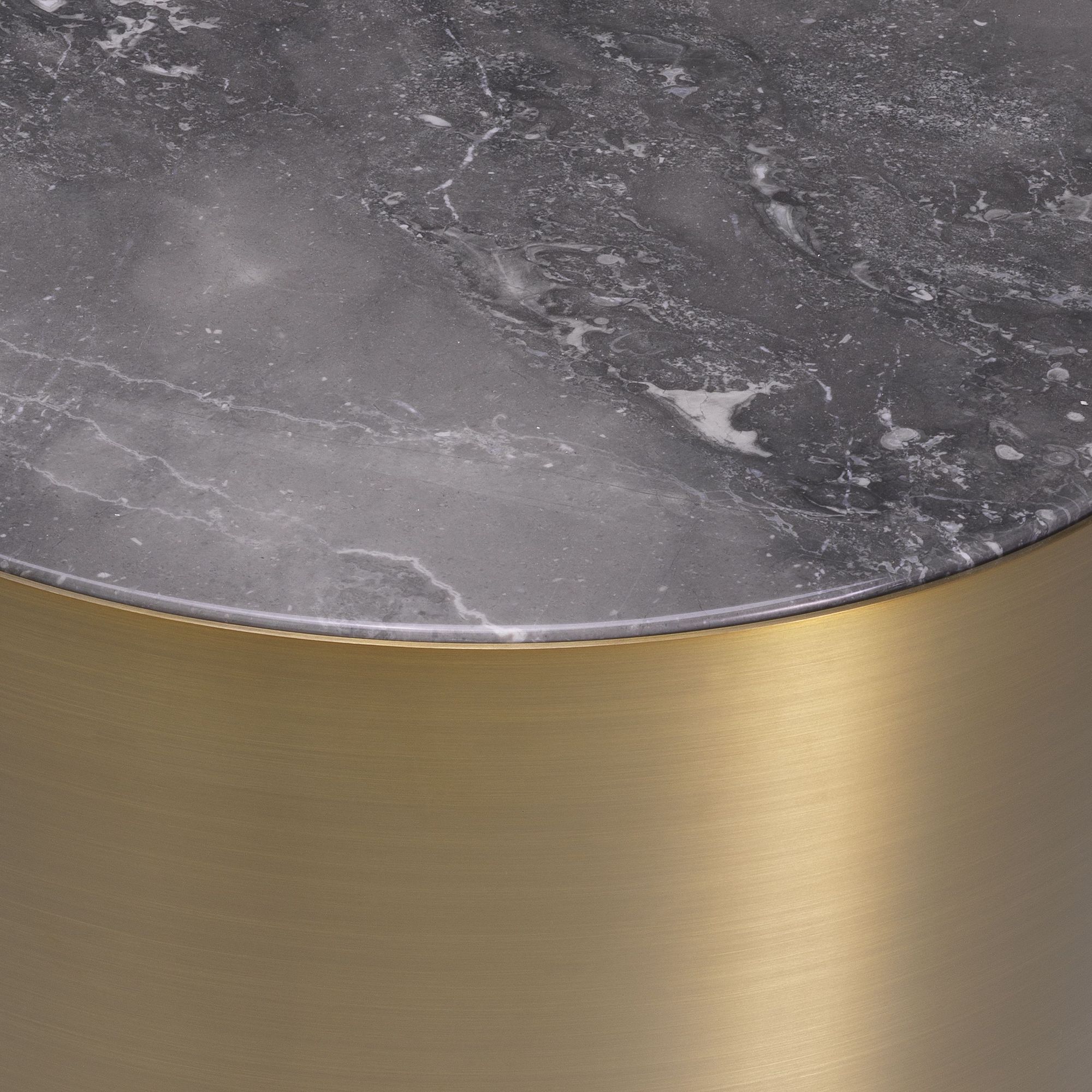 Conçue dans un souci d’élégance, la table d’appoint Porter rehaussera le style de votre maison. De forme ronde, cette jolie table d’appoint associe un corps en laiton brossé à une base noire et un plateau en marbre gris. L’aspect chaud du laiton contrebalance le ton froid du marbre avec un effet saisissant.