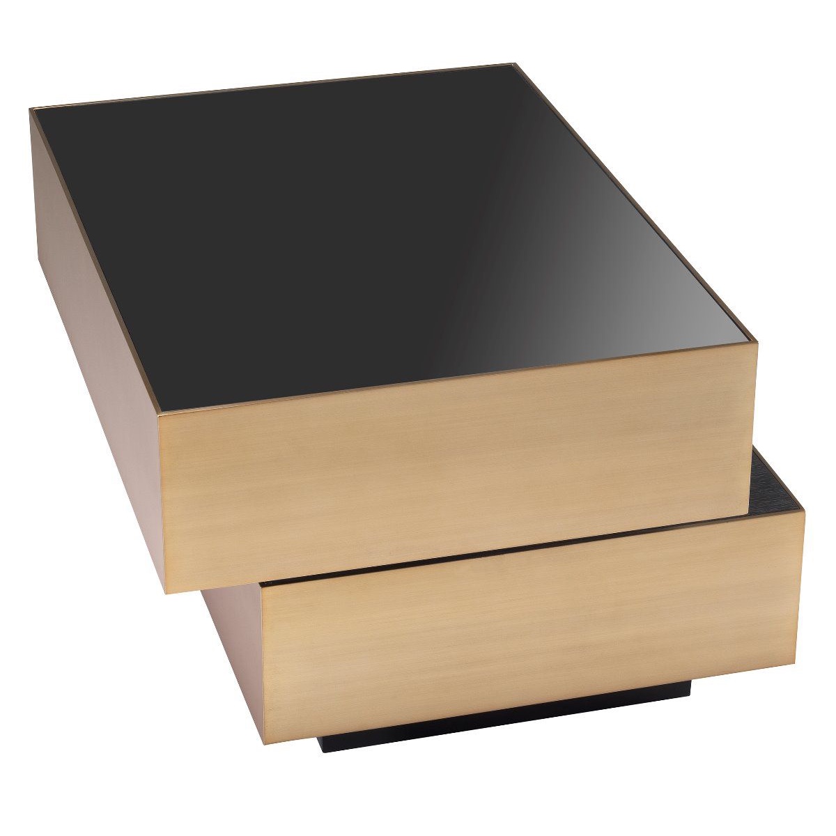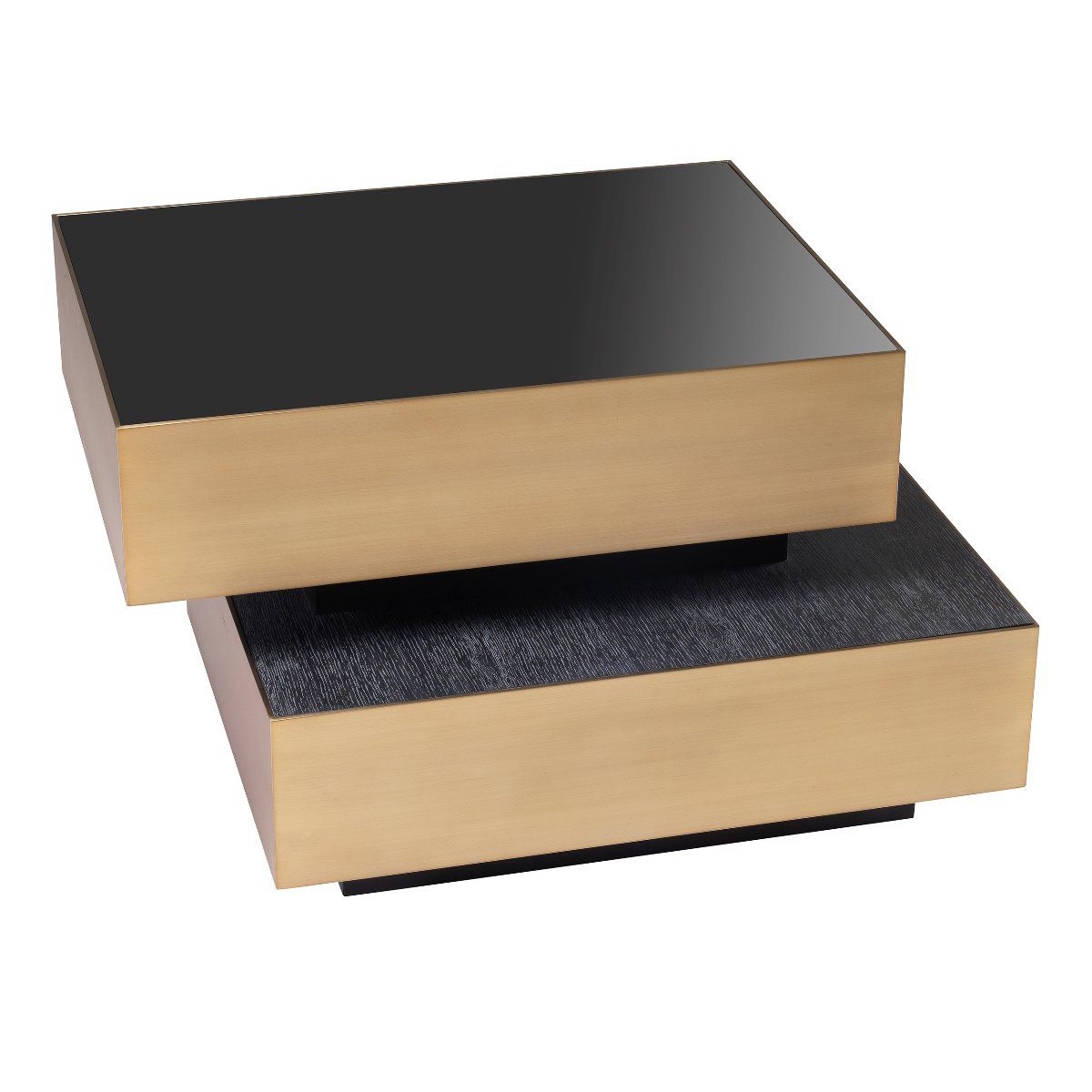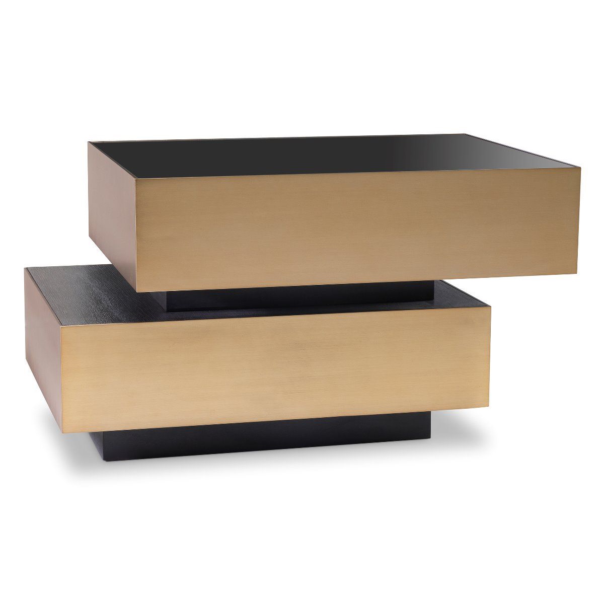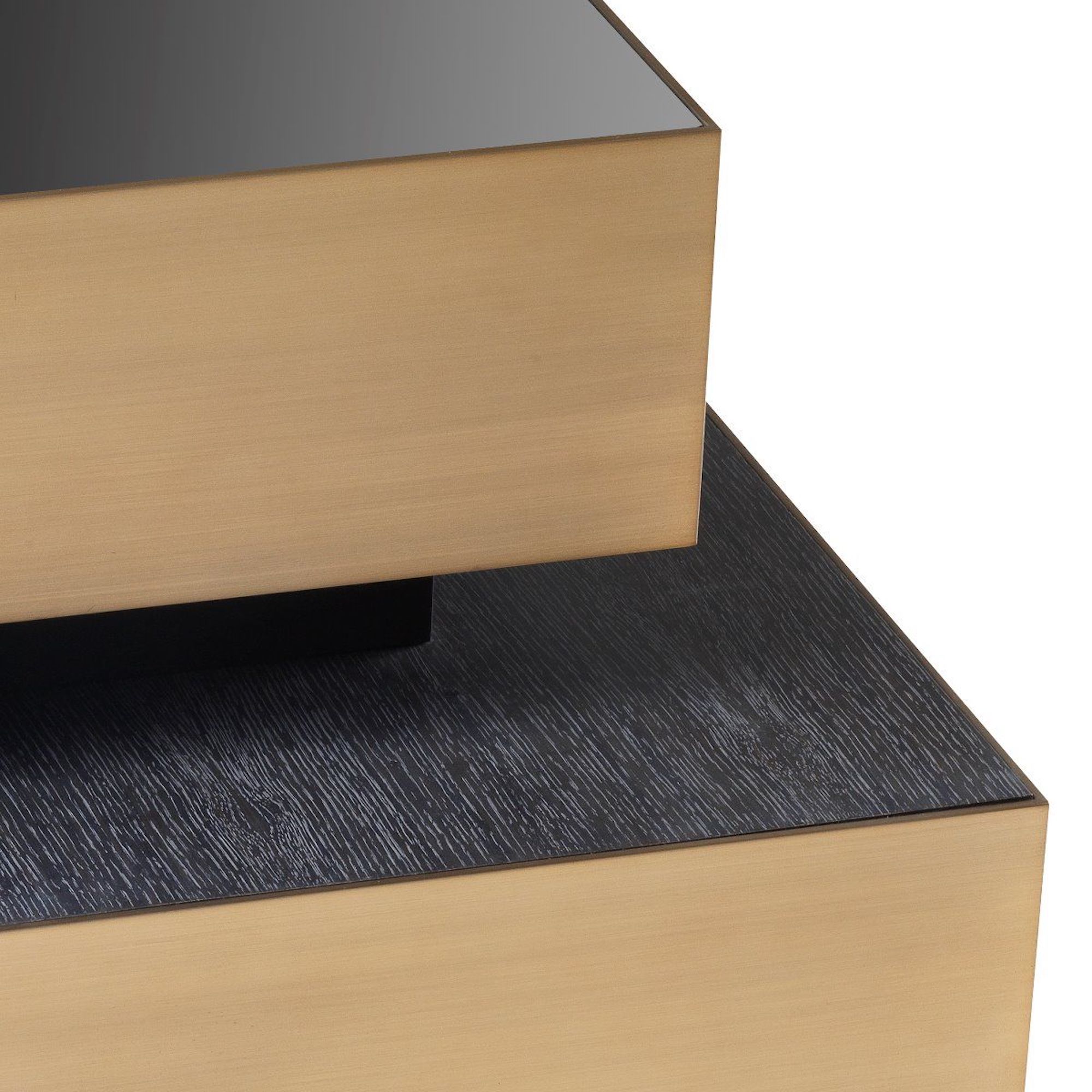 Créez un nouveau look extravagant dans votre salon avec la table d’appoint Shelton. Ce design excentrique présente deux carrés superposés avec un bord en laiton brossé. Le carré inférieur a un dessus en placage de chêne gris charcoal, le carré supérieur a un dessus en verre noir.