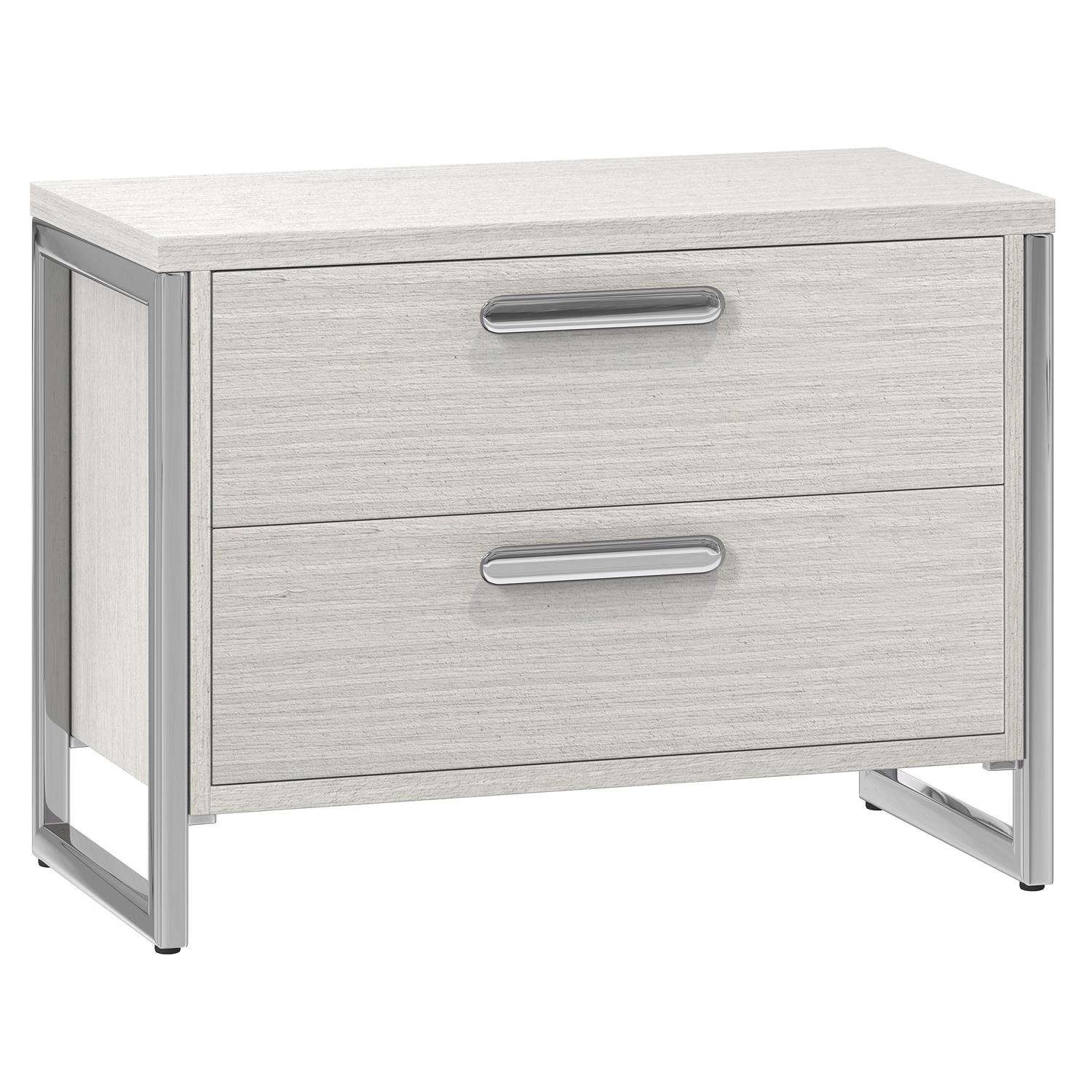 La table de nuit Stratum offre un peu de glamour avec l’éclat du métal poli des cadres ouverts et de la quincaillerie élégante. La finition Mist fait ressortir le magnifique grain du bois. Deux portes à fermeture douce offrent un espace de rangement, tandis qu’une unité de chargement USB à deux ports située à l’arrière est fonctionnelle.
