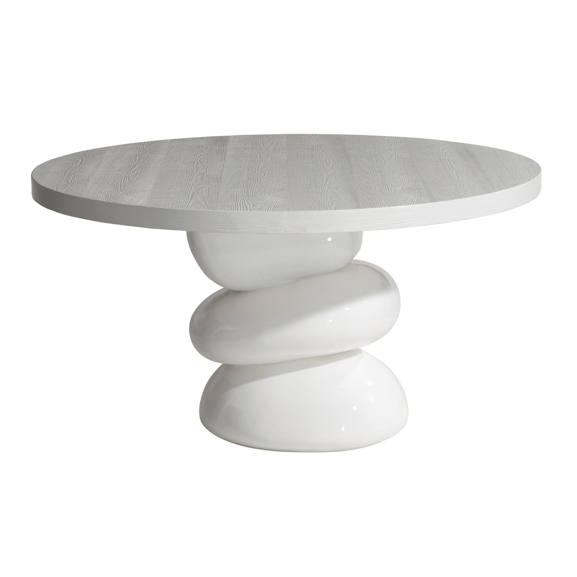 La table de salle à manger Navar présente un design élégant et organique avec trois formes de fausses pierres empilées en résine coulée brillante formant la base. Le plateau mat en finition Azucar s’équilibre sur le piédestal, offrant un style naturellement beau.