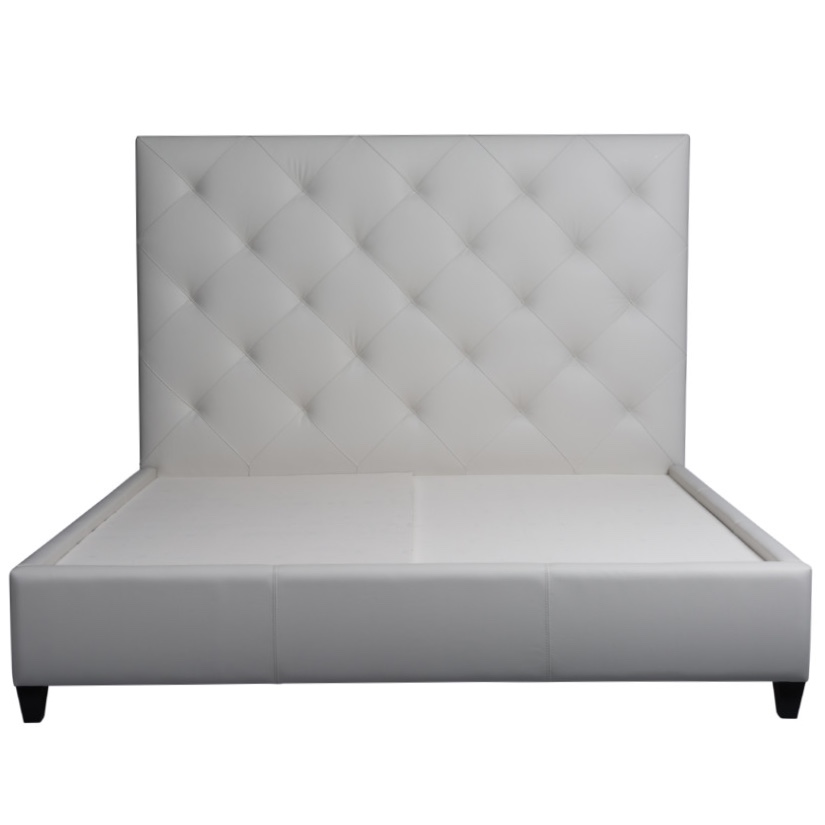 A contemporary tufted headboard