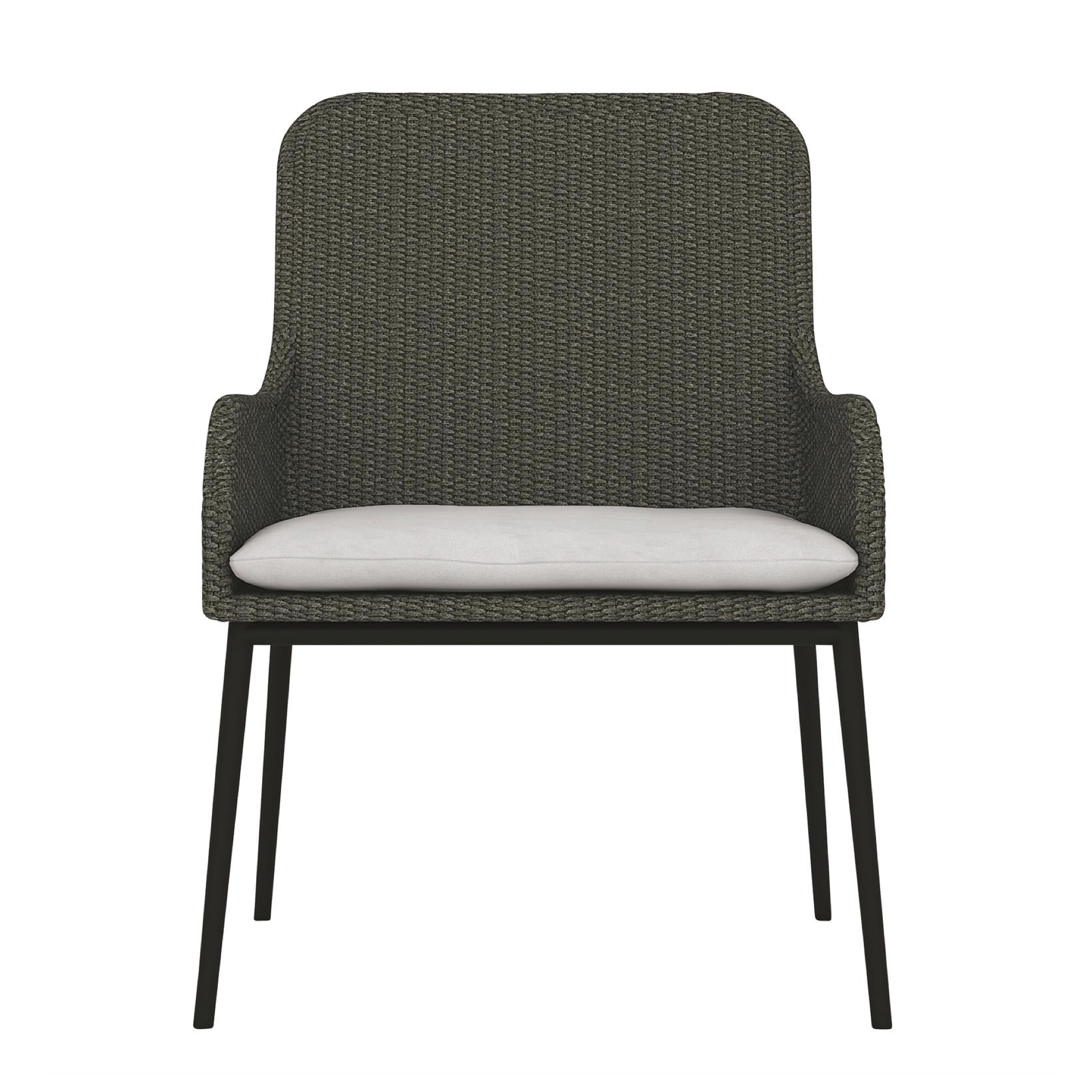 With its natural aesthetic and durability, the Antilles rope arm chair is an ideal outdoor seat. Stylish, sturdy and lightweight, it features a flat rope weave in a Gray Flannel finish. Powder-coated stainless steel legs add a sleek, modern touch.