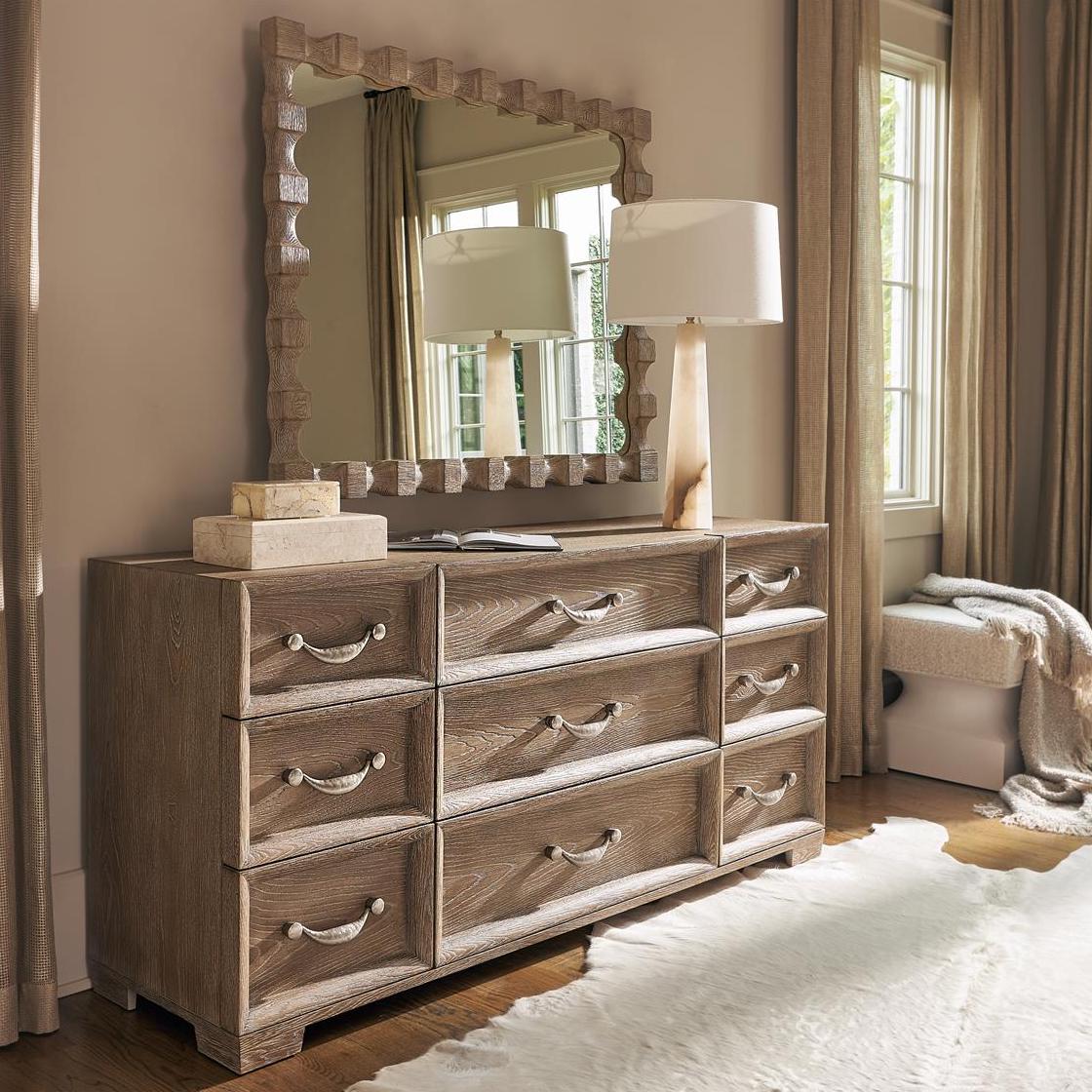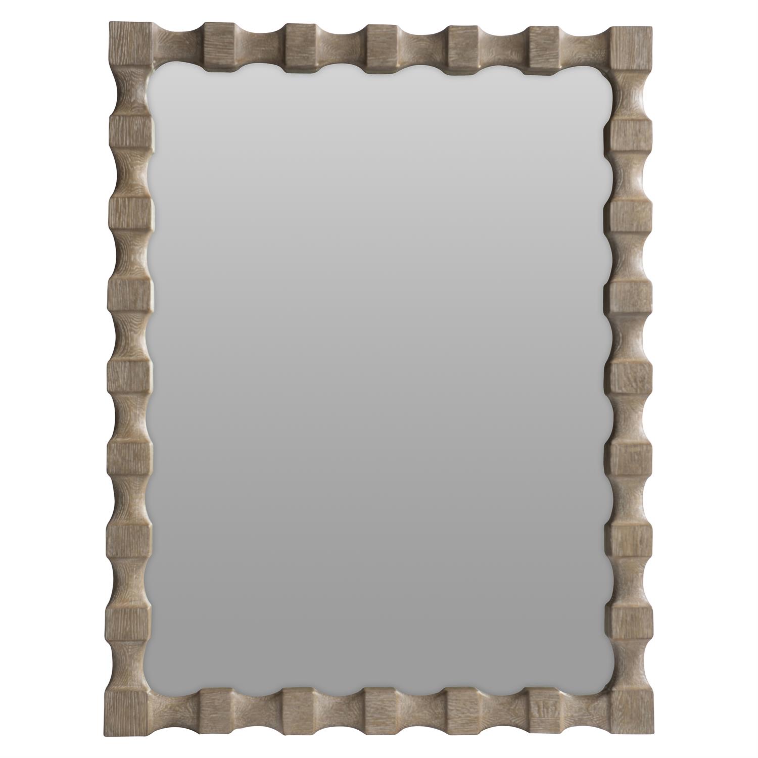 Cast resin offers the dimensional look of carved wood on the Aventura mirror. A faux wood grain is created in the beautiful Marcona finish. This mirror may be hung horizontally or vertically.