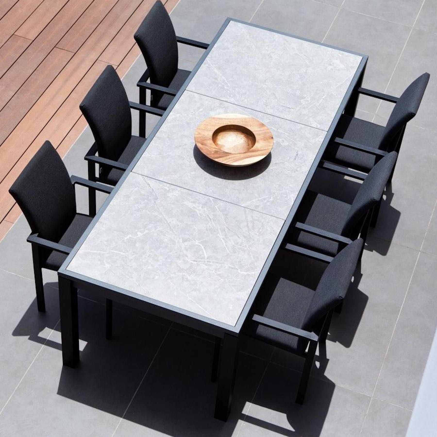 Our outdoor furniture collection is upholstered with fabric or leather that is suitable for outdoor usage throughout the whole year. Our furniture is not designed to be waterproof, but it let’s water through as quickly as possible. By using breathable materials, we ensure a constant air circulation inside our furniture. This makes it possible that after heavily rain the furniture can dry completely after 30 minutes.