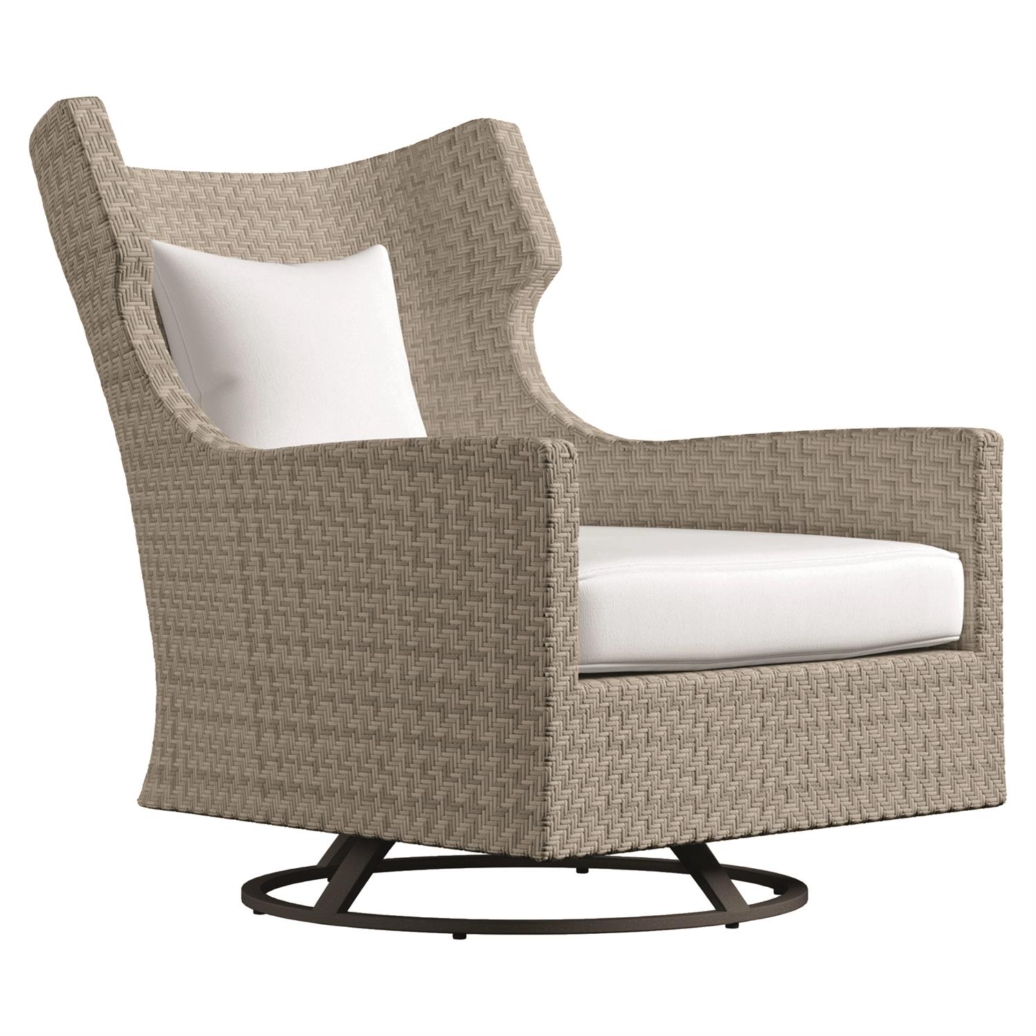 The gracefully curved Captiva wingback swivel chair offers a tasteful spin on classic design. Expertly crafted from All-Weather Wicker in a herringbone weave, it features a weltless fiber back pillow for extra comfort. The aluminum frame in a graphite finish adds sturdiness as well as a compelling look.