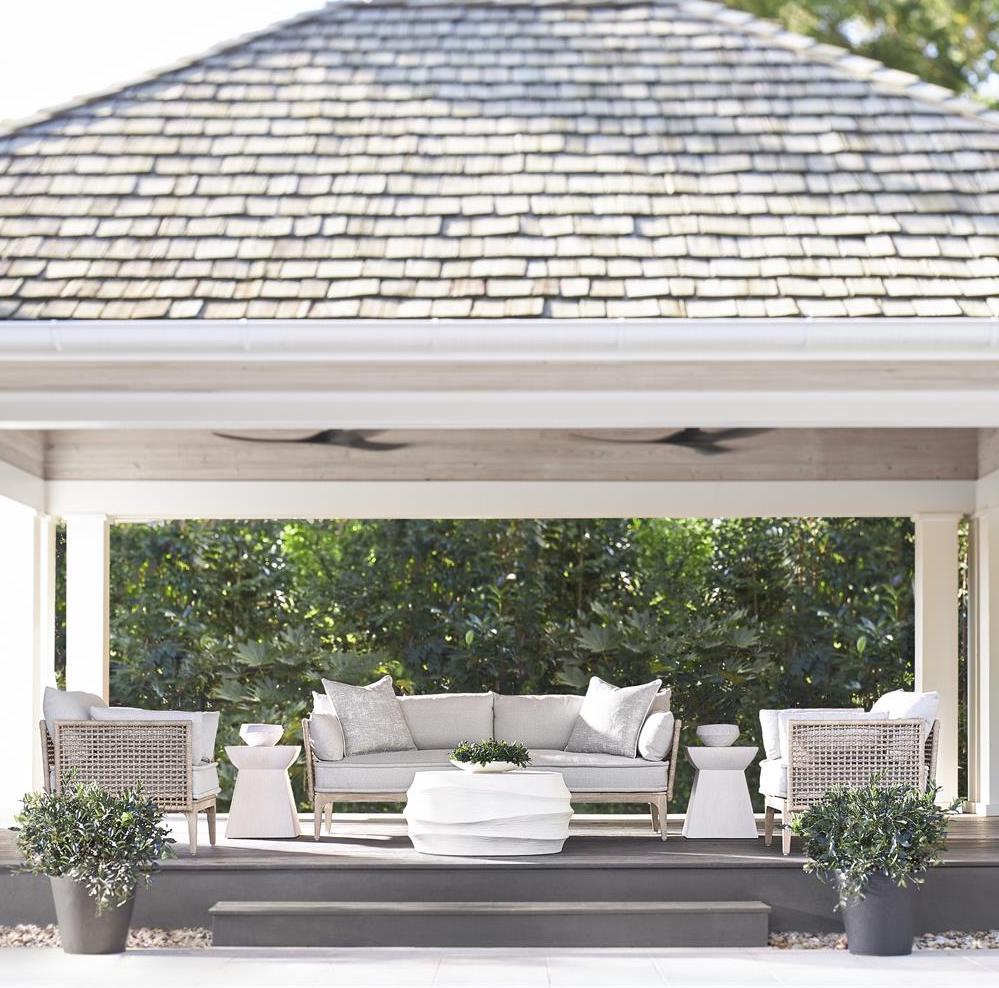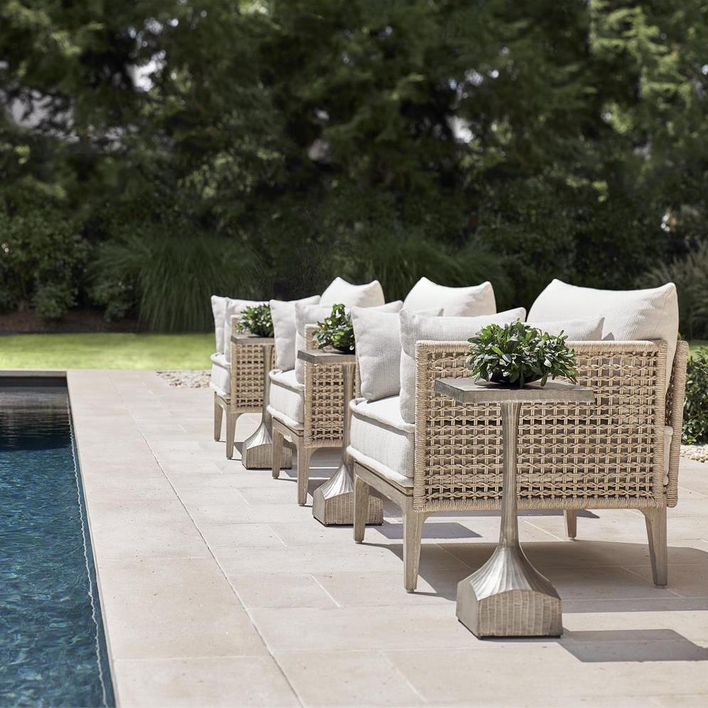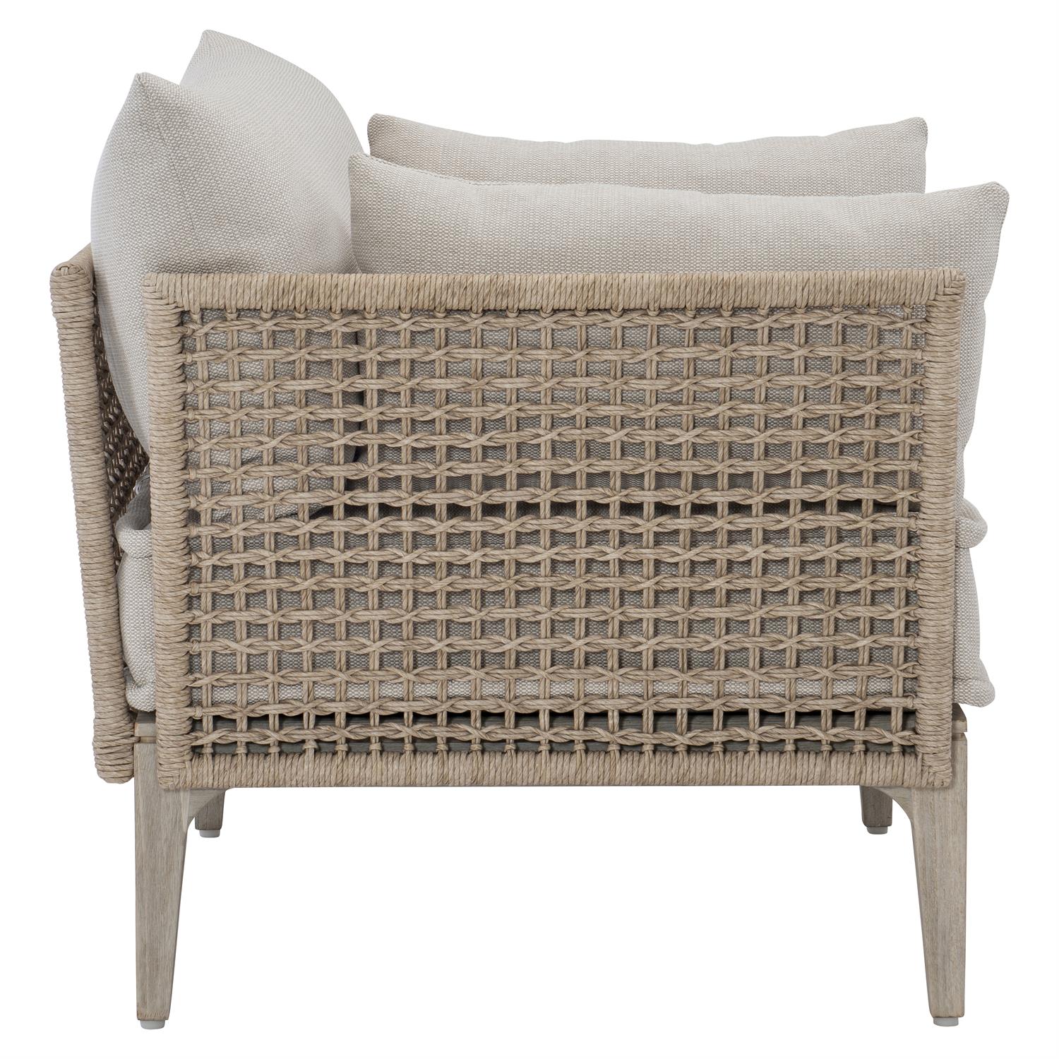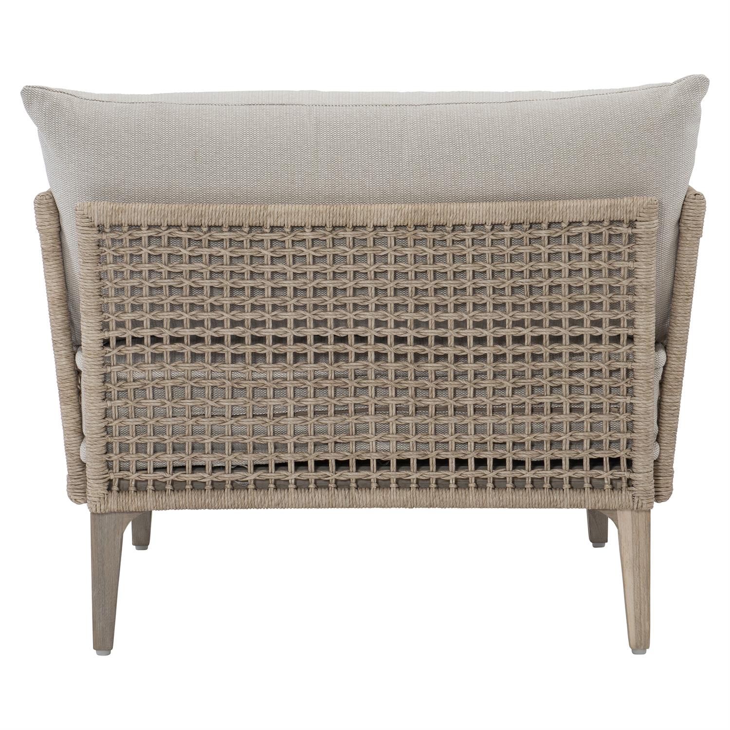 In a mix of stunning textures, the Catalonia chair is designed with twisted abaca all-weather wicker across the sides and back, over a frame of sun-washed teak. A deep seat cushion is flanked by a back pillow and two bolsters for ease and comfort. The elevated outdoor look breathes fresh air into exterior design with uniquely beautiful materials.