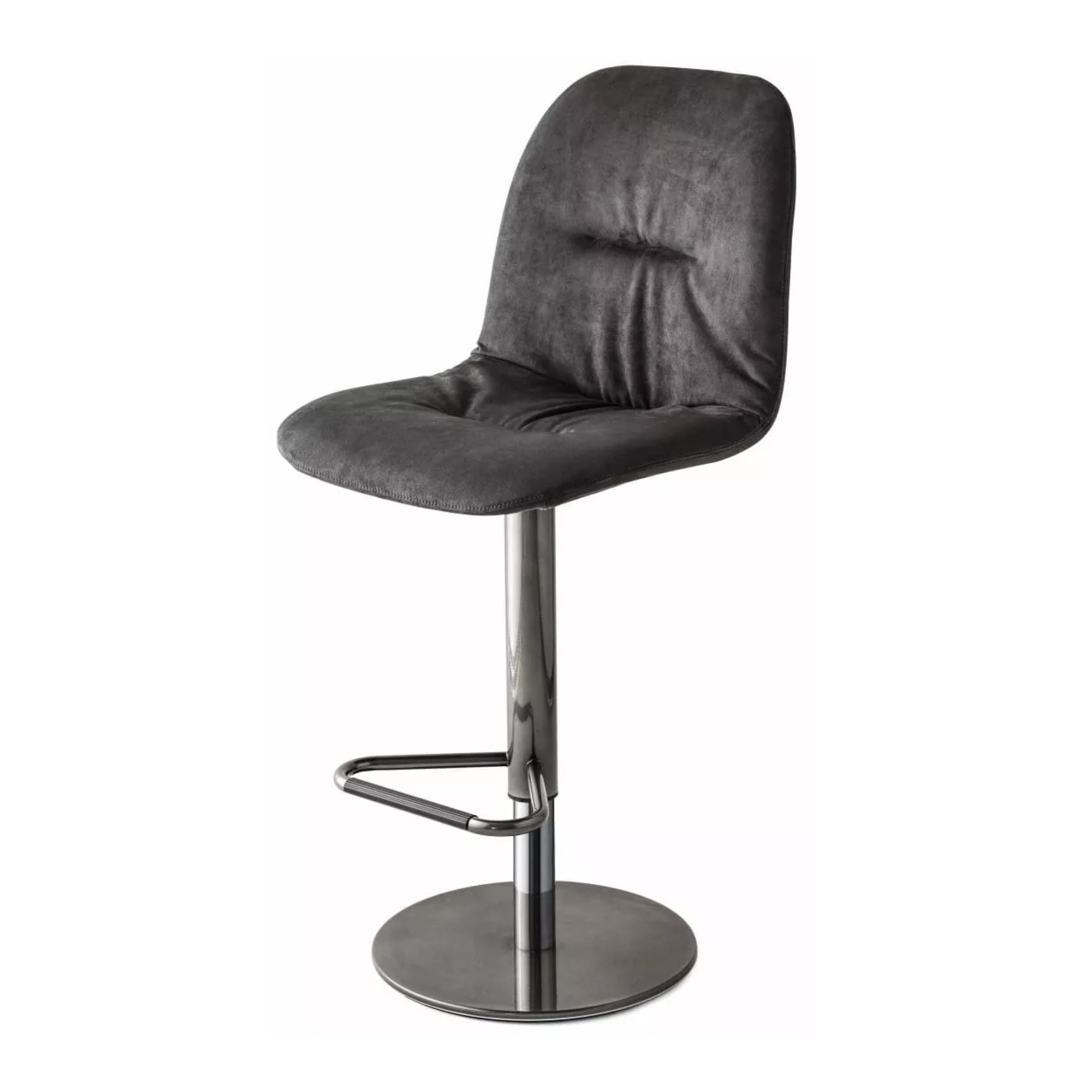 Available in various fabrics or leathers with legs / base in various metal finishes. Bar height, counter height with metal legs and adjustable base versions available.