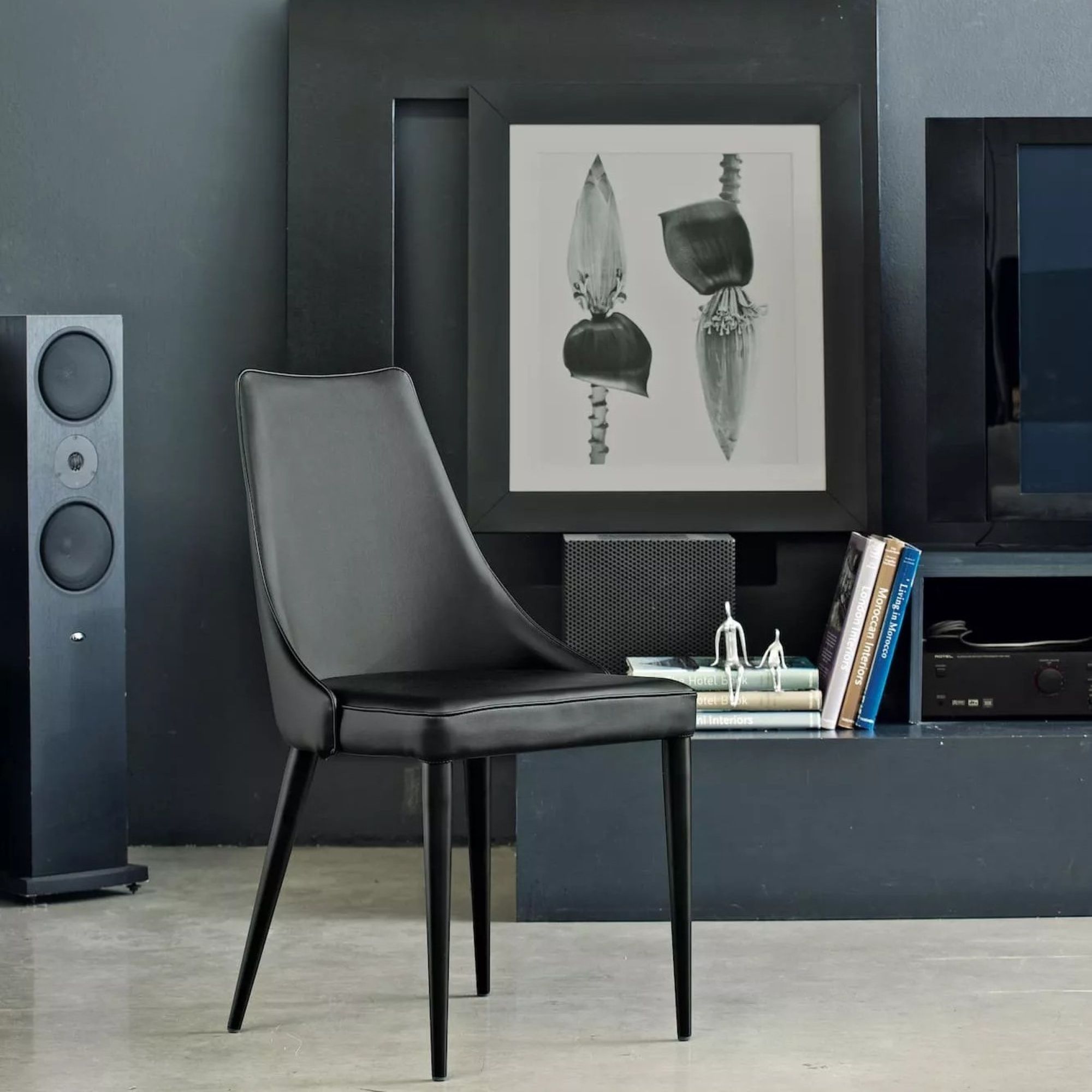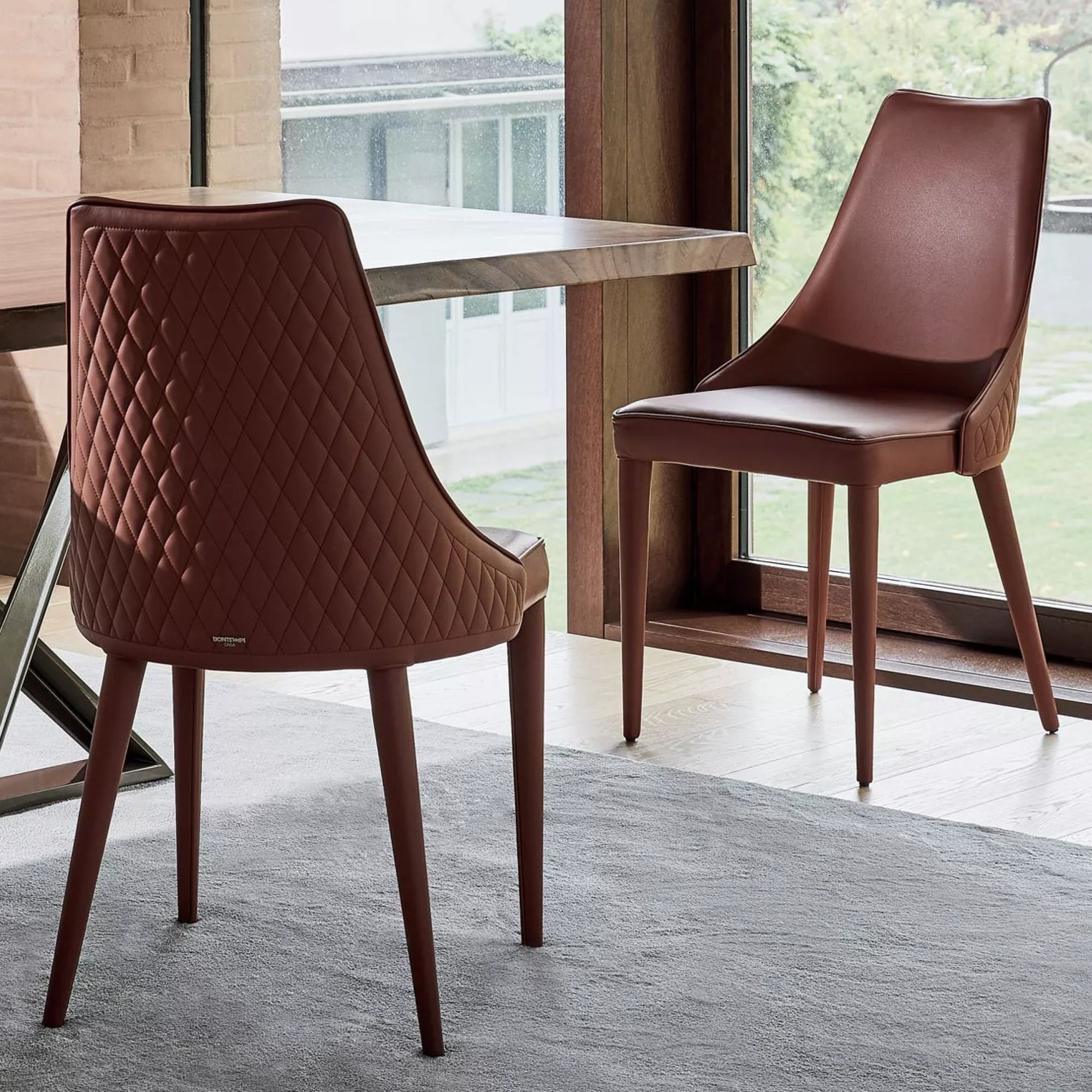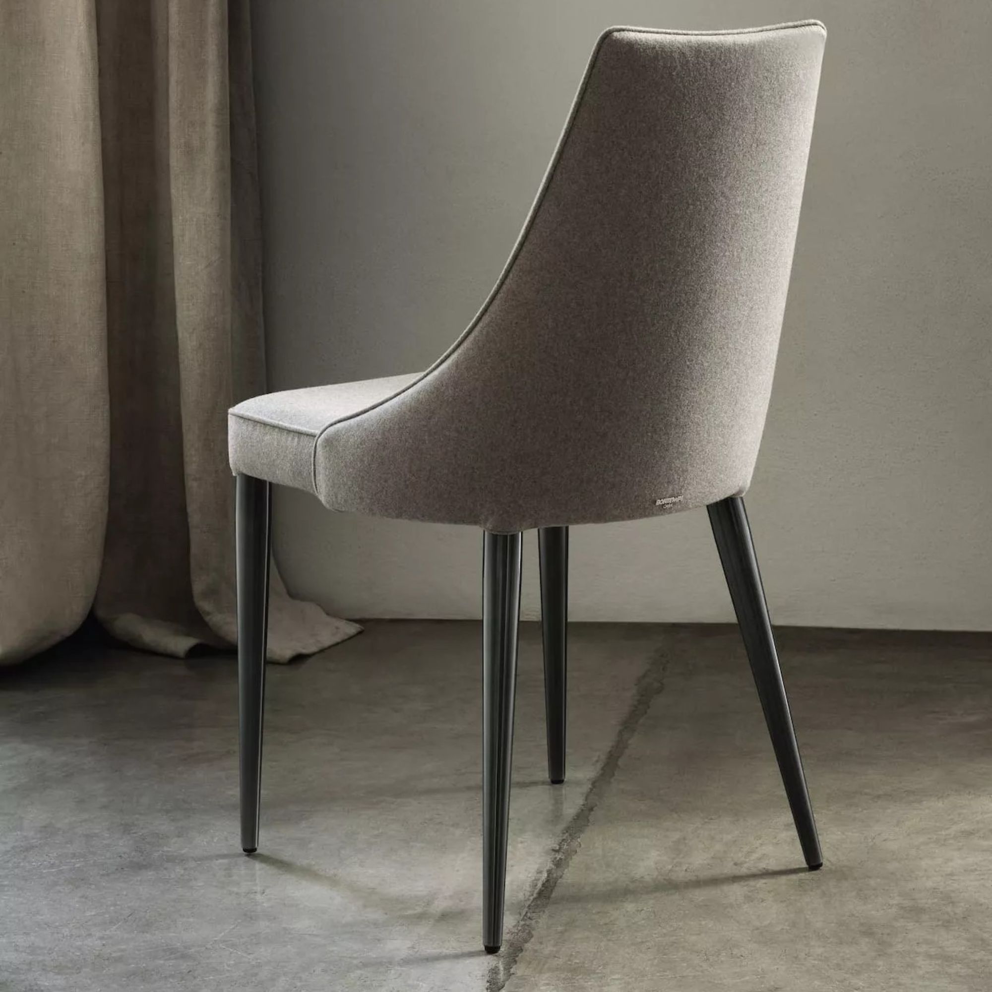 Available in various fabrics or leathers with metal legs in various finishes or upholstered legs. Optional quilted back available.