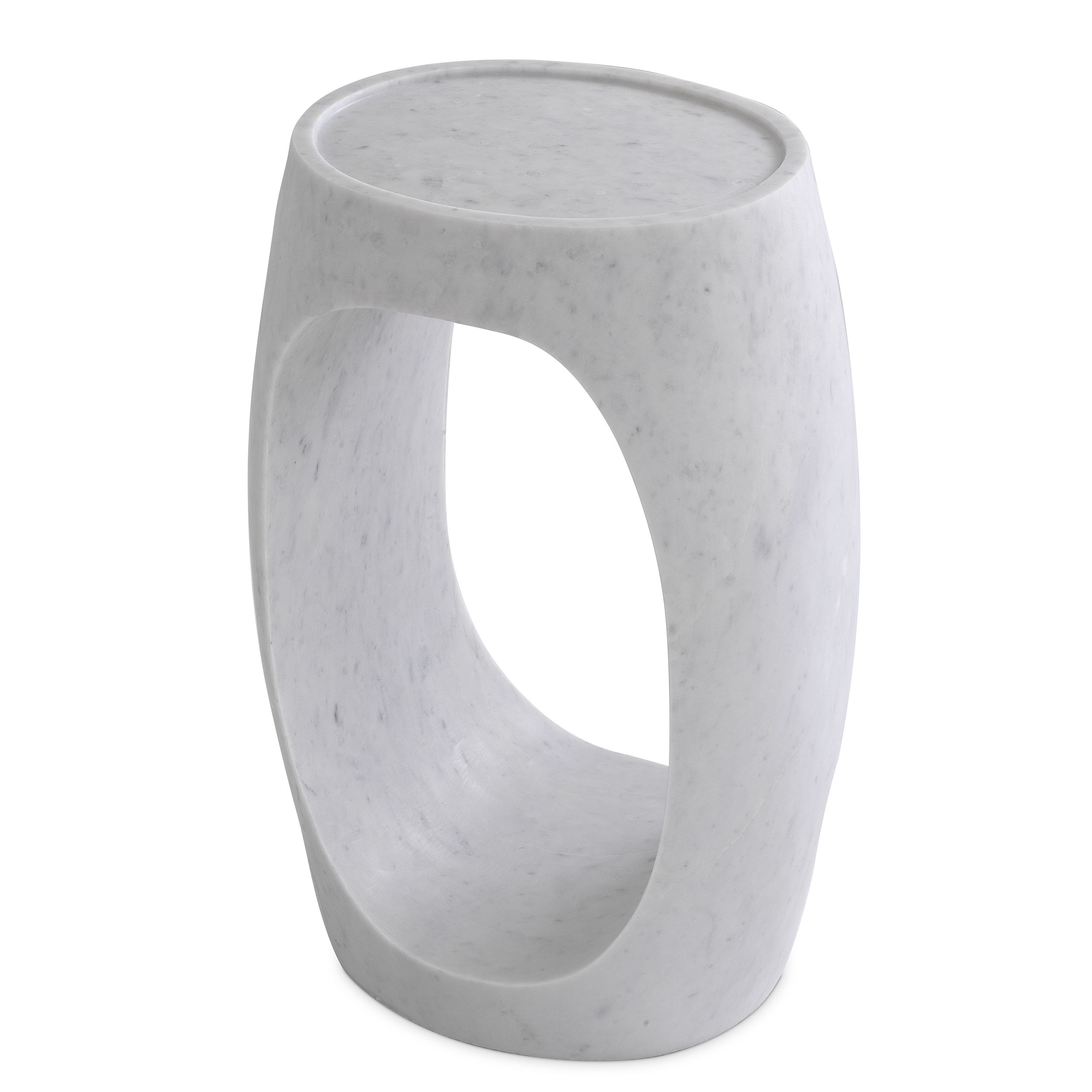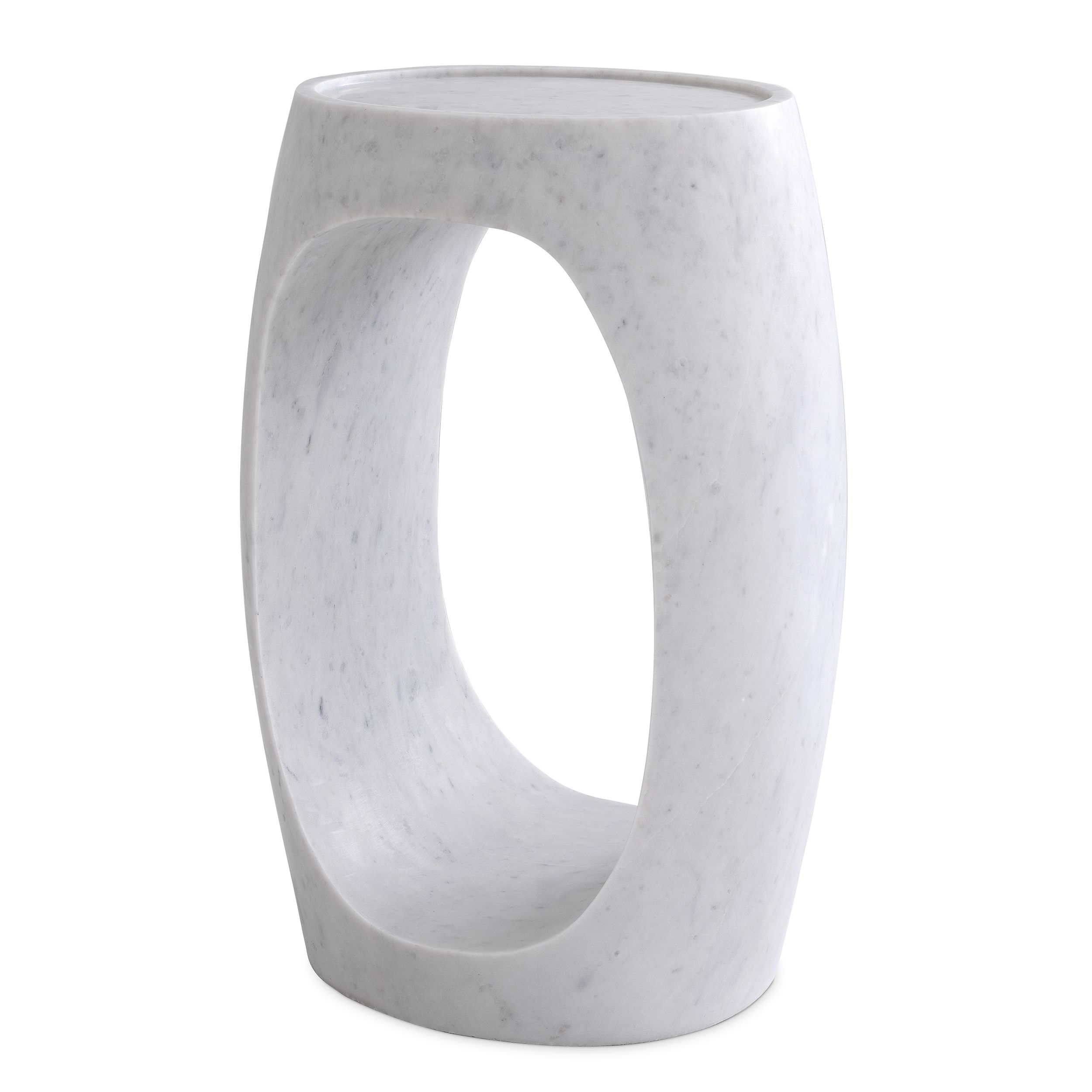 In need of a little extra storage space with an elegant look? Exuding Mid-Century Modern style, the low Clipper Side Table offers generous storage space underneath its round top with raised edge. It is entirely crafted from one solid piece of white marble, which makes each piece unique. The honed finish gives the stone a beautiful matte look and velvet-like touch. Combine with the high Clipper Side Table for a great plant nook.