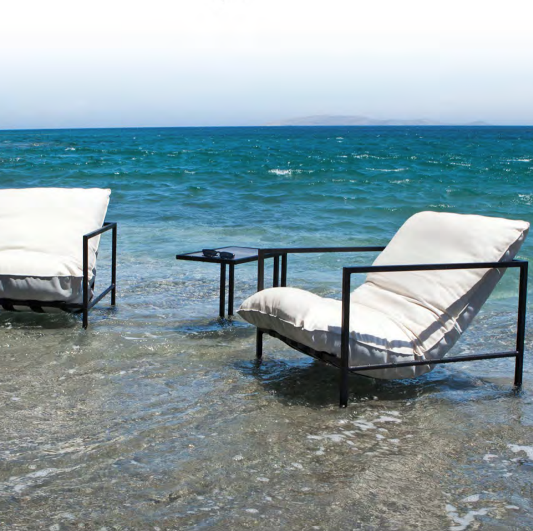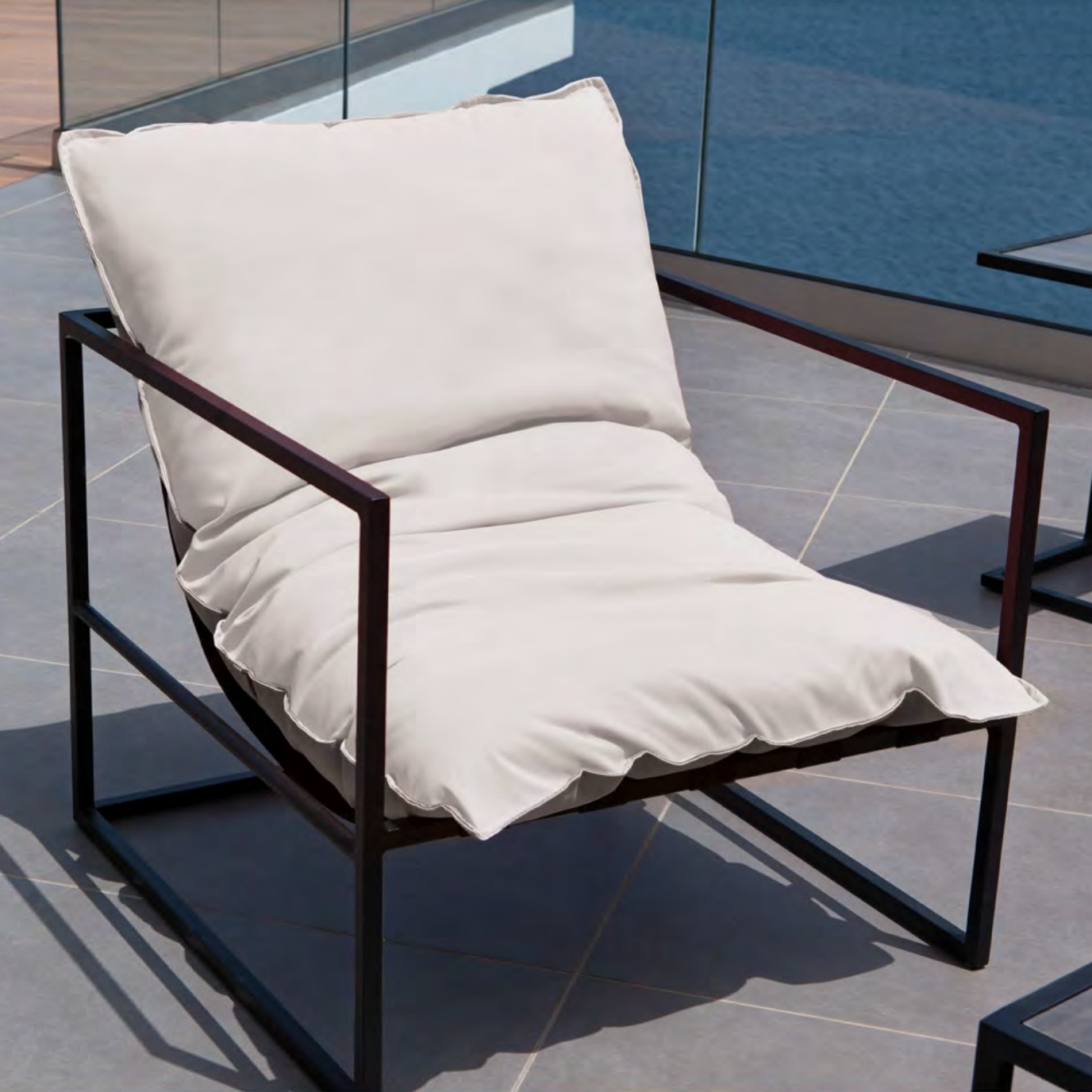 Our outdoor furniture collection is upholstered with fabric or leather that is suitable for outdoor usage throughout the whole year. Our furniture is not designed to be waterproof, but it let’s water through as quickly as possible. By using breathable materials, we ensure a constant air circulation inside our furniture. This makes it possible that after heavily rain the furniture can dry completely after 30 minutes.