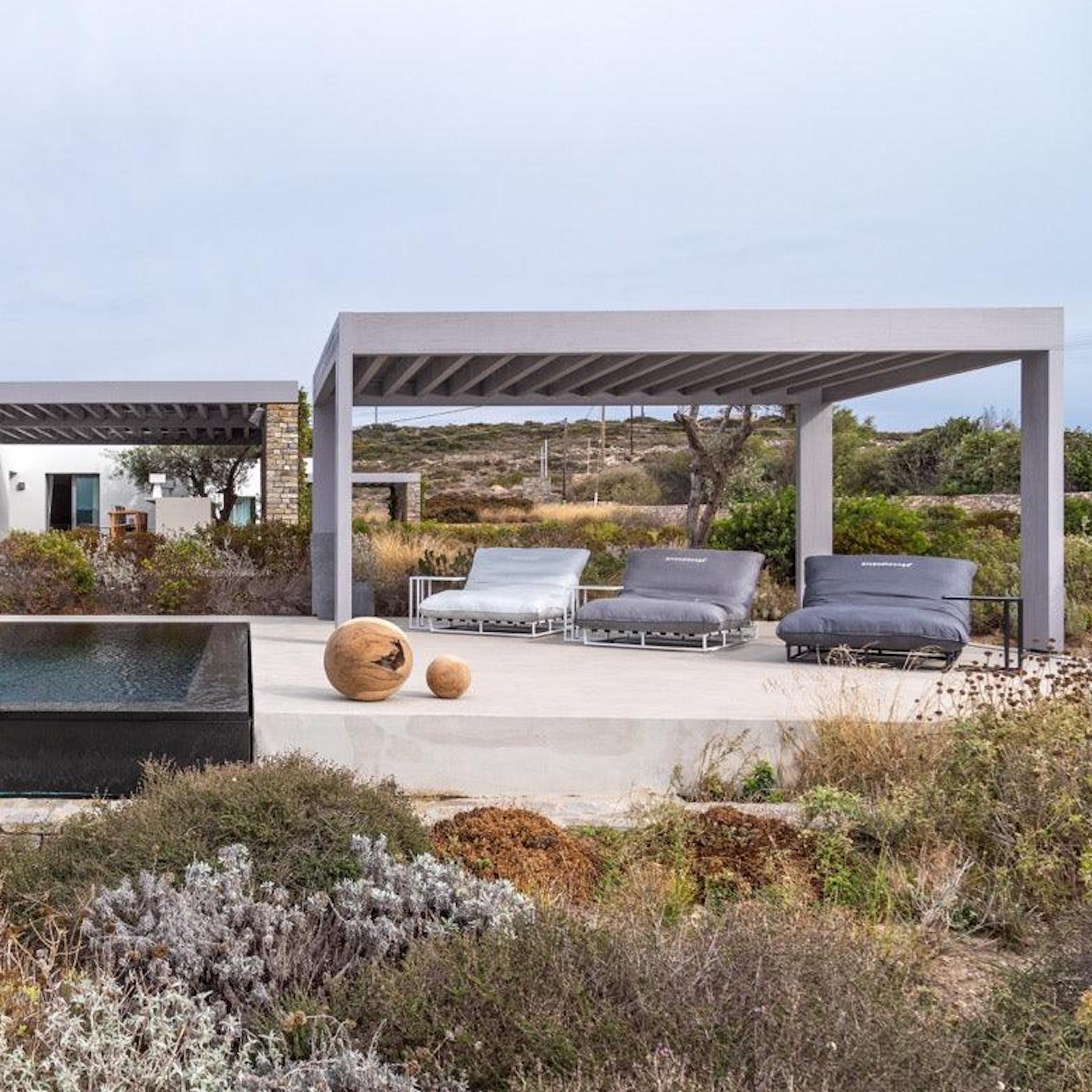 Our outdoor furniture collection is upholstered with fabric or leather that is suitable for outdoor usage throughout the whole year. Our furniture is not designed to be waterproof, but it let’s water through as quickly as possible. By using breathable materials, we ensure a constant air circulation inside our furniture. This makes it possible that after heavily rain the furniture can dry completely after 30 minutes.