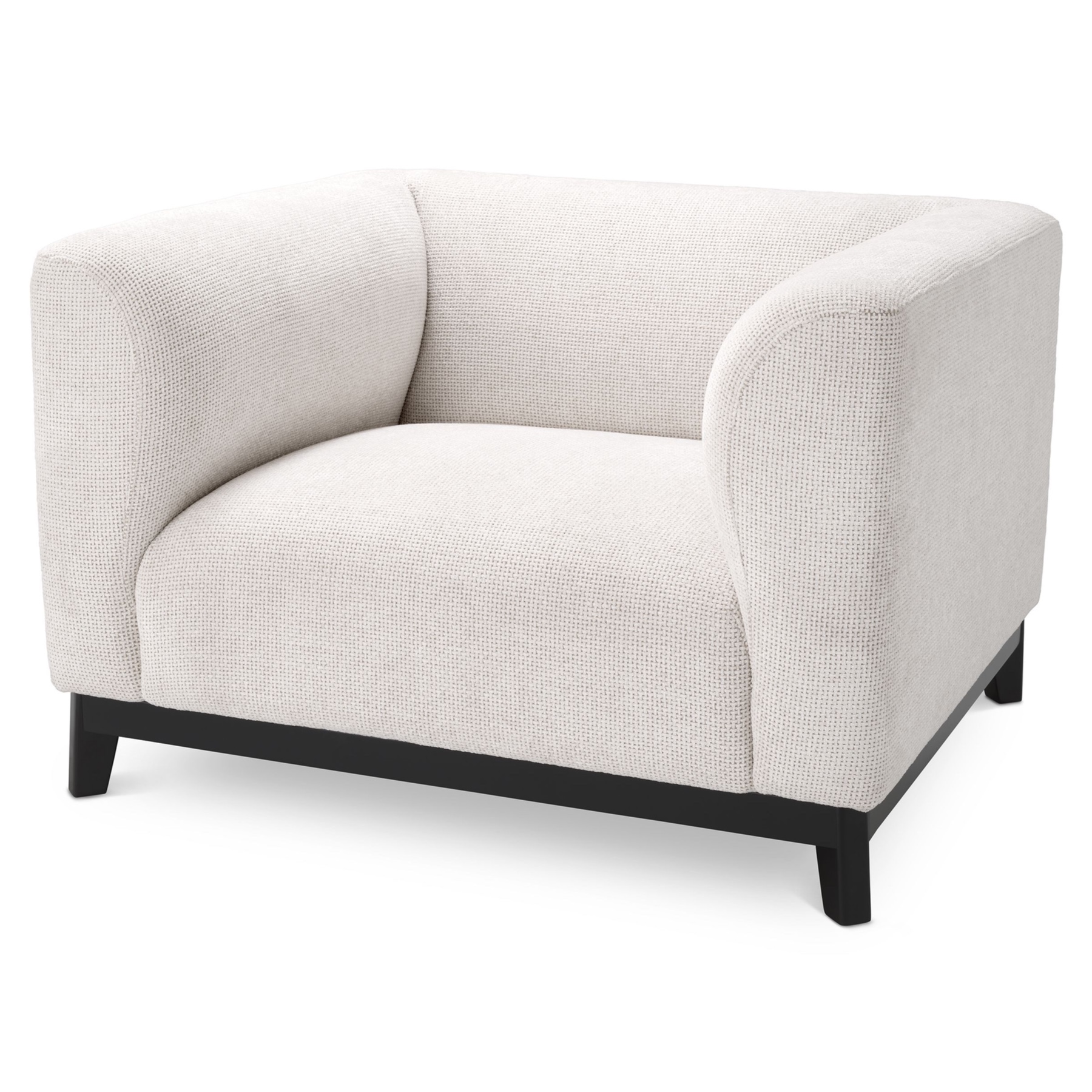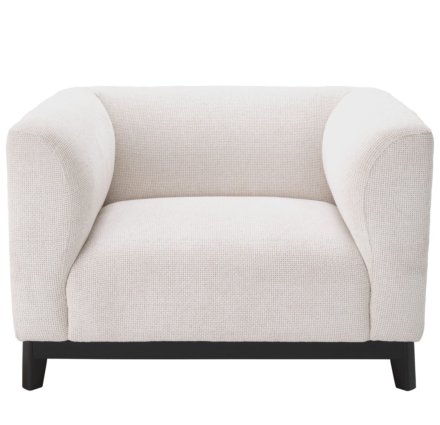 Epitomising relaxation, Chair Corso will be the perfect addition to any living space. The generous padding and soft Lyssa off-white upholstery of this tuxedo armchair provide the utmost comfort whilst the sleek black frame poses contemporary aesthetics.