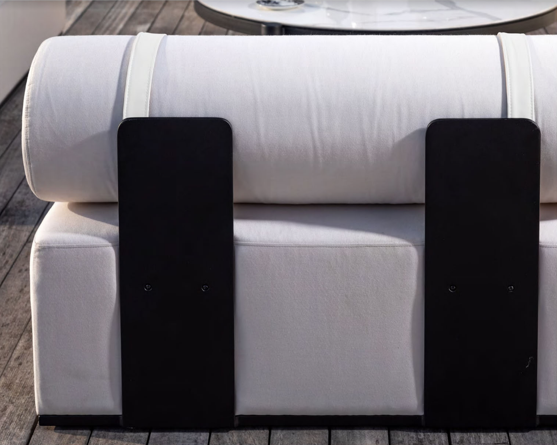 Our outdoor furniture collection is upholstered with fabric or leather that is suitable for outdoor usage throughout the whole year. Our furniture is not designed to be waterproof, but it let’s water through as quickly as possible. By using breathable materials, we ensure a constant air circulation inside our furniture. This makes it possible that after heavily rain the furniture can dry completely after 30 minutes.