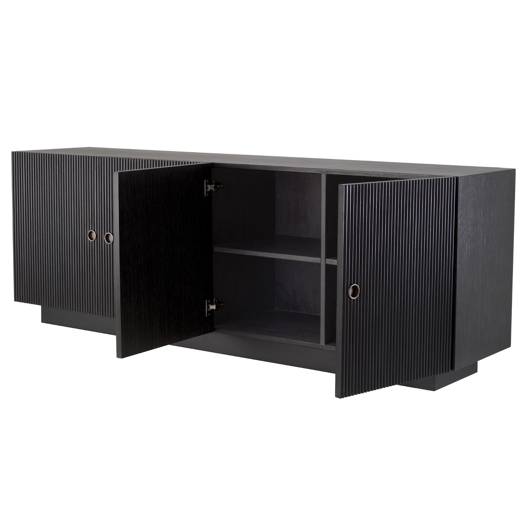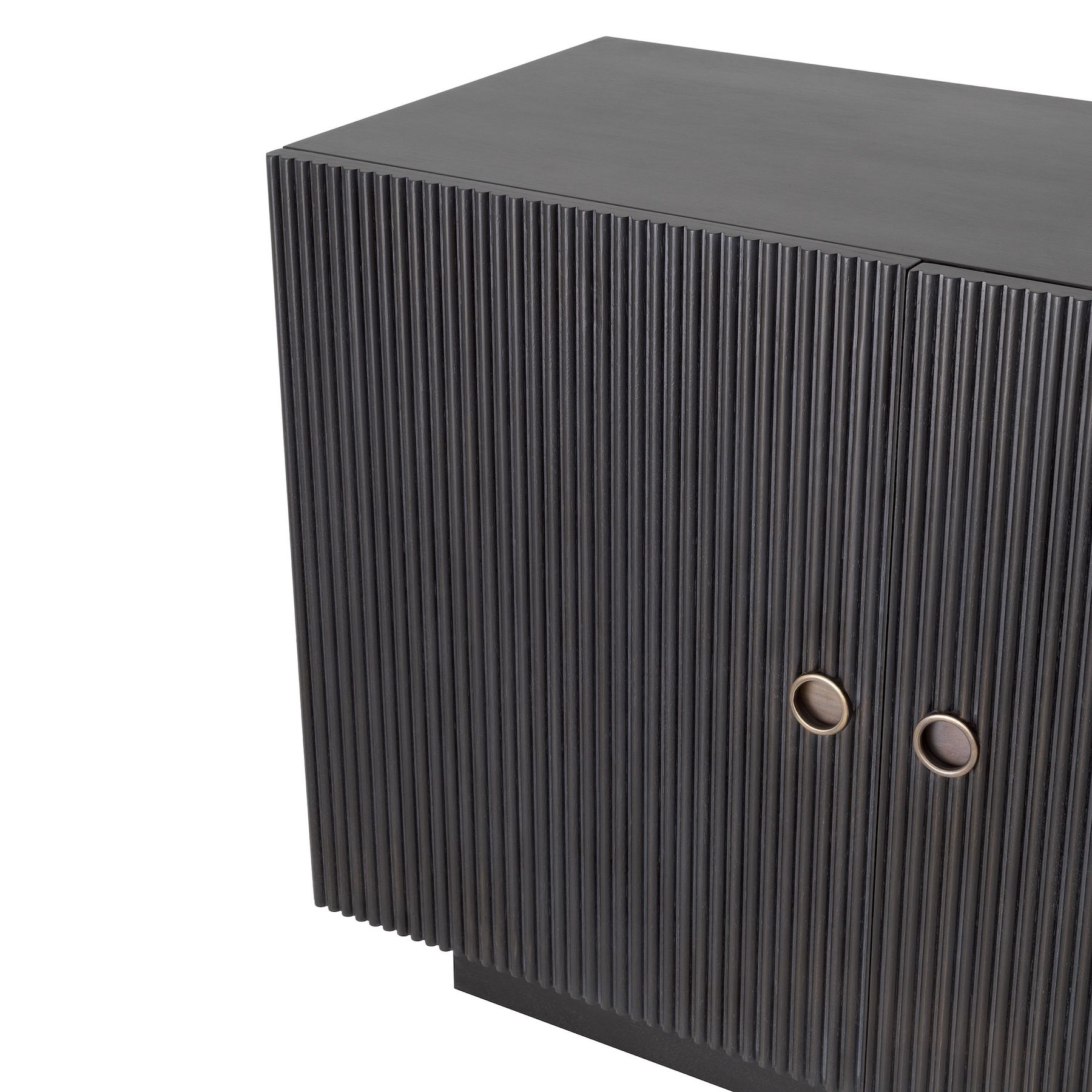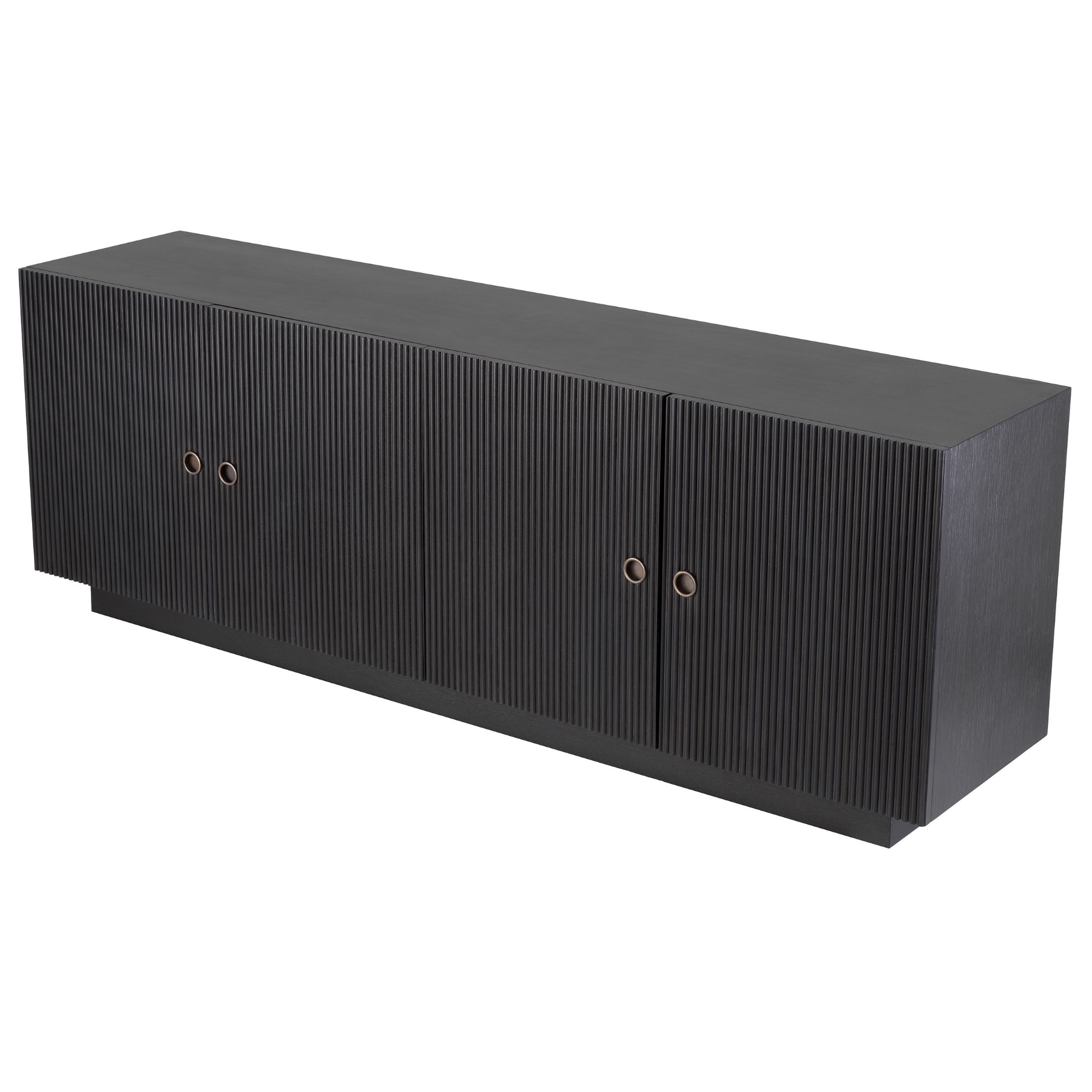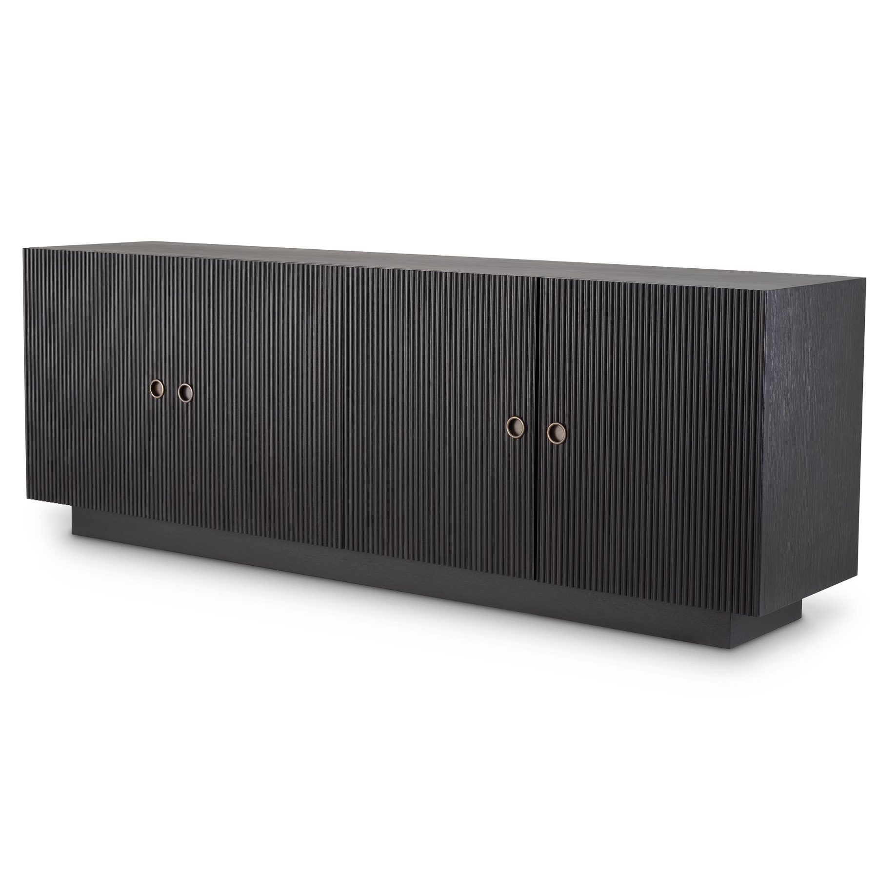 Dimitrios credenza allows you to store favourite keepsakes and other essentials while adding exclusive style to your home. Sleek and stylish, this sideboard with ribbed door panels adds a touch of Mid-Century Modern chic to your living space. Its vintage-inspired design has a solid body with charcoal grey oak veneer and bronze finish hardware.