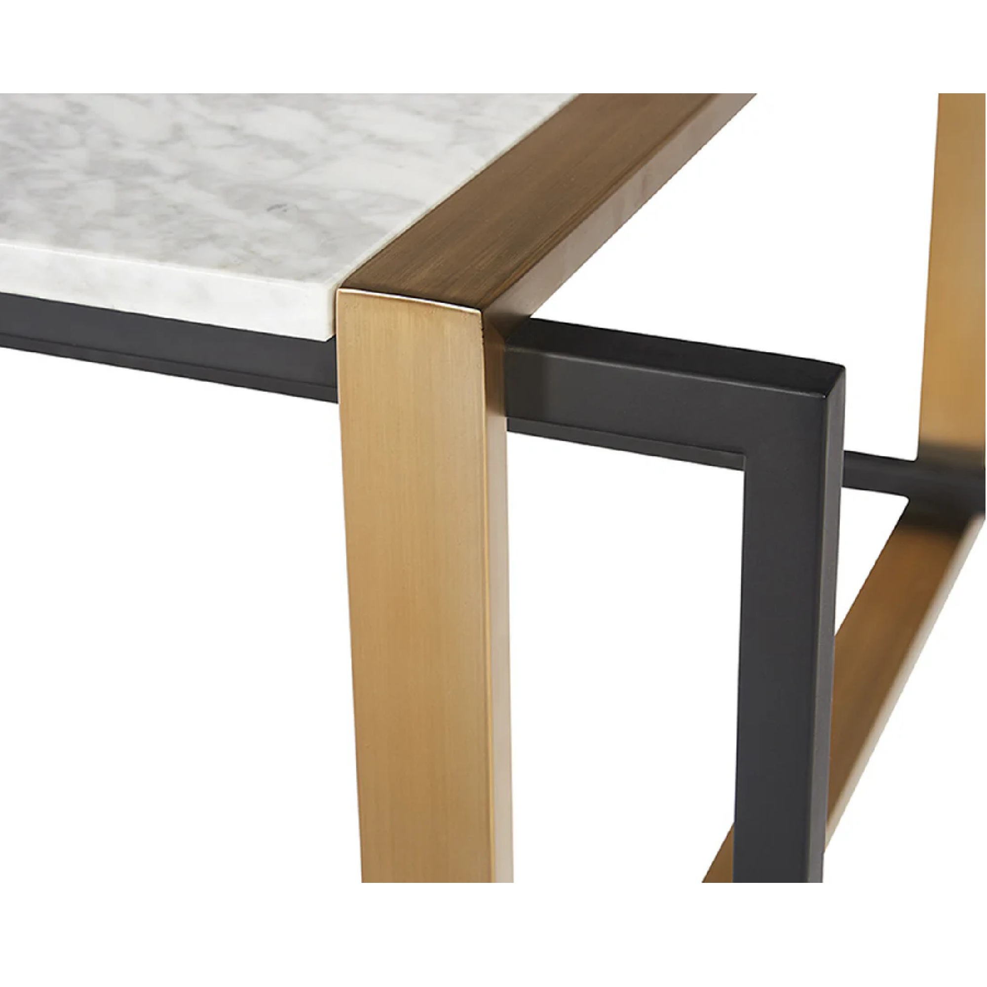 This stylish coffee table offers a streamlined design with mid-century elements. Features a beautiful white marble top and an antique brass and black powder coated frame. As marble is a natural material, unique veining, pitting, fissures, micro-cracks and colour variations are all characteristics that add to the uniqueness and beauty of each piece.