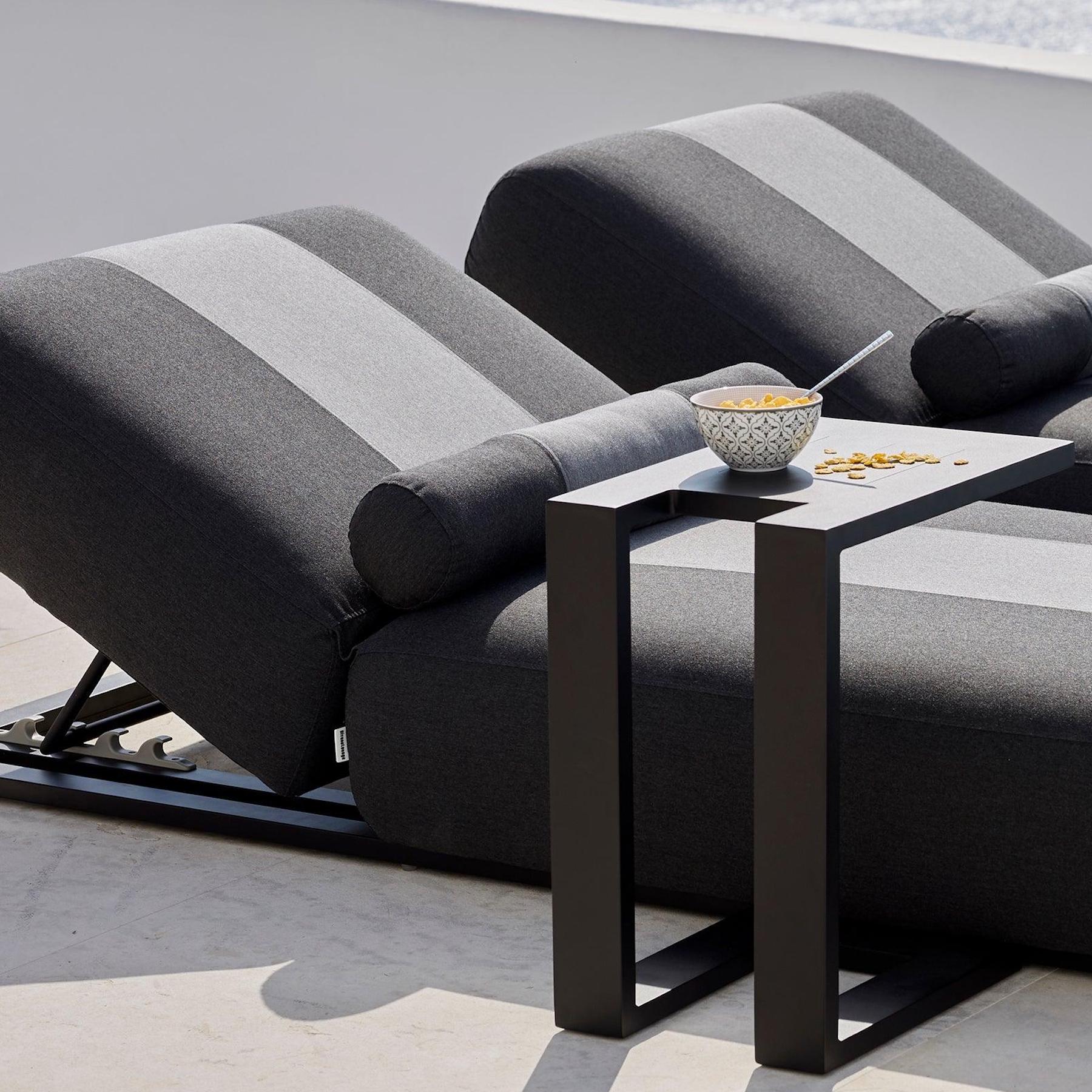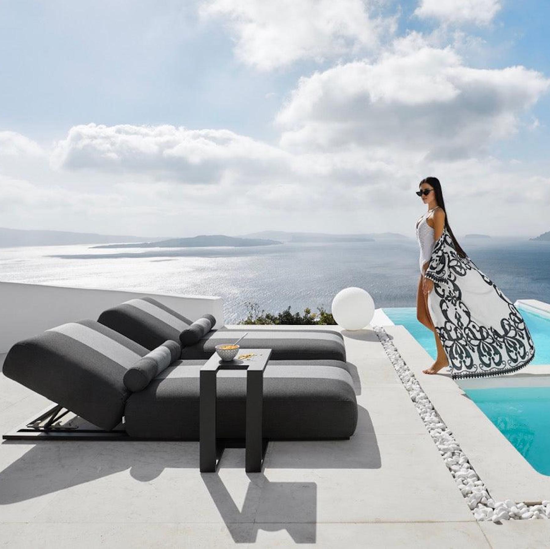 Our outdoor furniture collection is upholstered with fabric or leather that is suitable for outdoor usage throughout the whole year. Our furniture is not designed to be waterproof, but it let’s water through as quickly as possible. By using breathable materials, we ensure a constant air circulation inside our furniture. This makes it possible that after heavily rain the furniture can dry completely after 30 minutes.