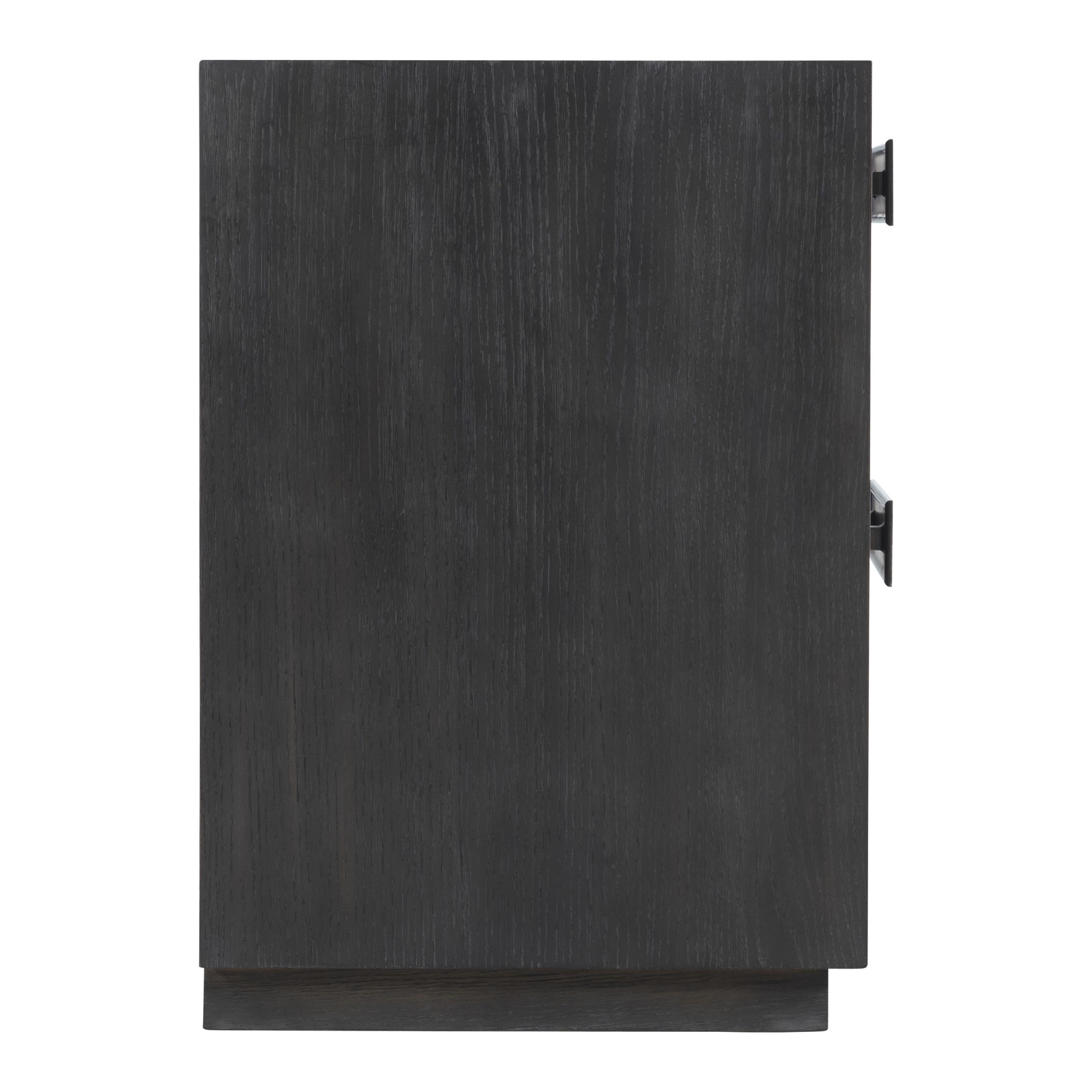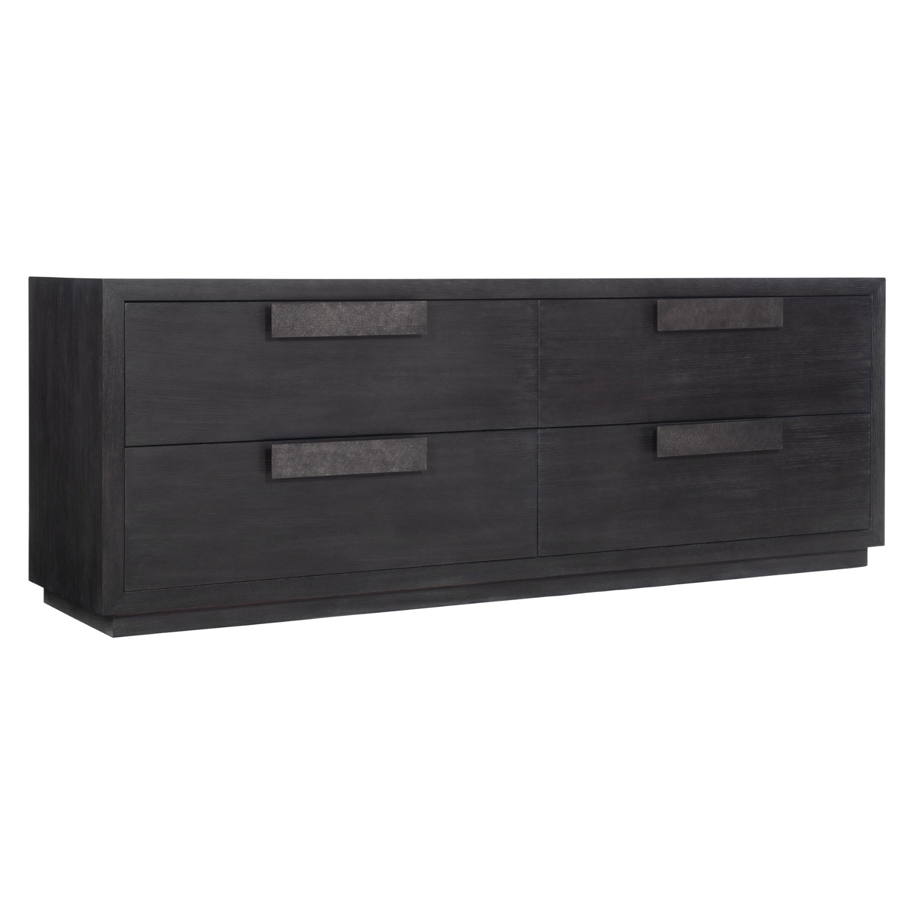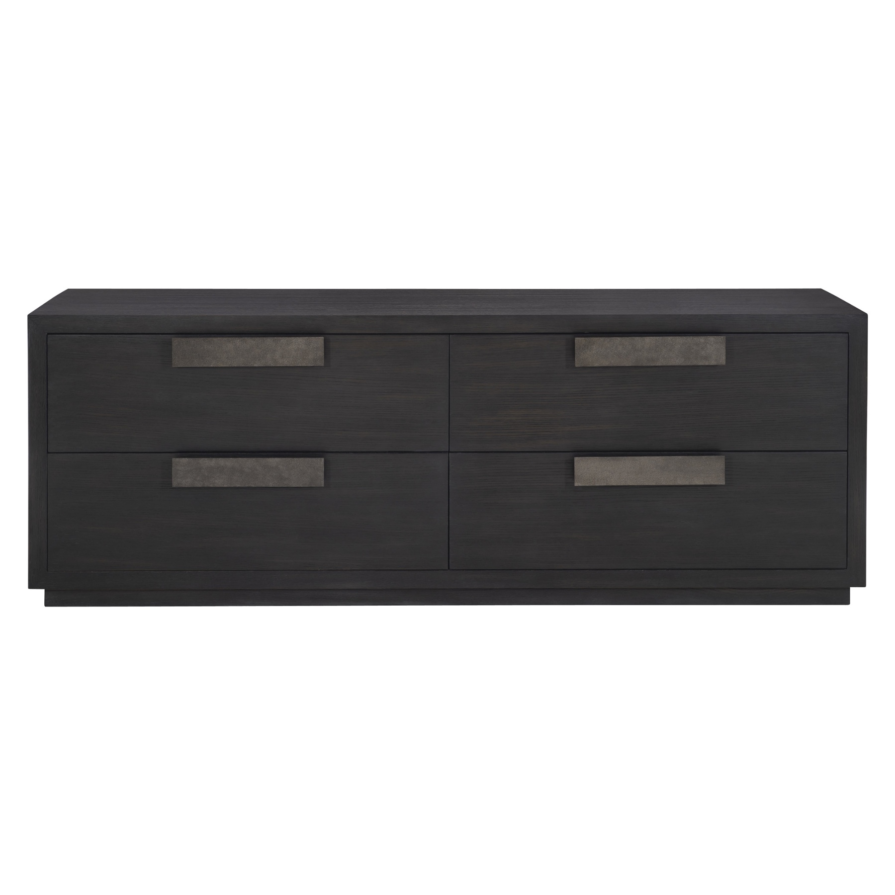 Ebonized Pine finish with four drawers with textured cast aluminum pulls in black nickel finish