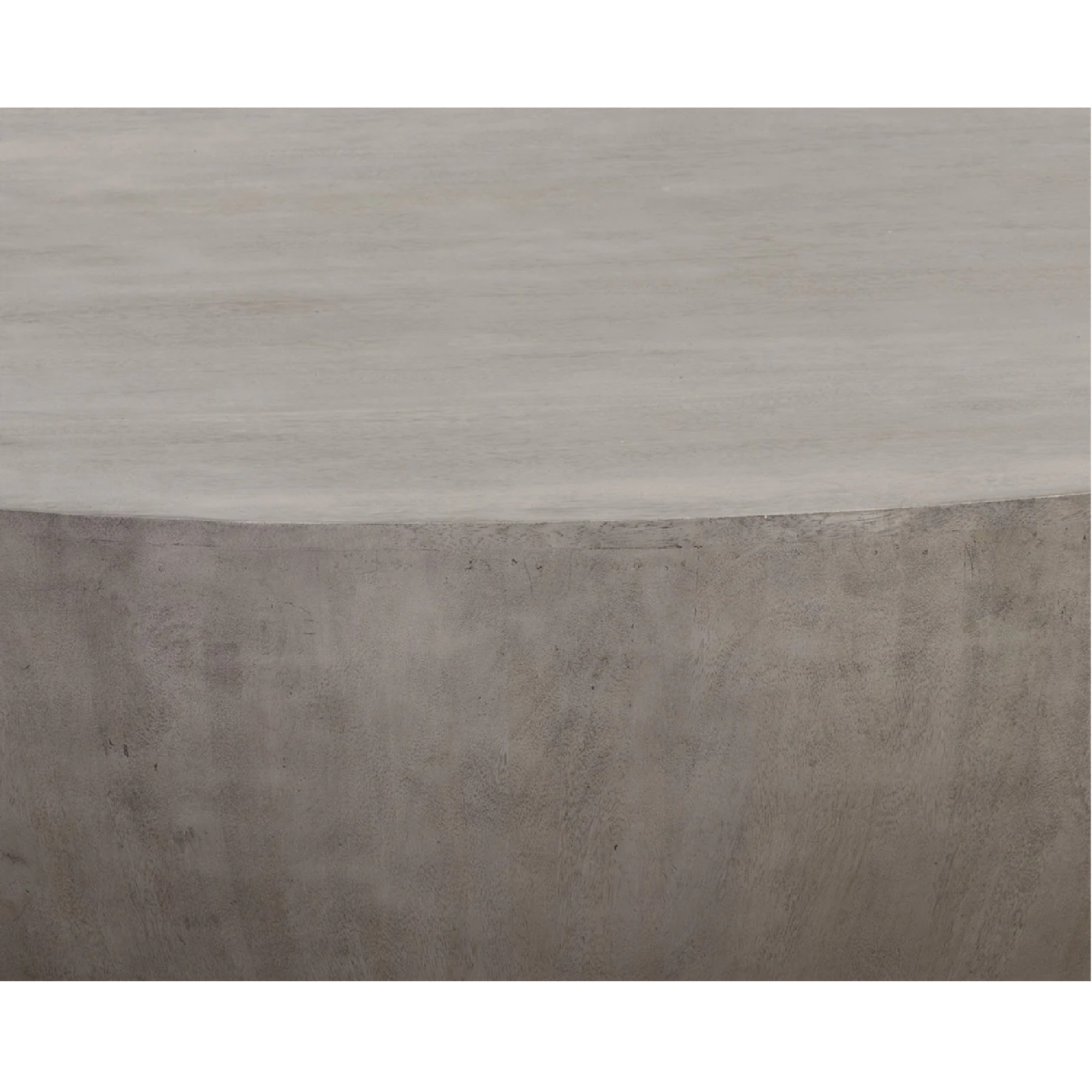 Inspired by global travels, this, round, handcrafted large drum-style cocktail table will certainly add wonder to any space. Made from grey solid mango wood. Also available in a natural finish. Small version also available. Made in India. With refined craftsmanship, this design was brought to life by skilled local artisans. By nature, these materials develop unique imperfections such as fissures, markings and colour variations for a truly one-of-a-kind piece. As wood is an organic, porous material, these pieces will contain natural variation of texture and may also exhibit fine indentations and cracks. Wood pieces will also display a disparity of colour and grain, and visible knots and burls that add to the character of each piece.