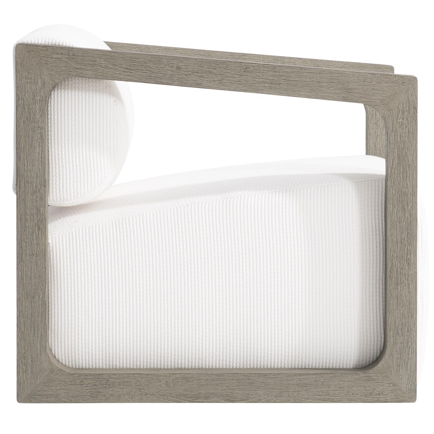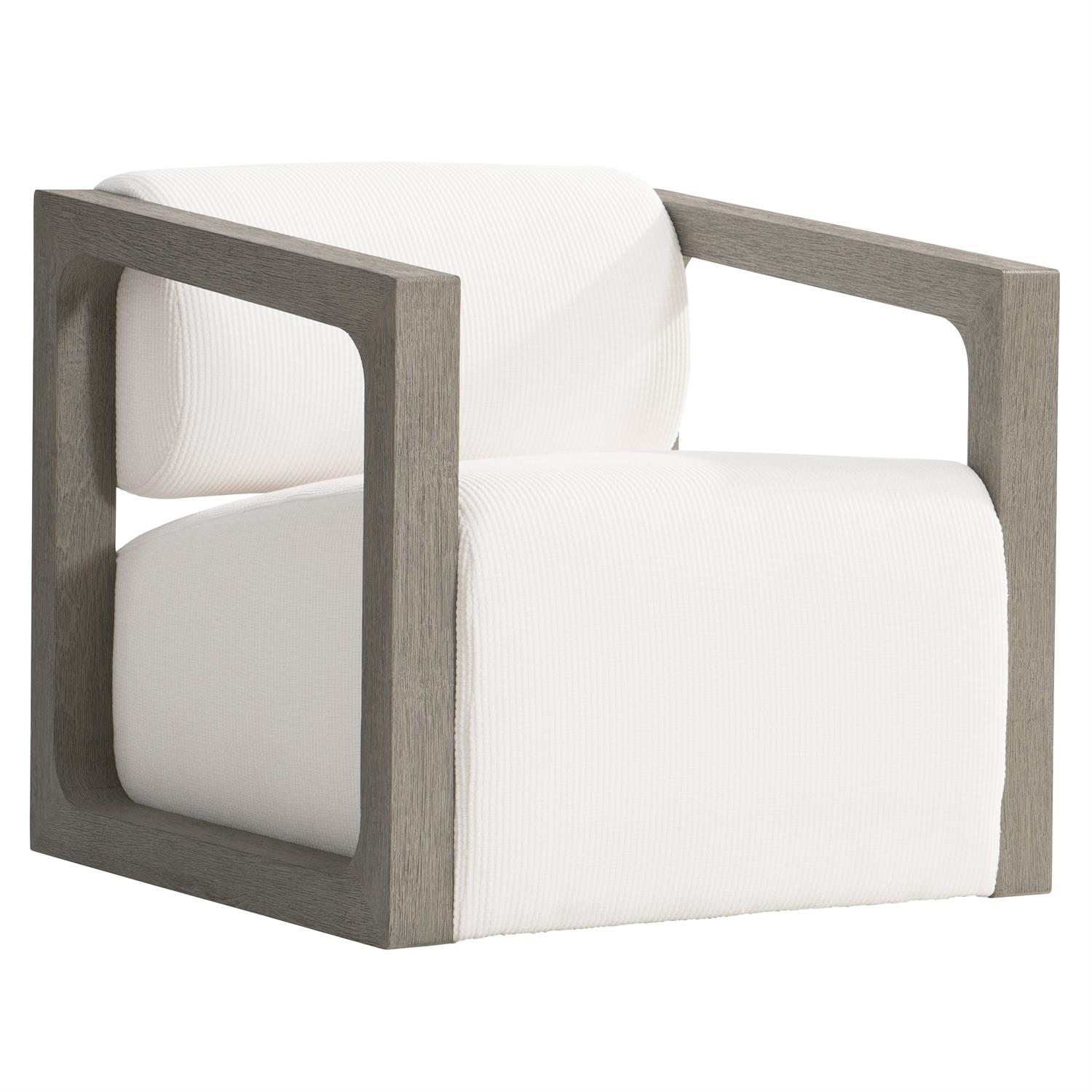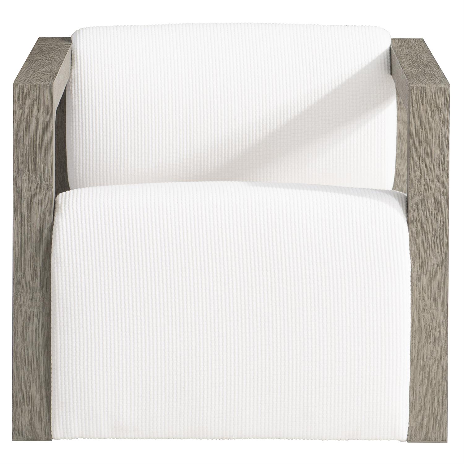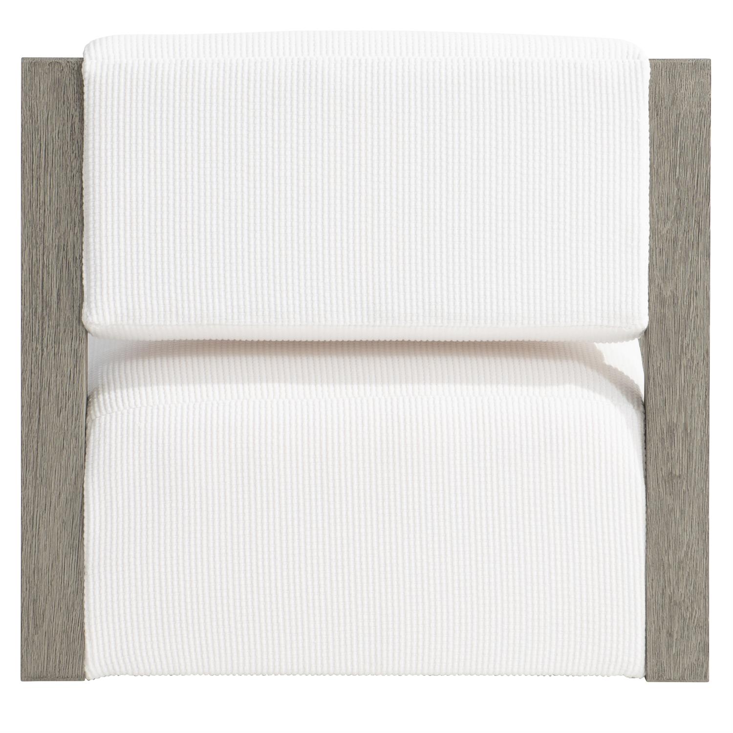 Two exposed teak asymmetrical squares encase the seat and floating back of the Leilani outdoor swivel chair. Offered in the Weathered Teak finish, the arms provide a gentle slope to the front with softened corners inside the open shape. A rounded back and deeply sloped seat ensure that comfort is key in this 360-degree swivel chair.