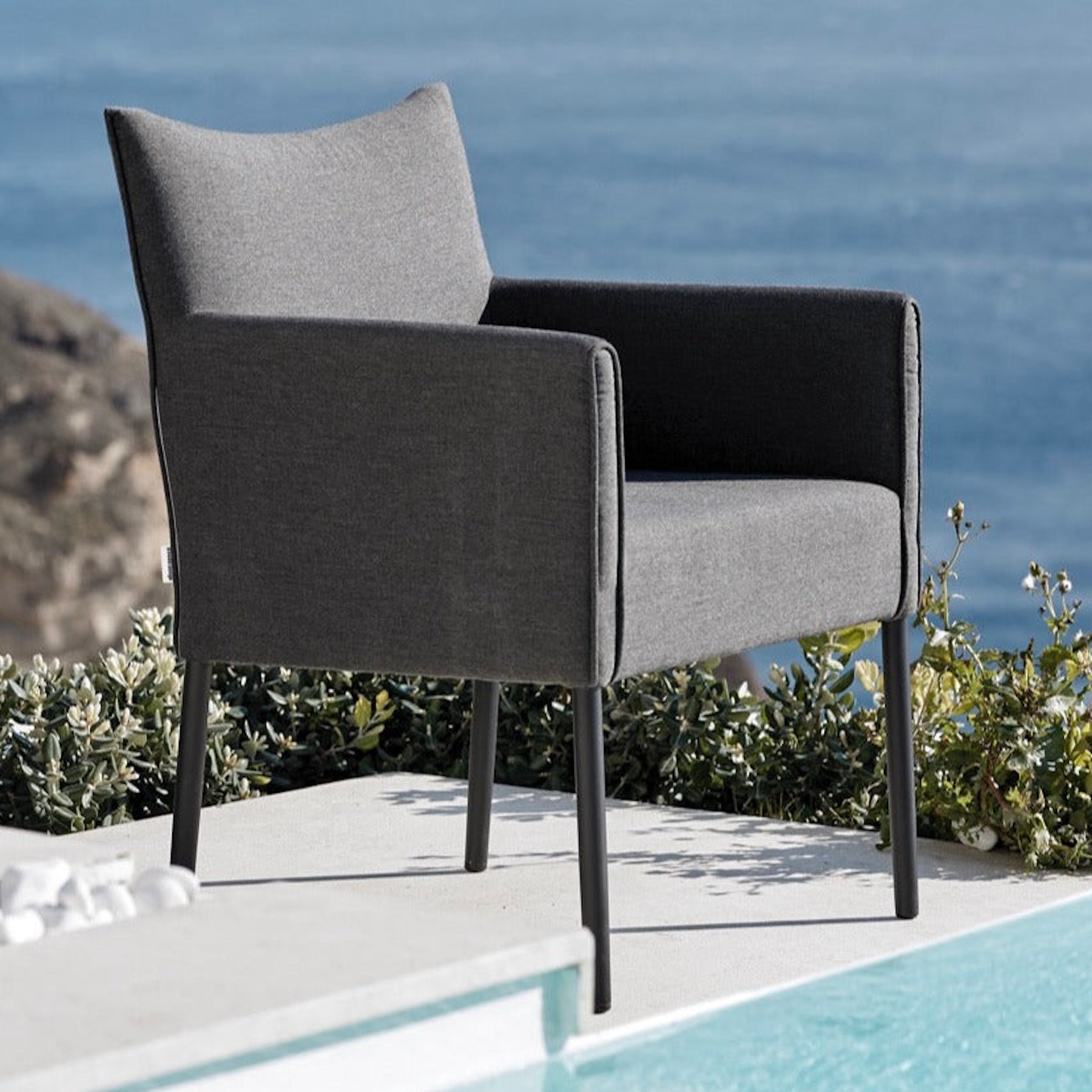 Our outdoor furniture collection is upholstered with fabric or leather that is suitable for outdoor usage throughout the whole year. Our furniture is not designed to be waterproof, but it let’s water through as quickly as possible. By using breathable materials, we ensure a constant air circulation inside our furniture. This makes it possible that after heavily rain the furniture can dry completely after 30 minutes.