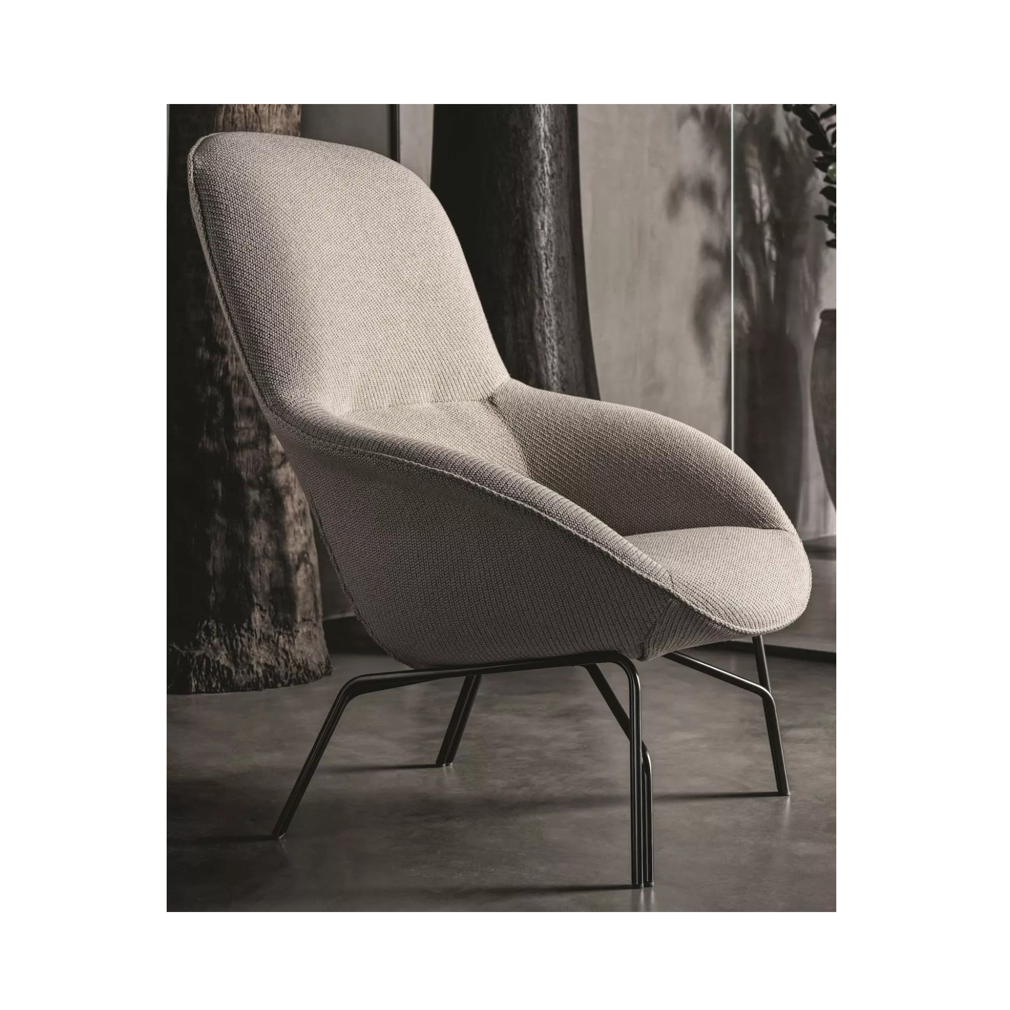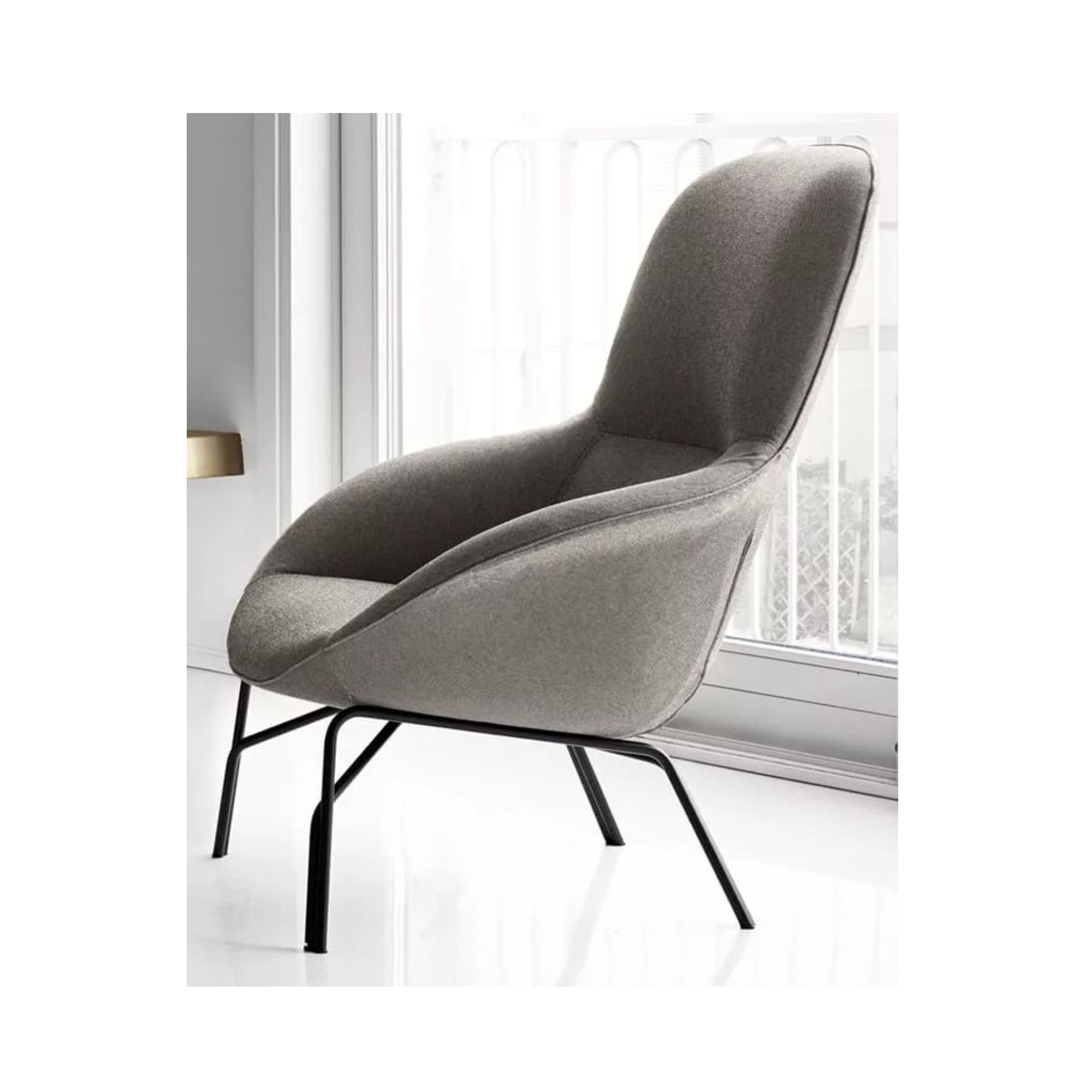 Frame available in various metal finishes and upholstery available in various fabrics or leathers. Optional stationary metal frame available.