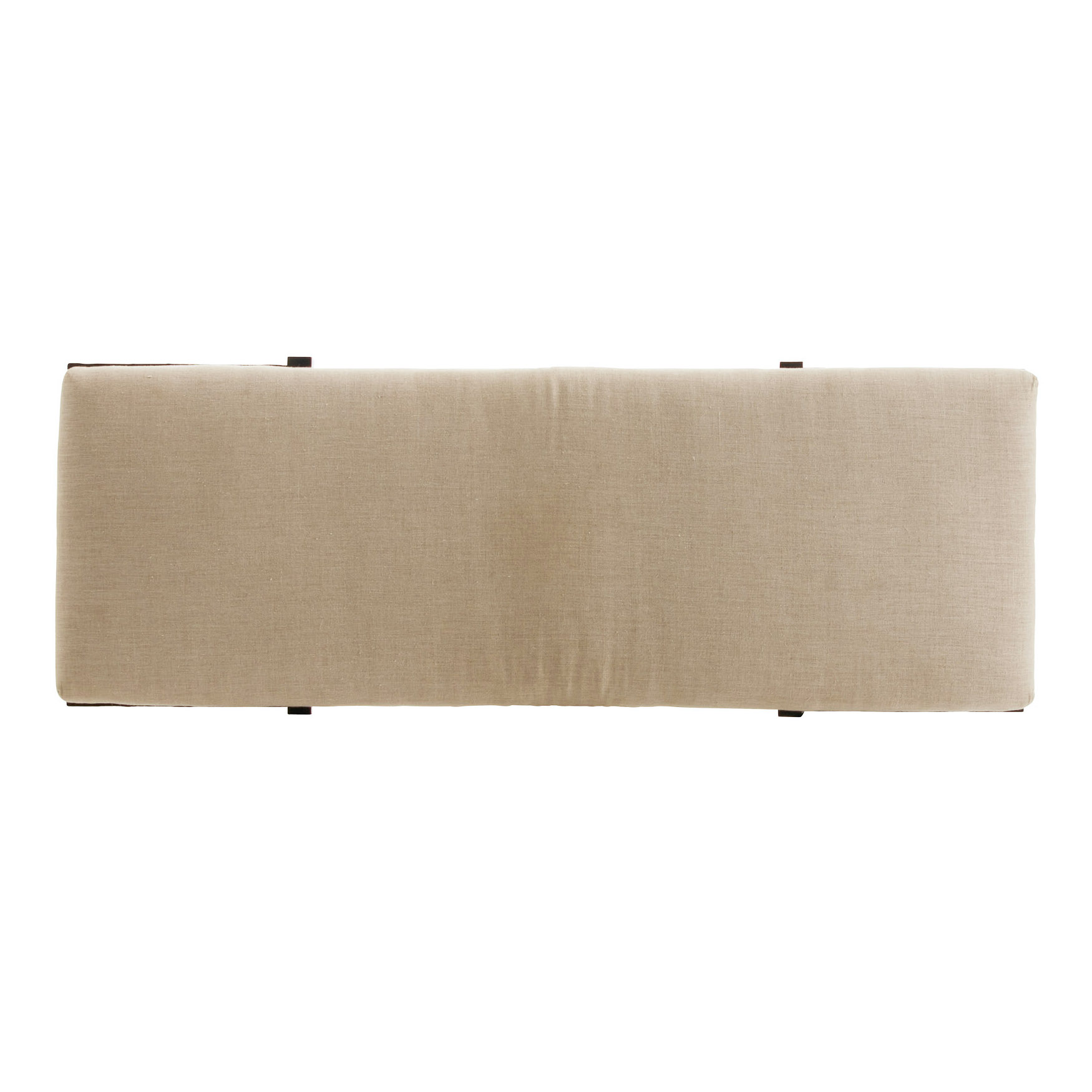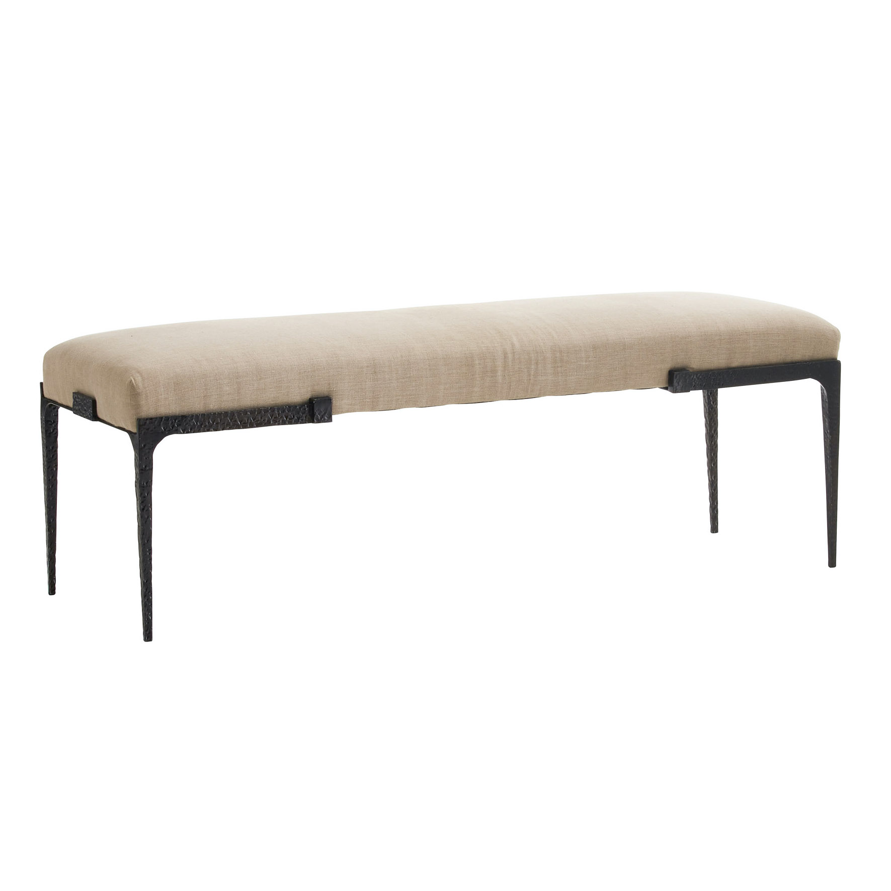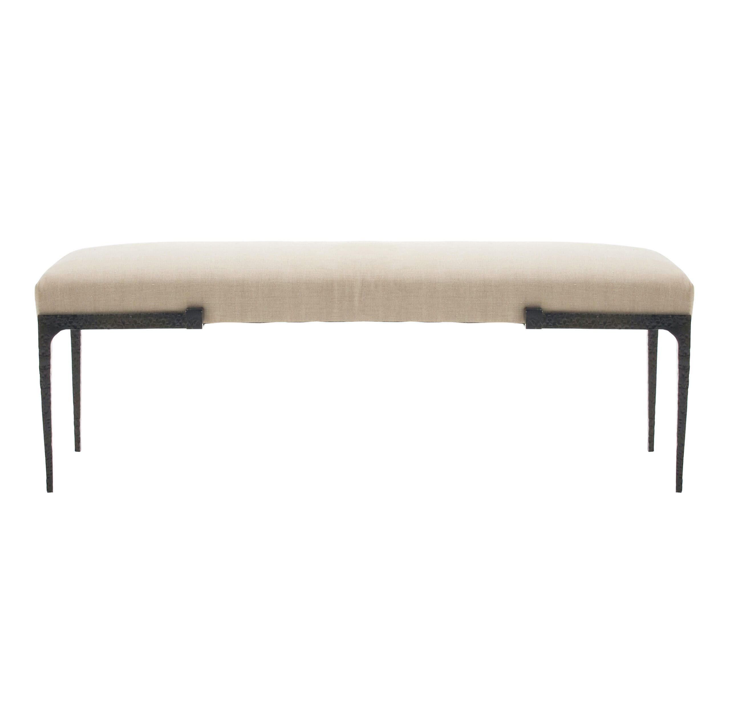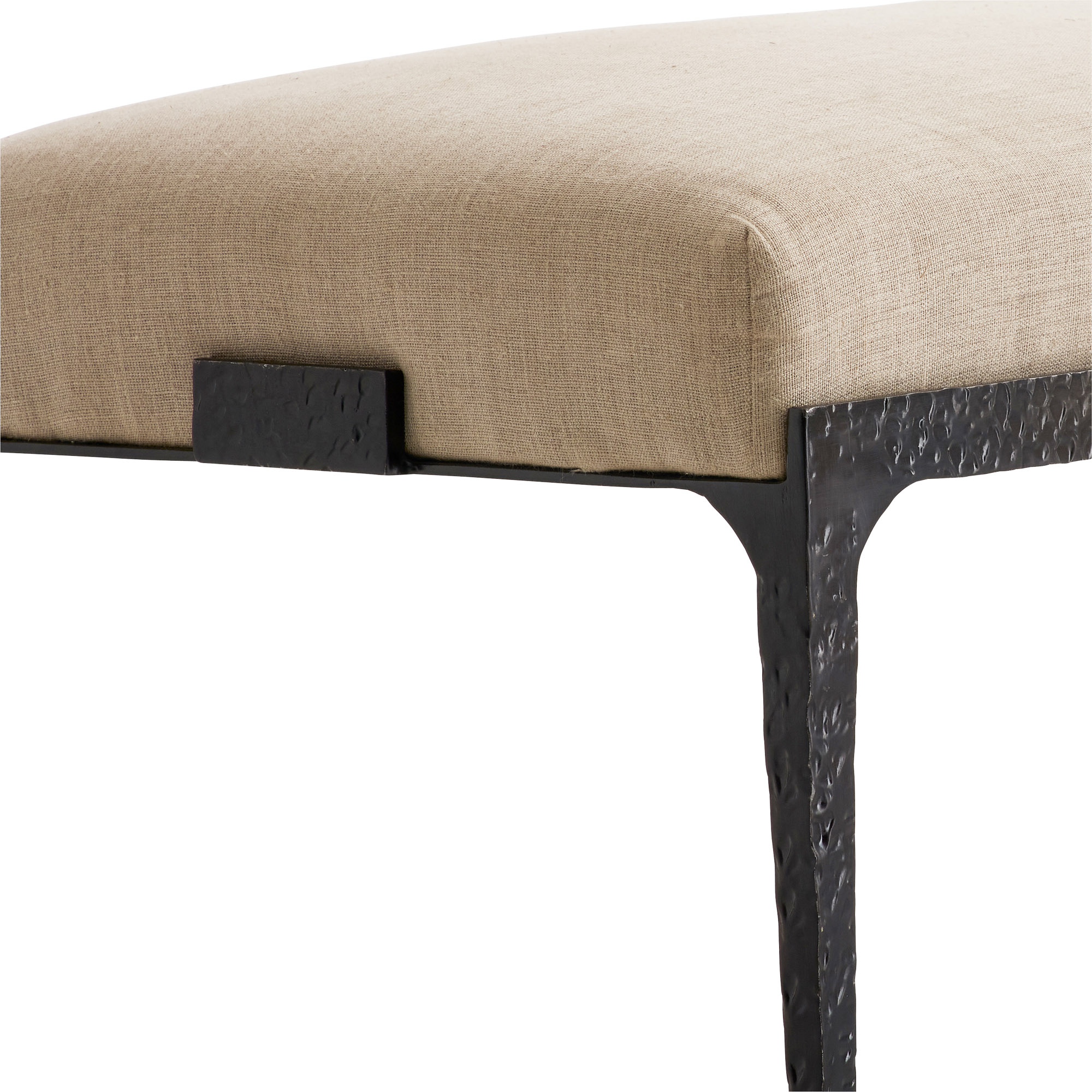 Versatile style and function give this bench true design appeal — blend- ing both hammered blackened iron and natural linen create a modern industrial aesthetic. The cushion nestles in the frame, adding a sense of intrigue and sophistication. Fabric and finish will vary.