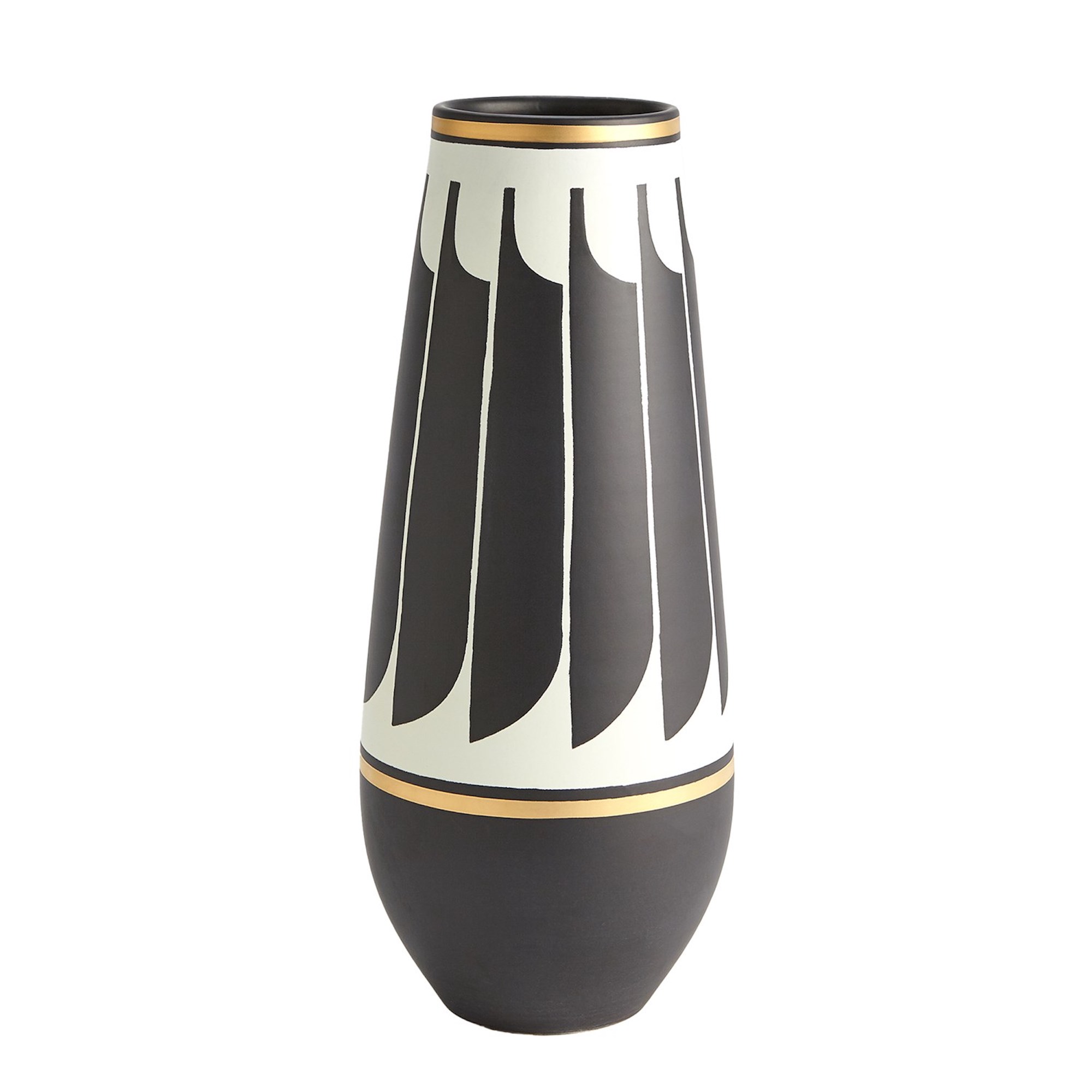 This vase made of Italian ceramic with hand painted feather details inspired by ancient Egyptian art