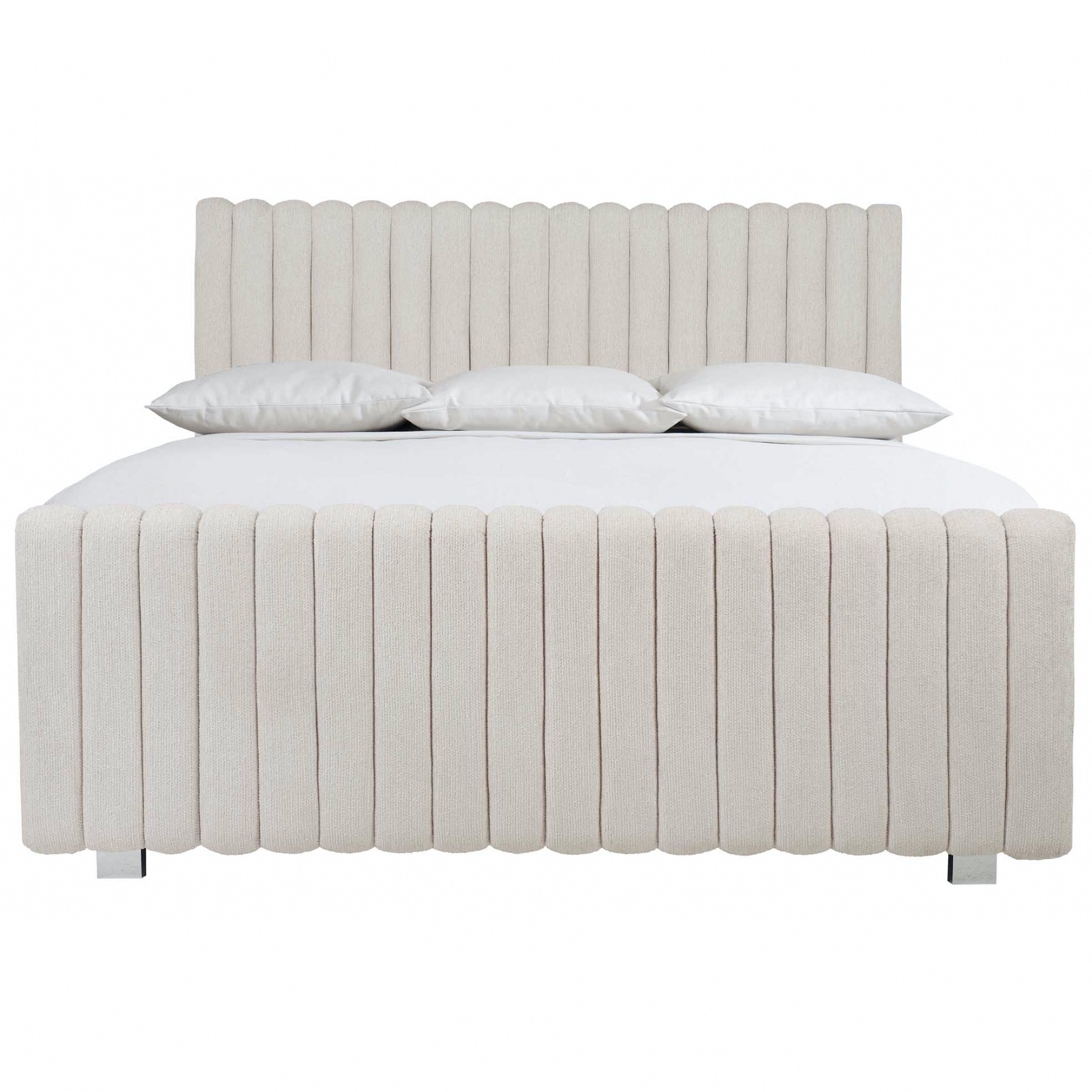 Upholstered vertical channeled footboard with wrapping to interior of footboard