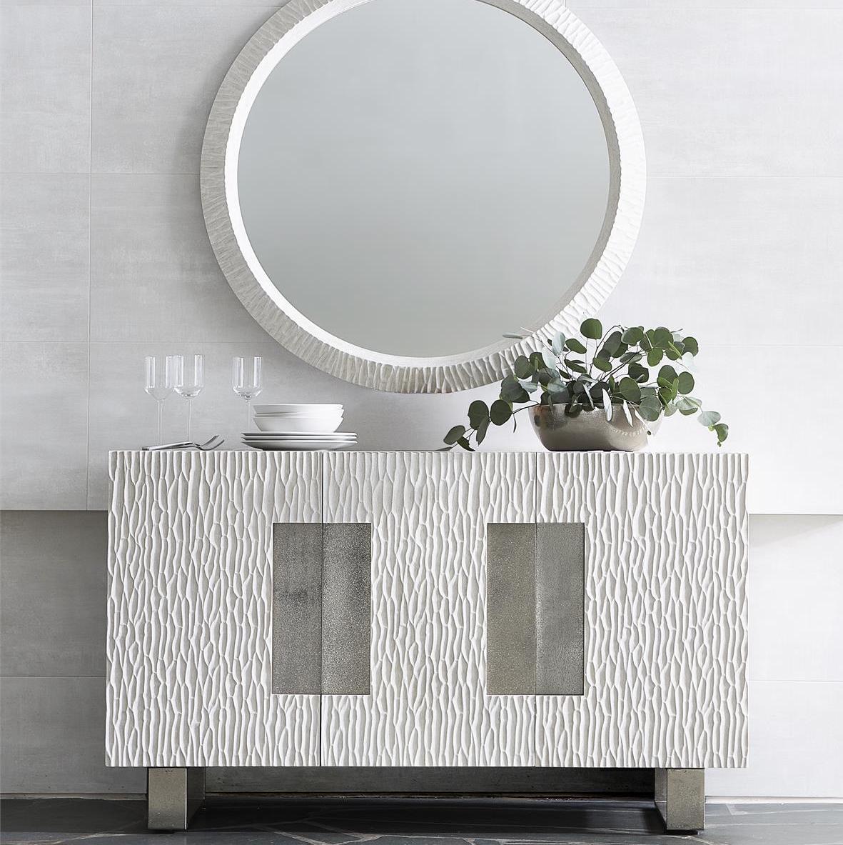 The chiseled cast resin frame on the Solaria mirror offers a modern and organic look. Surrounding non-beveled mirrored glass, the circular frame is a chic and artistic design.