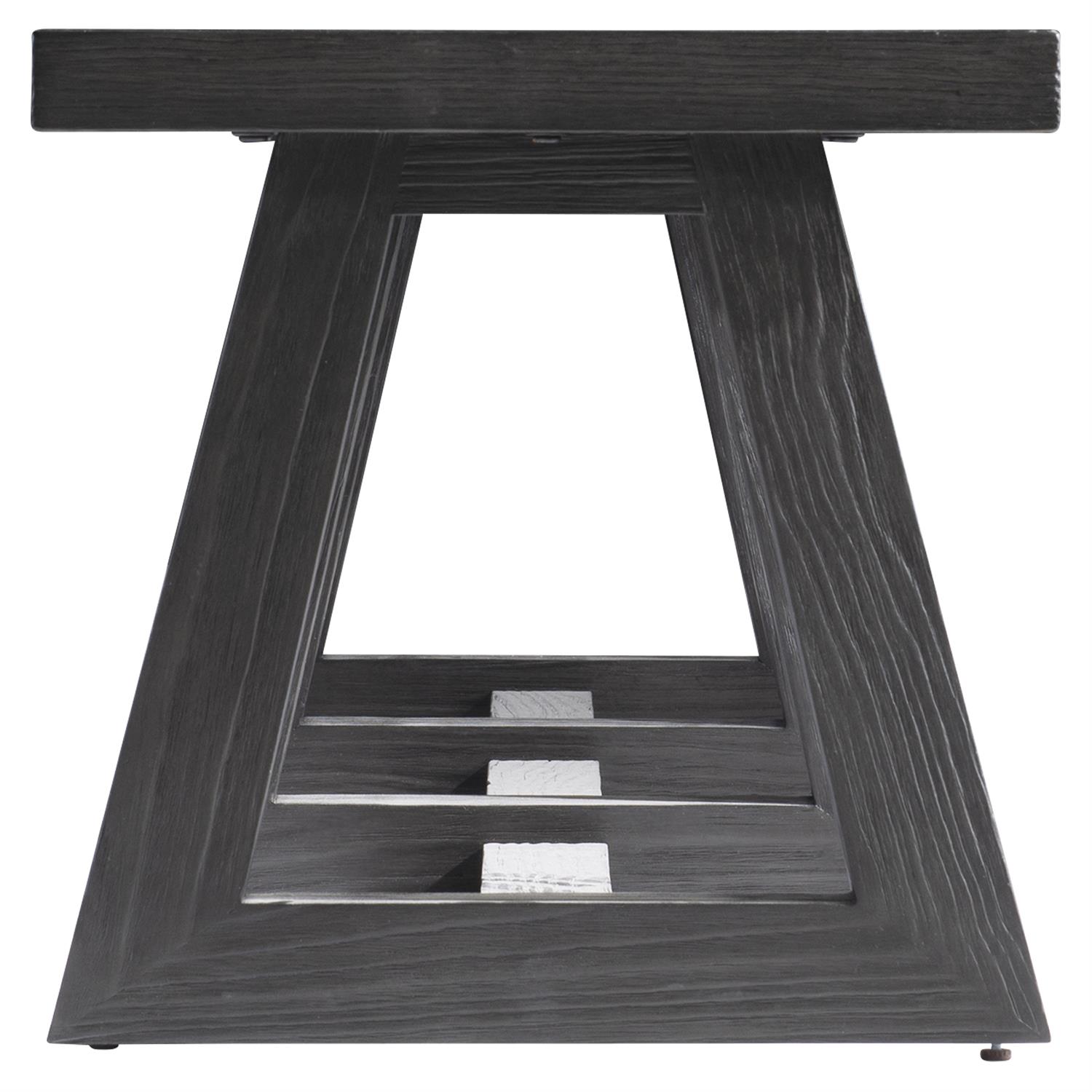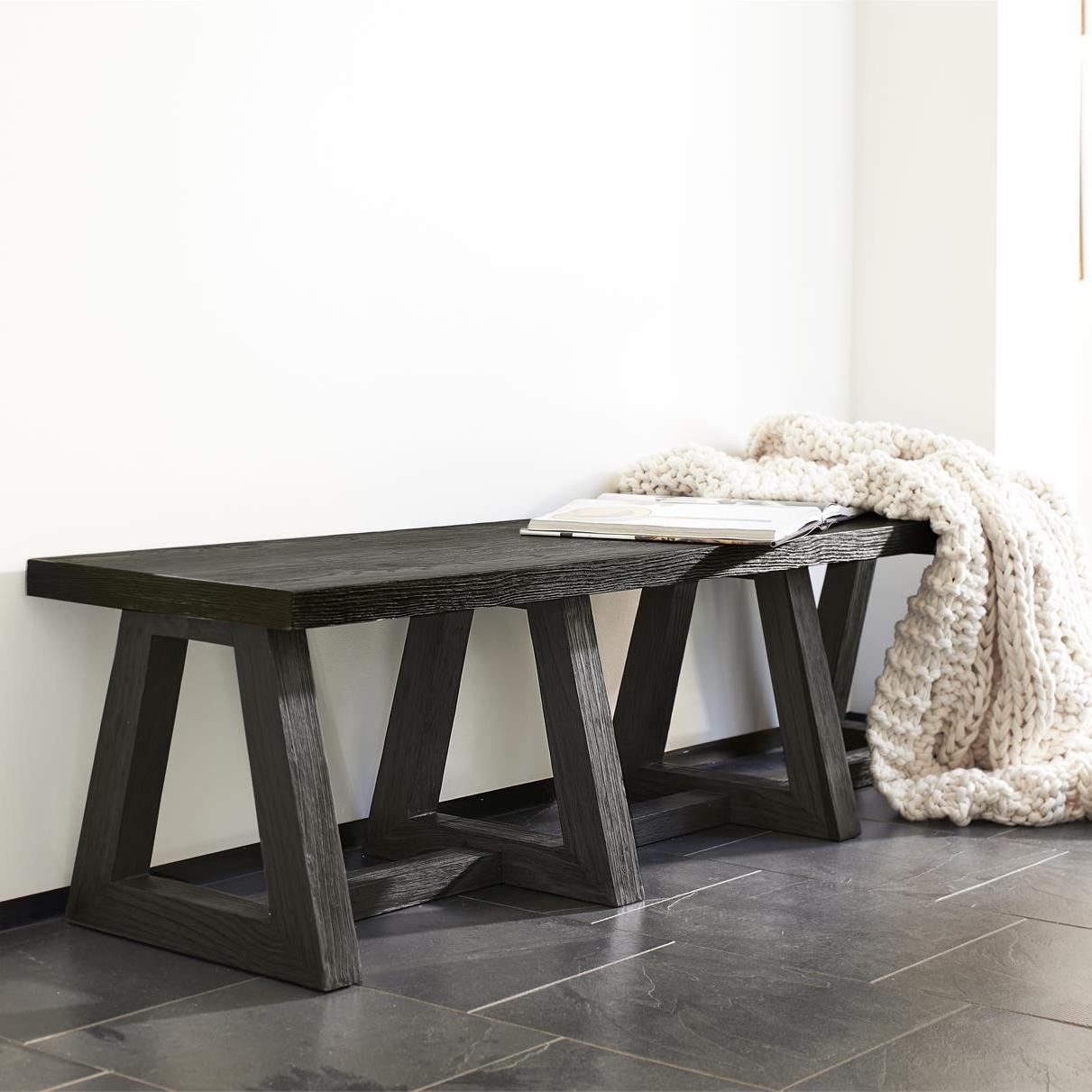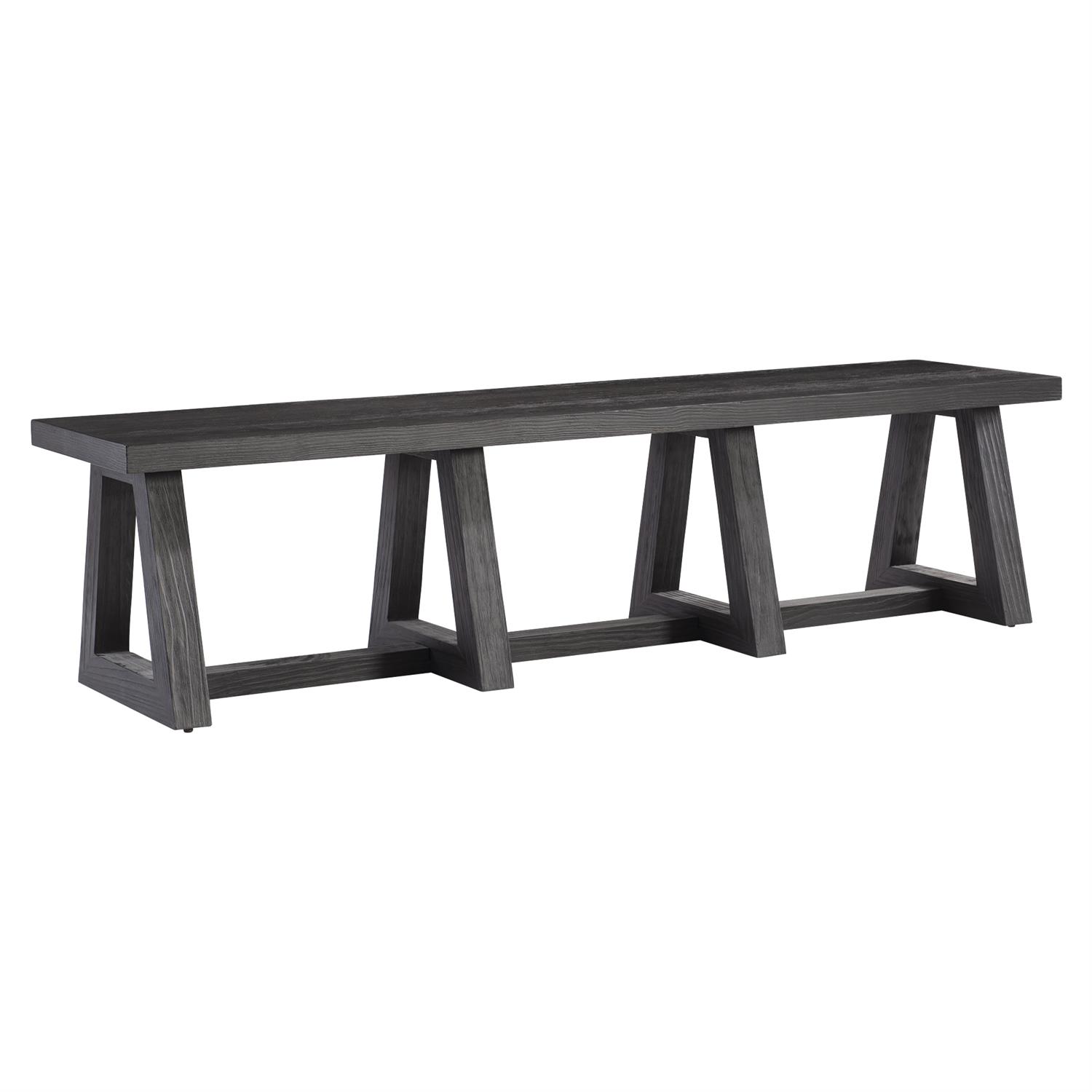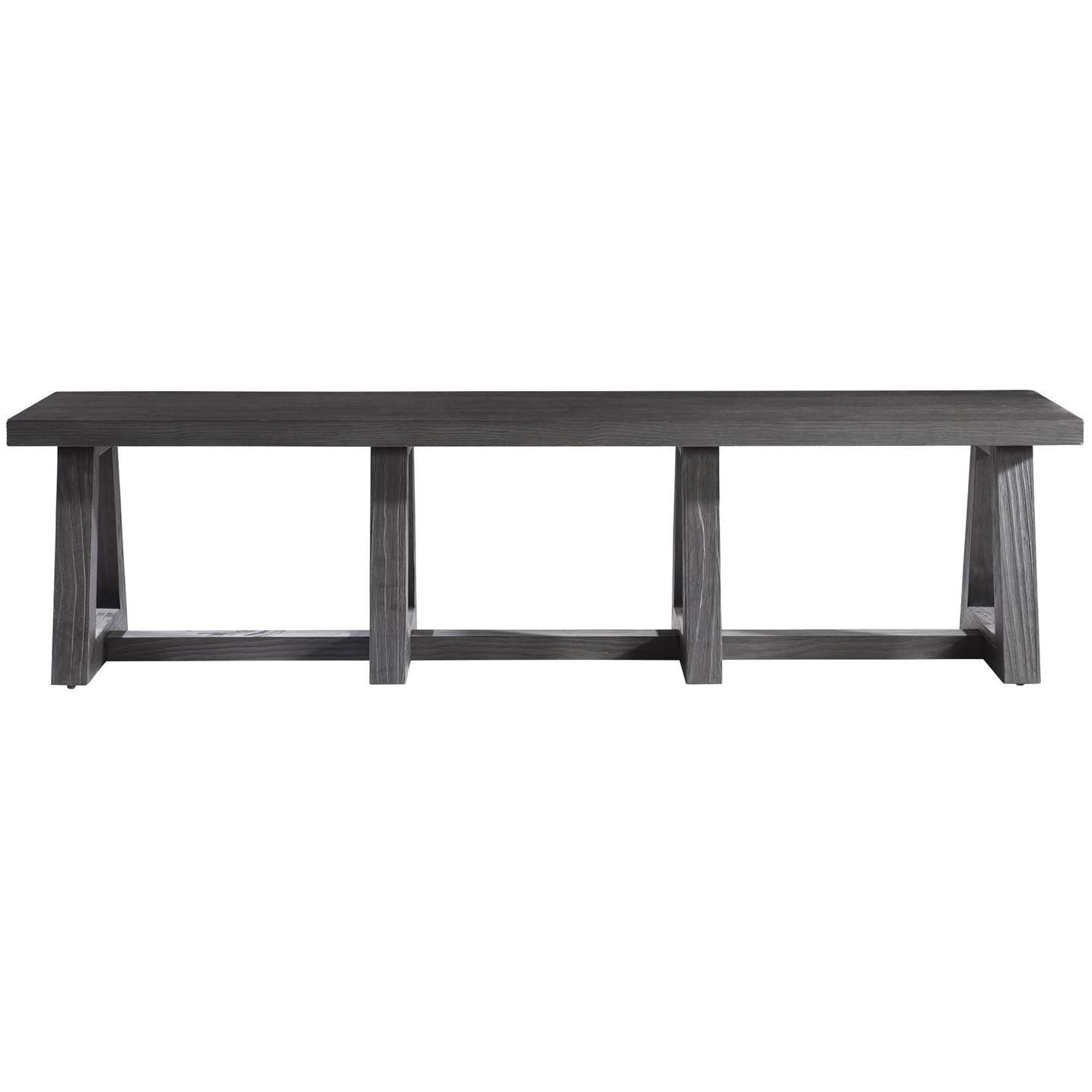 A bold length highlights the Trianon bench, along with its architectural inspiration. Triangular legs are joined by a center stretcher as they support the wood top. The modern organic bench also showcases the L’Ombre finish.