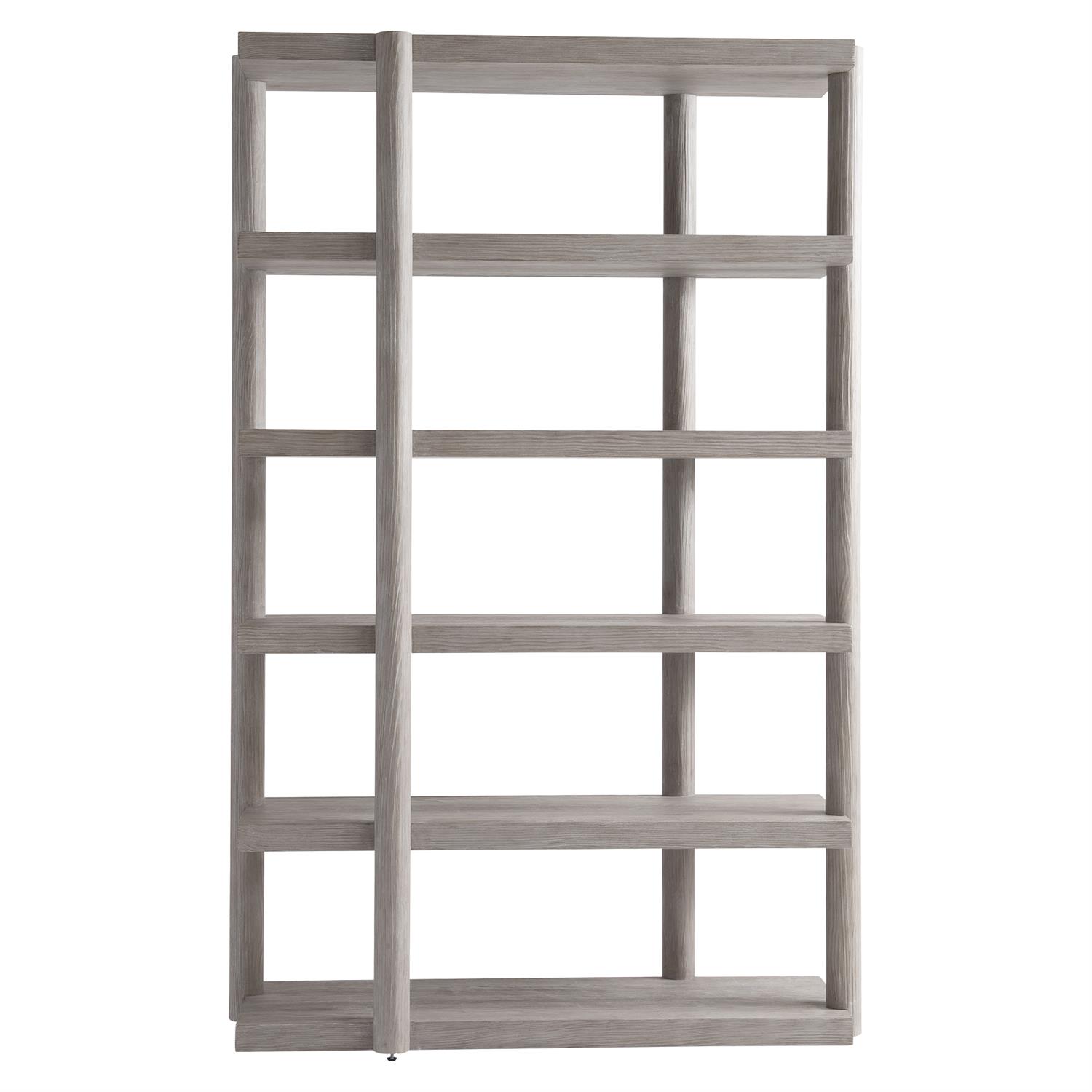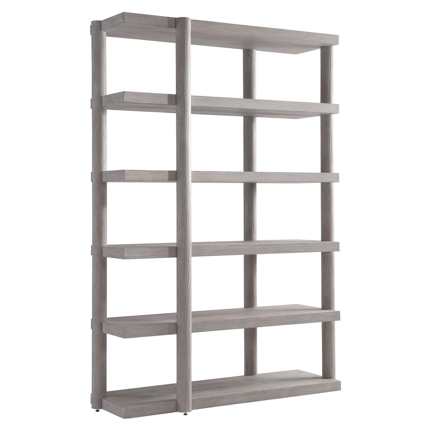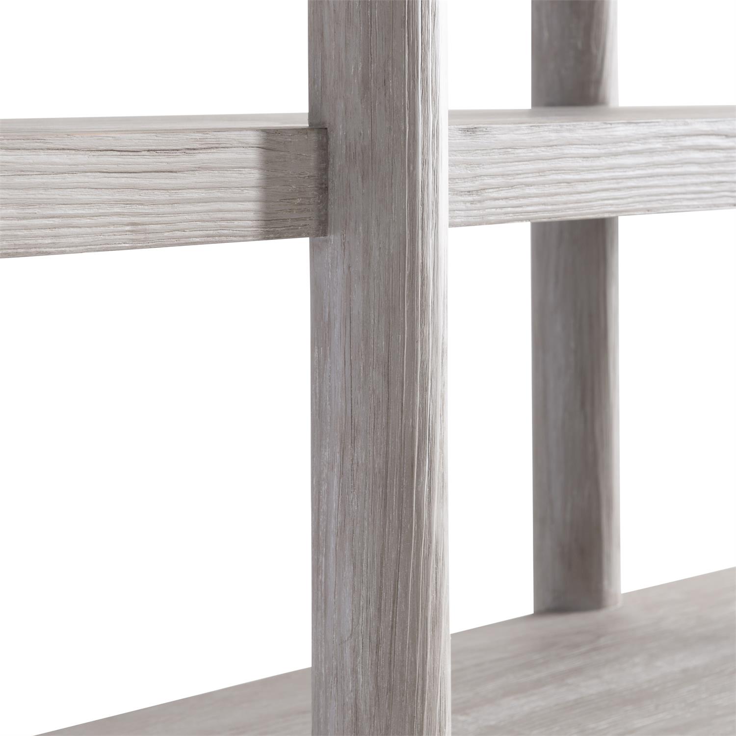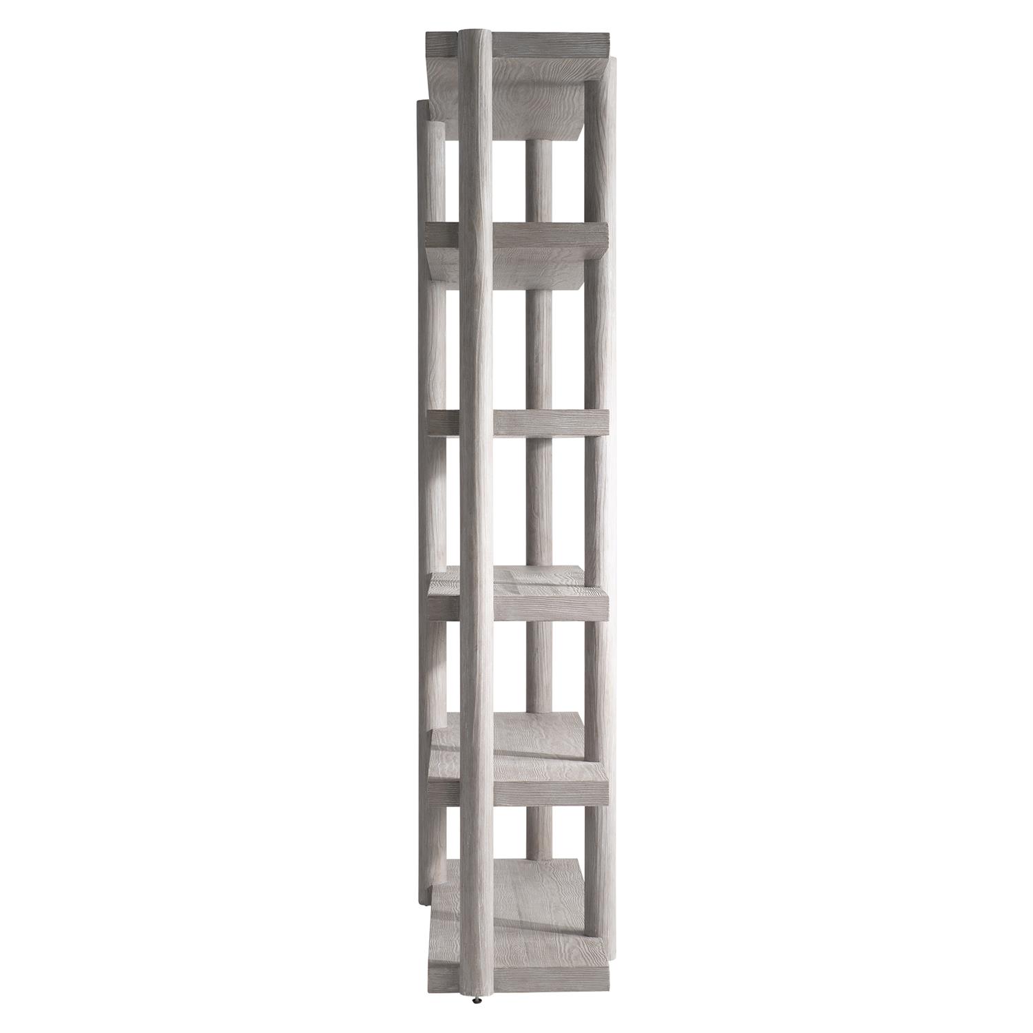 An open design creates a sense of lightness in the Trianon etagere. The structure is supported by offset poles for a distinctive look. Five fixed shelves provide the perfect place for storage and display.