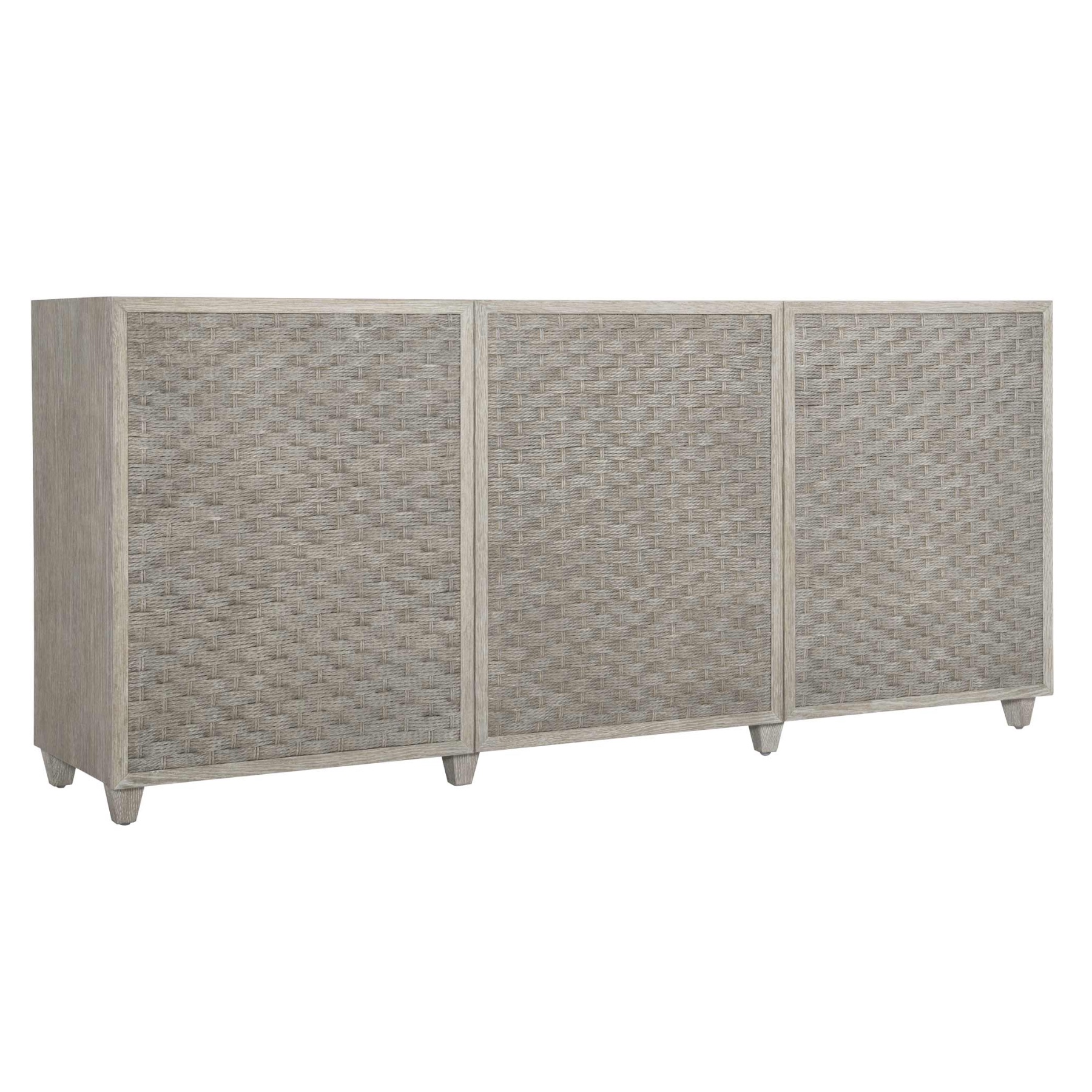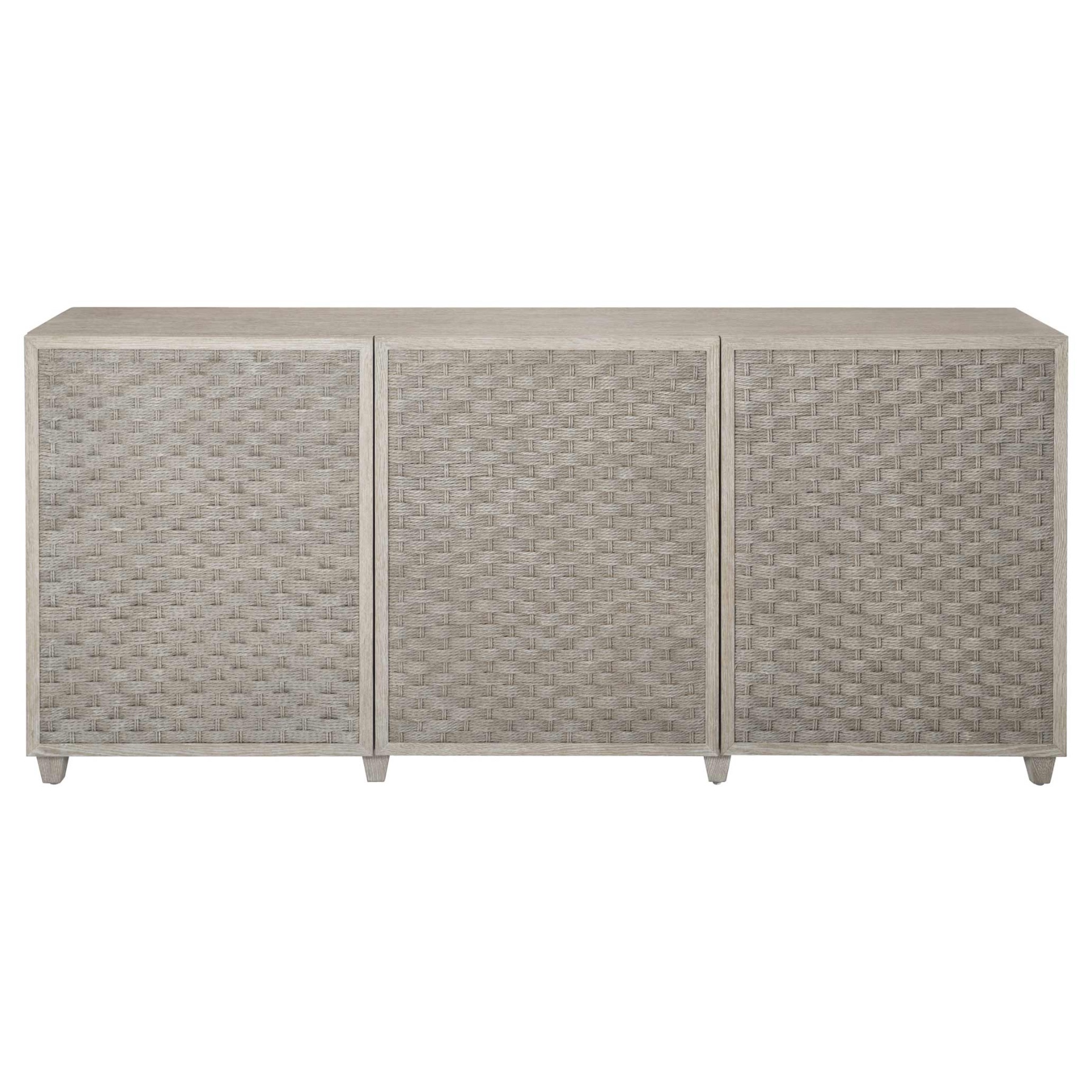 Three wood-framed doors with inset panel of woven twisted paper rope