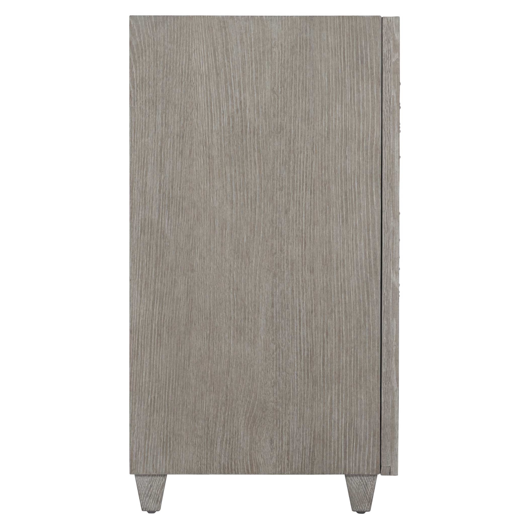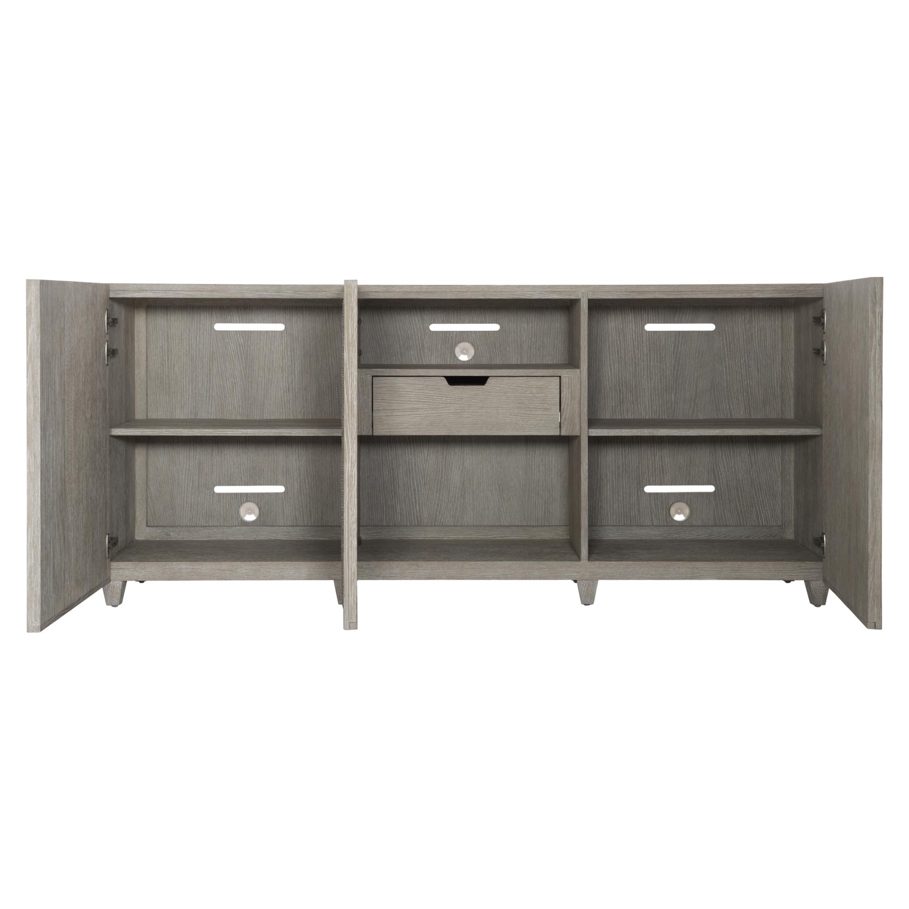 Behind center door are two compartments, one soft-close drawer with silverware insert and hand-pull